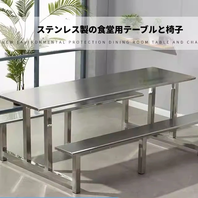学校や工場の食堂に最適!耐久性抜群のステンレス製テーブル&チェアセット。4人、6人、8人用のコンビネーションで、学生やスタッフに快適な食事空間を提供します。清潔感があり、長持ちするデザインで、食堂の雰囲気を一新!