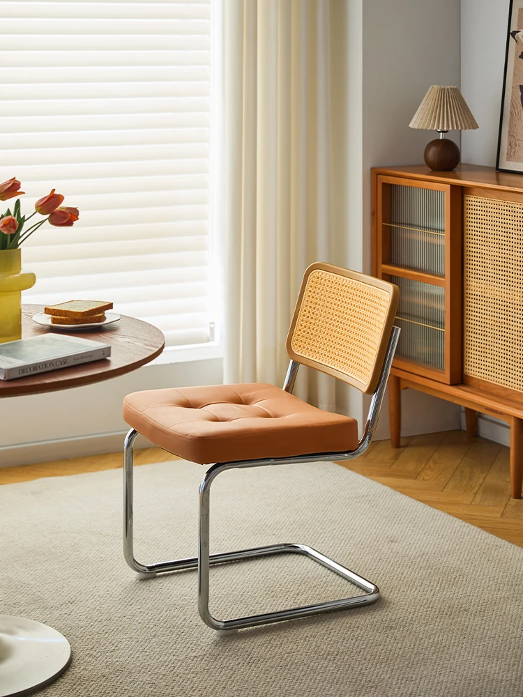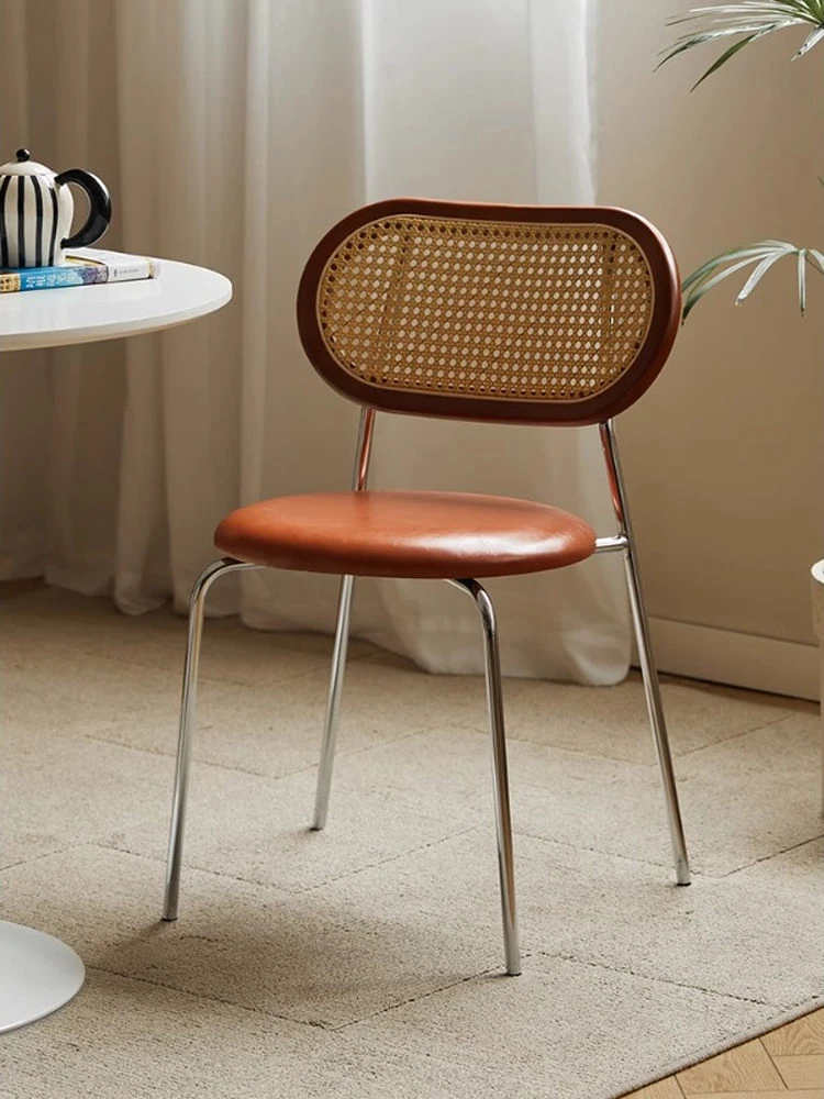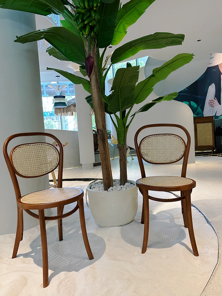 北欧スタイルの無垢材とラタン編みのダイニングチェア - わびさびの美学を取り入れたレトロデザイン、シンプルでありながら洗練された背もたれ付き、家庭用にもカフェにもぴったりのデザイナーズチェア!