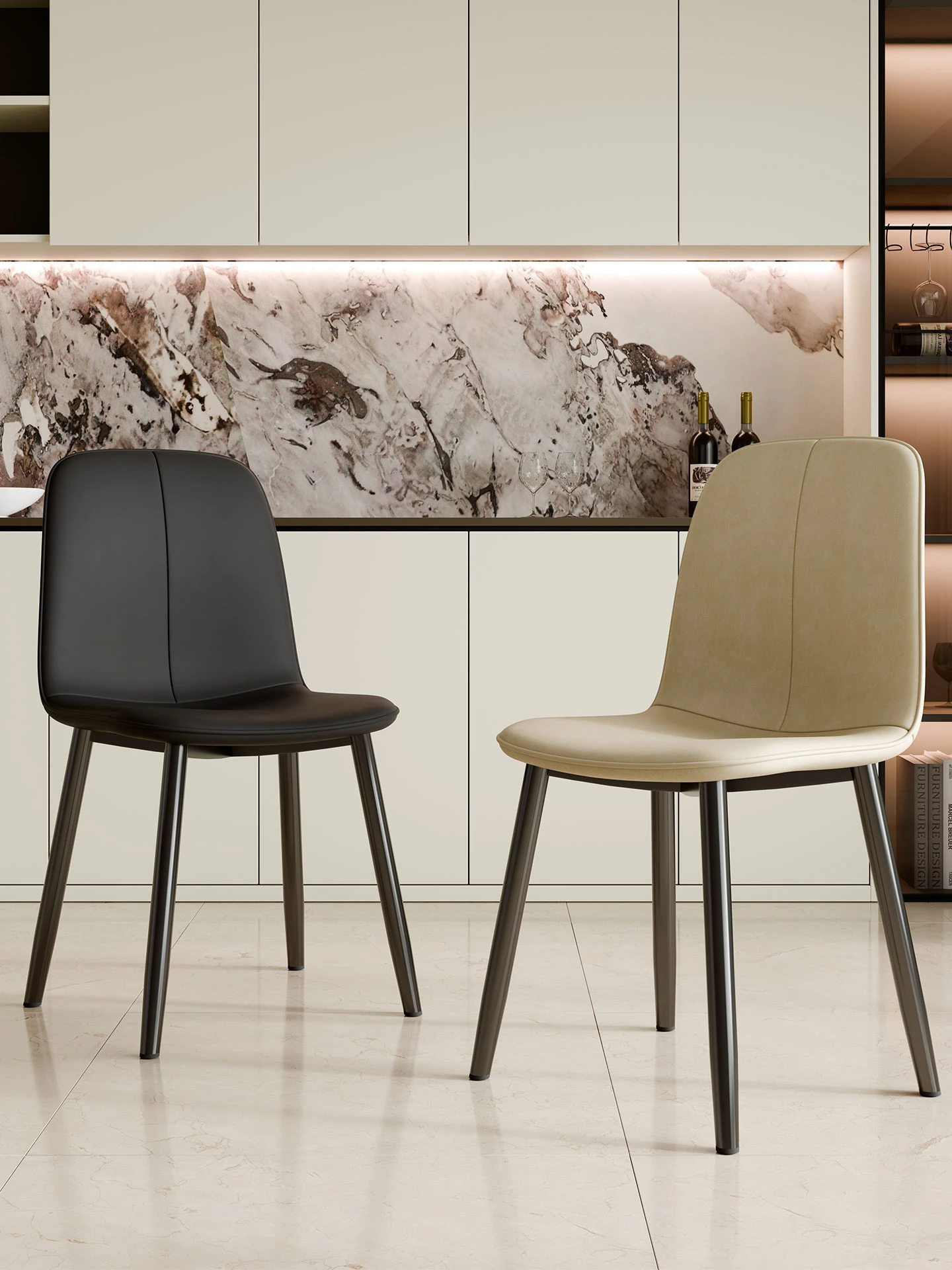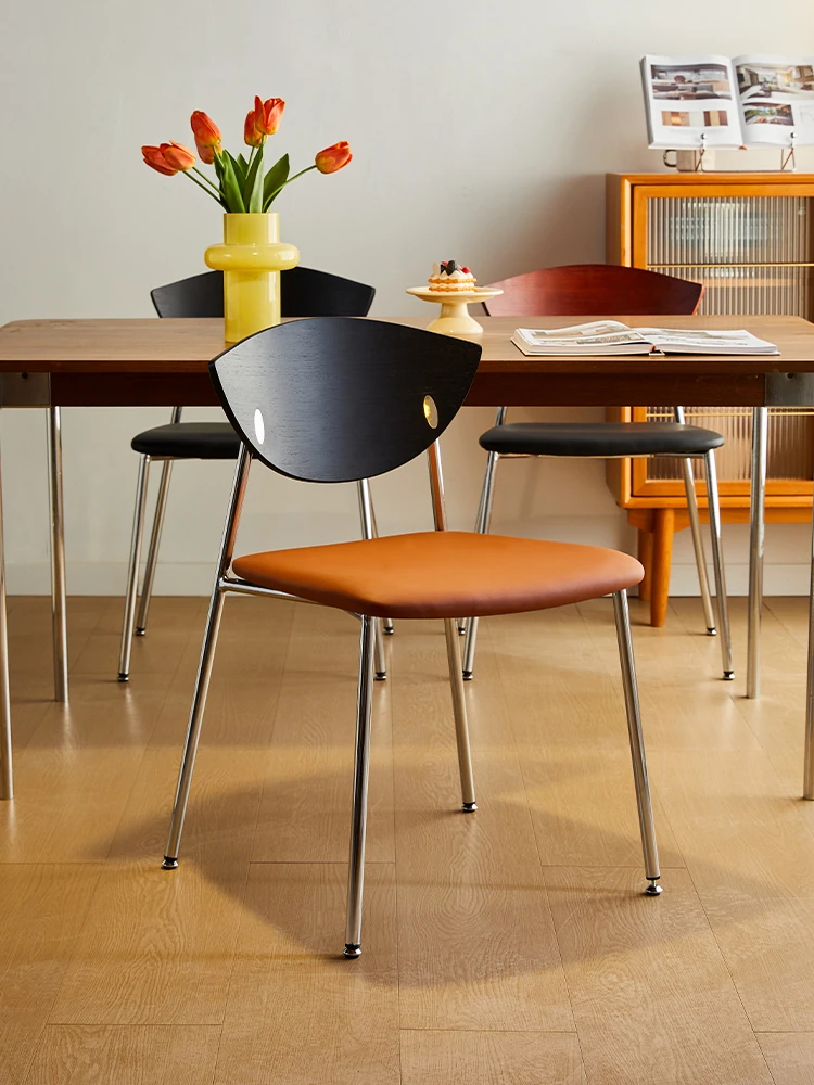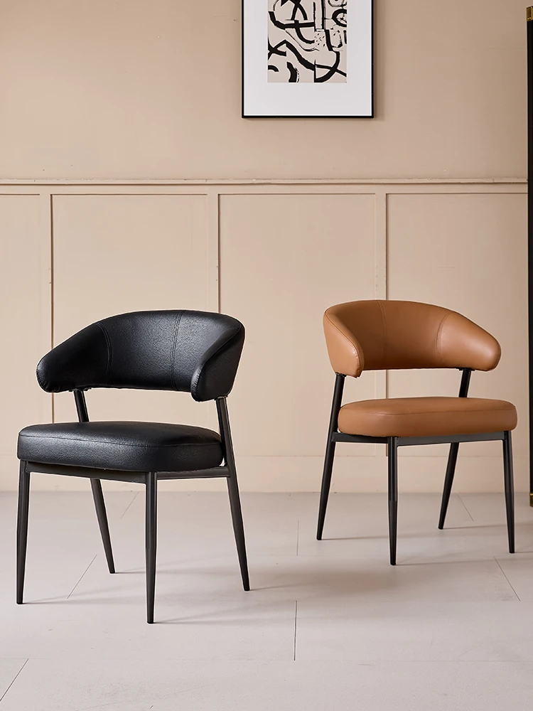 省スペースの北欧スタイル軽奢華ダイニングチェア!モダンでシンプルなデザインの背もたれ付き椅子。アイアンフレームと高級レザー素材を使用し、小さなお部屋にもぴったり!快適な座り心地でおしゃれな食卓を演出します。