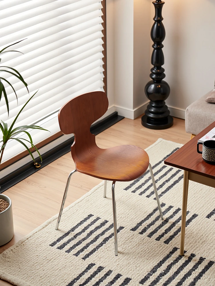 北欧風の軽奢実木ダイニングチェア|リラクシングアームチェア|クリエイティブデザインの背もたれ付き|モダンミニマリストスタイル|ナチュラルウッドカラーでおしゃれな食事空間を演出!