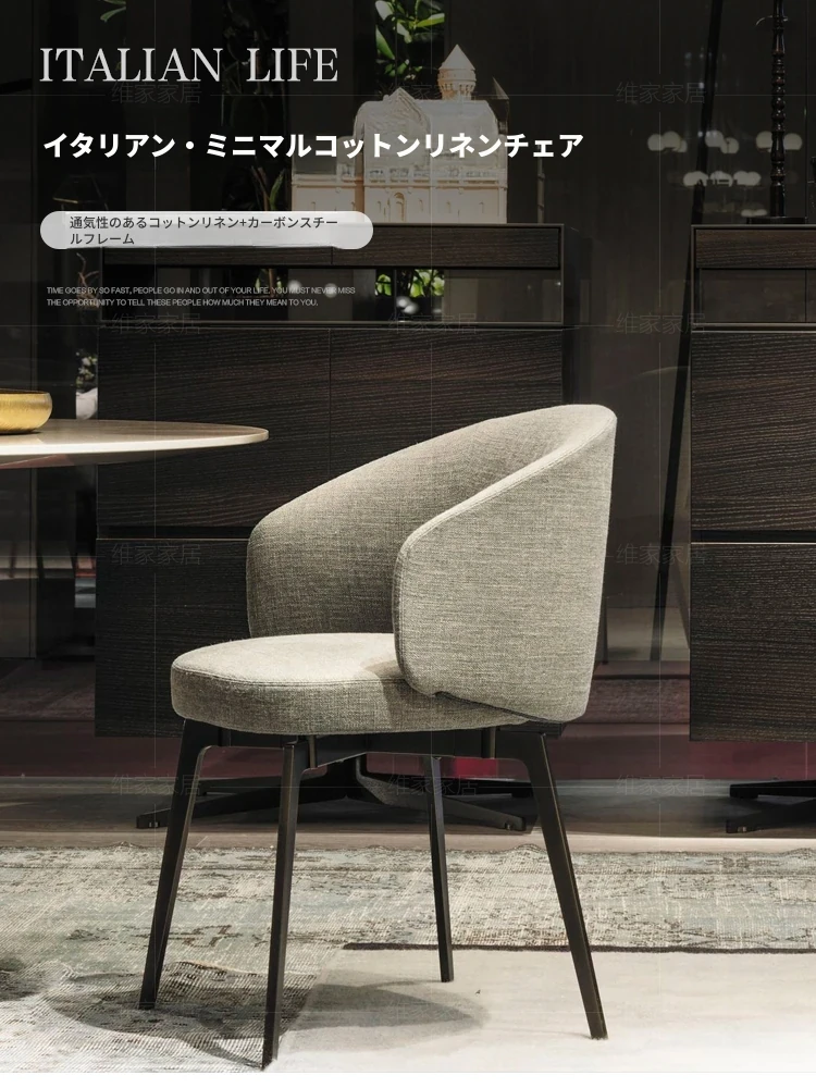 イタリアンスタイルの無垢材ダイニングチェア|北欧デザインのコットンリネン素材|ホテルやレストランに最適|モダンでシンプルな書斎用チェア|快適さとスタイルを兼ね備えた一品!