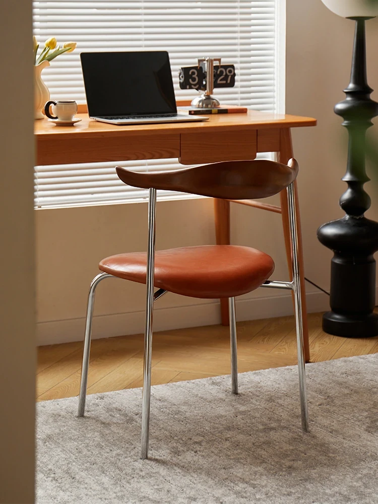 イタリアンミニマリズムの軽奢ダイニングチェア|背もたれ付きのサドルチェア|快適なソフトパッケージ|北欧デザインのエレガンス溢れる一品|おしゃれな食卓にぴったり!