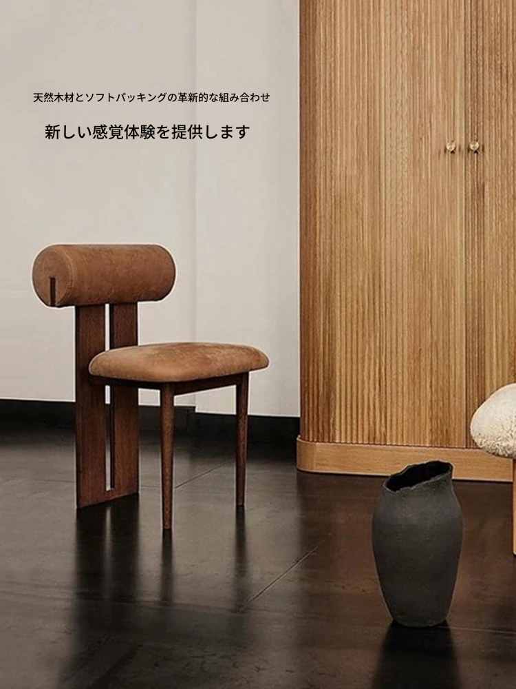 侘寂風の天然木製ファブリックダイニングチェア、シンプルでリラックスできる化粧台チェア。軽やかな北欧モダンデザイン、洗練されたミッドセンチュリーの雰囲気を演出。おしゃれなインテリアにぴったり!