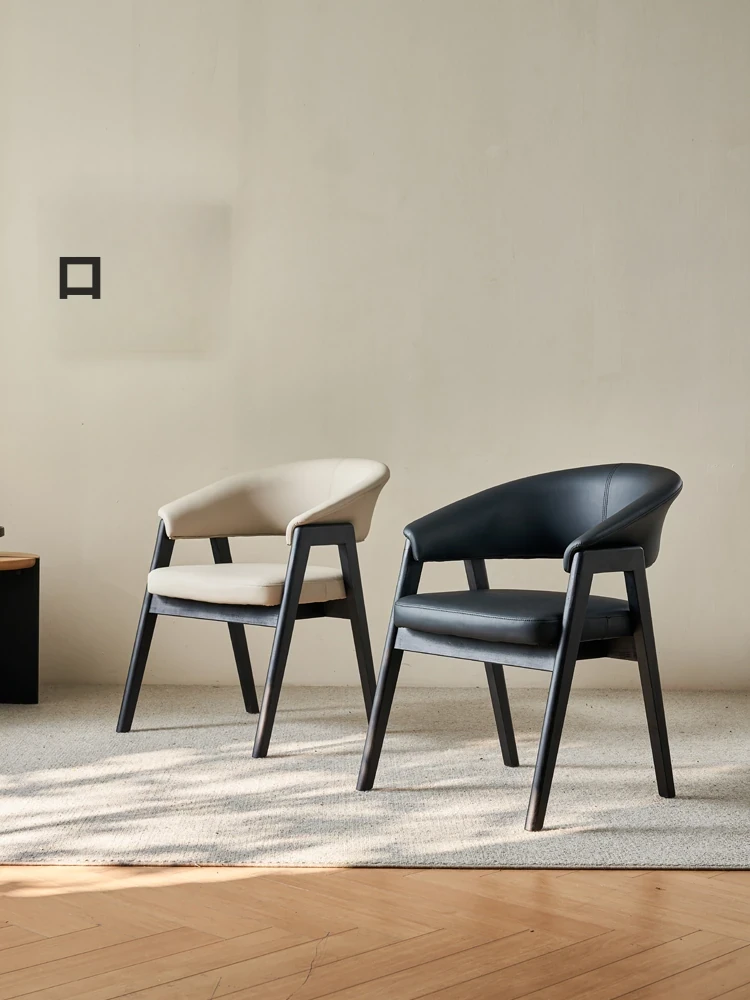 北欧スタイルの無垢材ダイニングチェア|快適な背もたれ&レザーソフトパッケージ|アーム付きでリラックス!ホテルやカフェにも最適なデザイン椅子【家庭用・業務用】