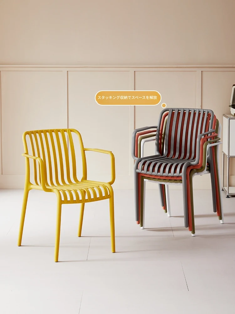 シンプルでスタイリッシュな家庭用プラスチック製ダイニングチェア!積み重ね可能で、リラックスできるアームチェアやバルコニー用、アウトドアやビーチにも最適。快適さと便利さを兼ね備えた一品です!