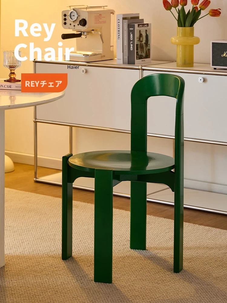 レトロなREYダイニングチェア|家庭用高級無垢材背もたれ椅子|シンプルな円形スツール|スタッキング可能|デスクチェアやビジネスミーティングにも最適!