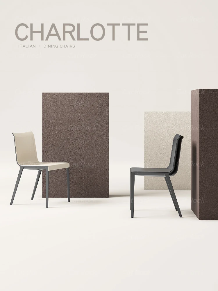 軽やかな高級感のある本革ダイニングチェア|家庭用テーブル・ティーチェア|洗練されたデザインのイタリアンミニマルスタイル|ステンレス製の高級椅子で、上質な食卓を演出します。