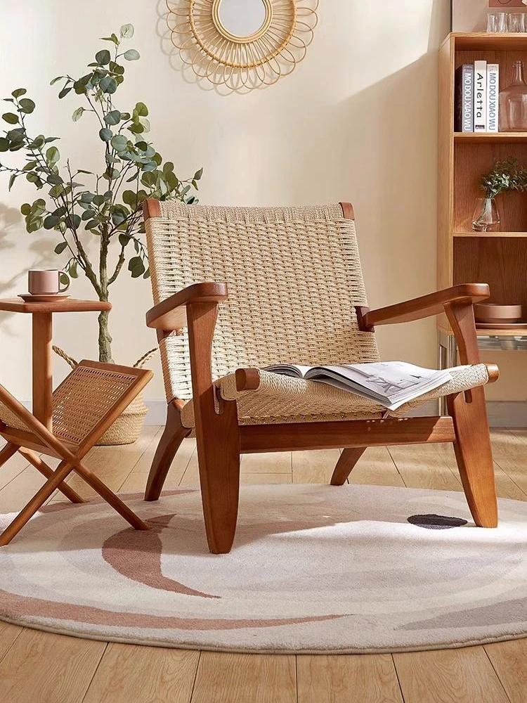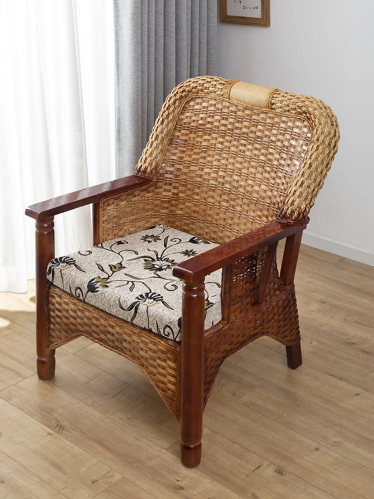Stylish Rattan-Back Armchair - Solid Wood Lounge Chair for Living Room or Balcony, Minimalist Design Single Sofa Chair for Relaxation, Perfect for Home Decor, Designer Quality