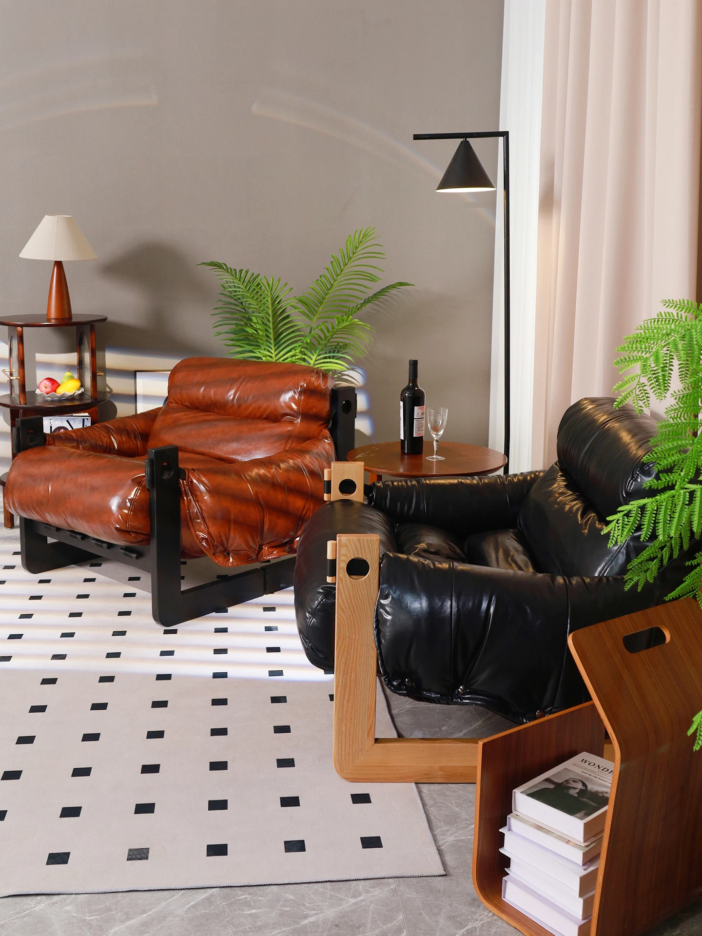 Vintage Nordic Style Lazy Armchair - Cozy Single Recliner for Small Spaces, Soft Padded Backrest, Minimalist Design Perfect for Home Use