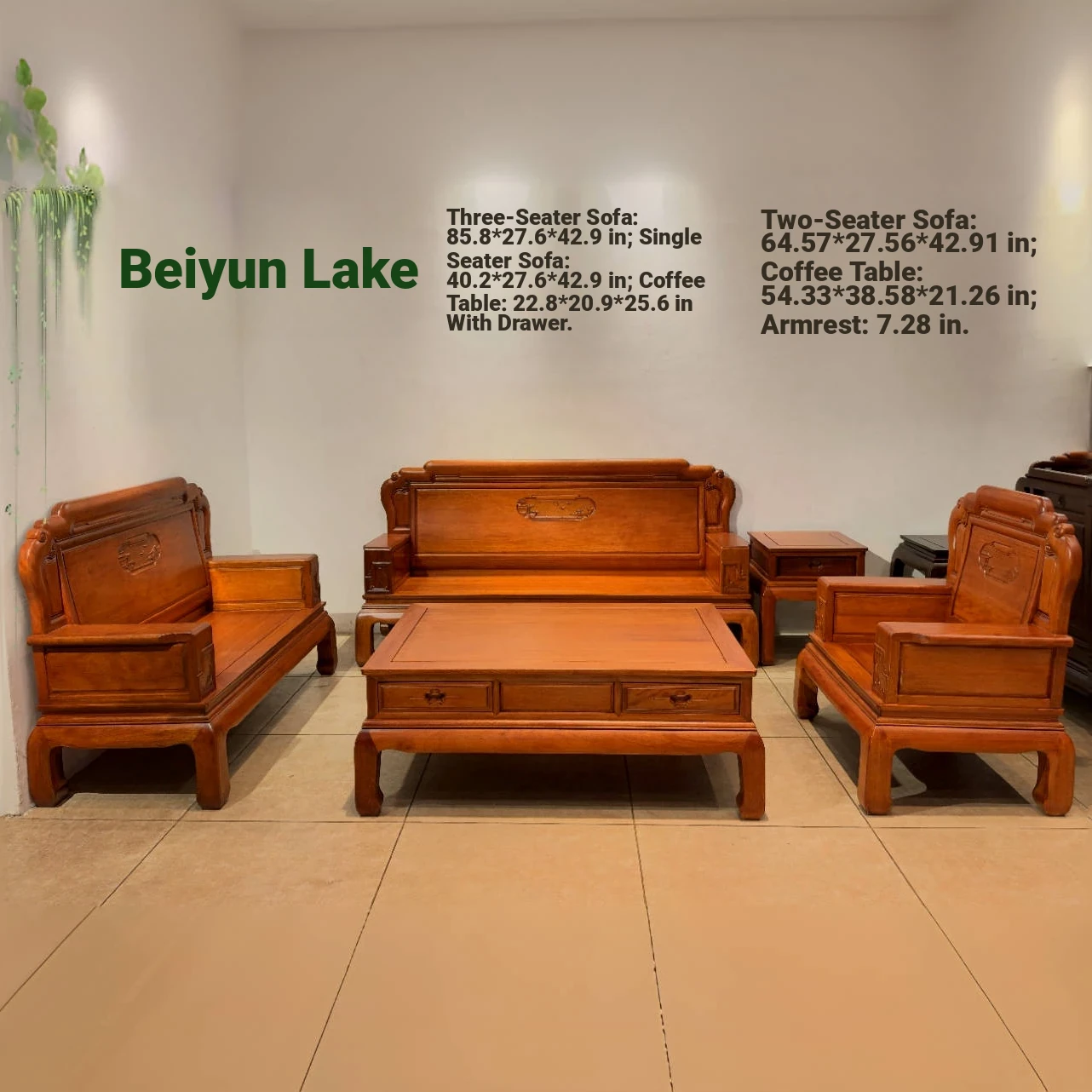 Antique-Style Solid Wood Sofa Set in Huanghuali and African Pineapple Wood - Premium Quality, Removable Design, Direct Manufacturer Sale with Free Shipping!