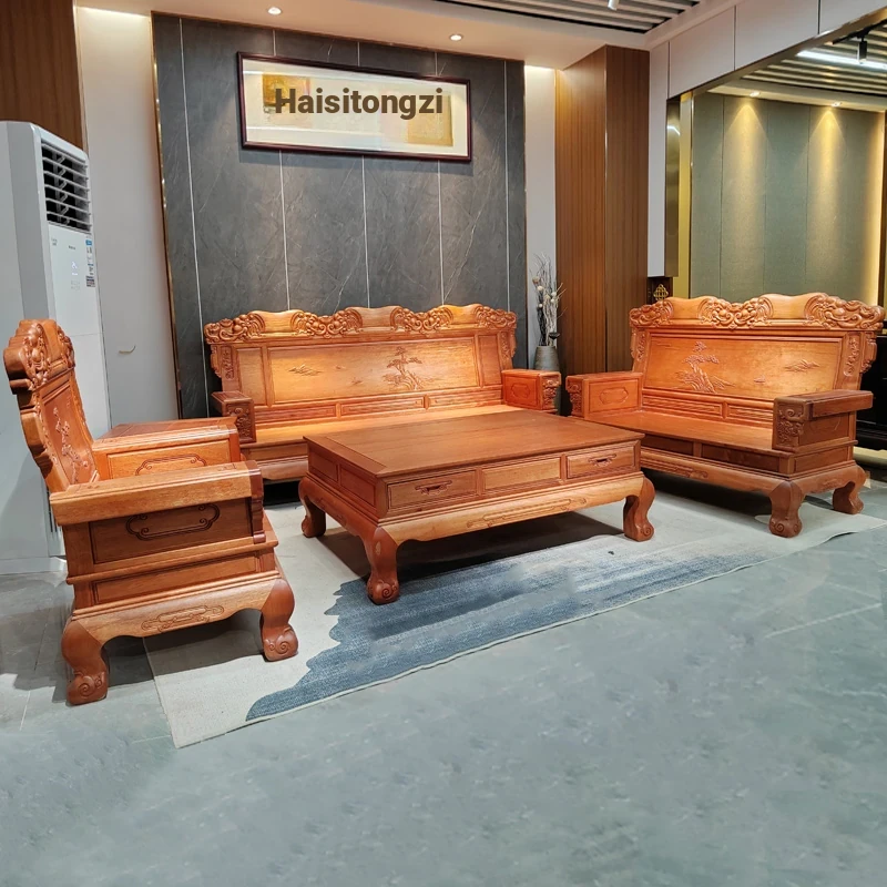 Solid Wood Jinhua Pear Sofa Set - New Chinese Style, Antique Carved Red Wood Living Room Furniture, Complete Rural Set for Elegant Home Decor
