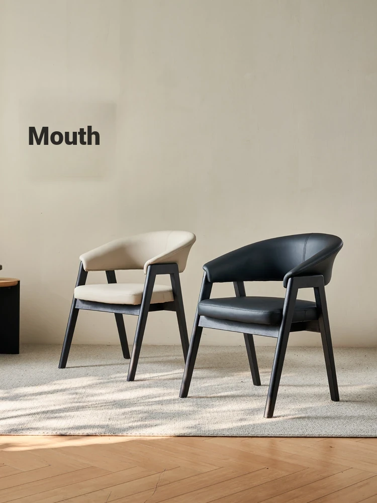 Stylish Italian Minimalist Solid Wood Dining Chair with Armrests - Designer Home Dining Seat for Restaurants and Tea Rooms, Featuring Comfortable Backrest and High-End Appeal