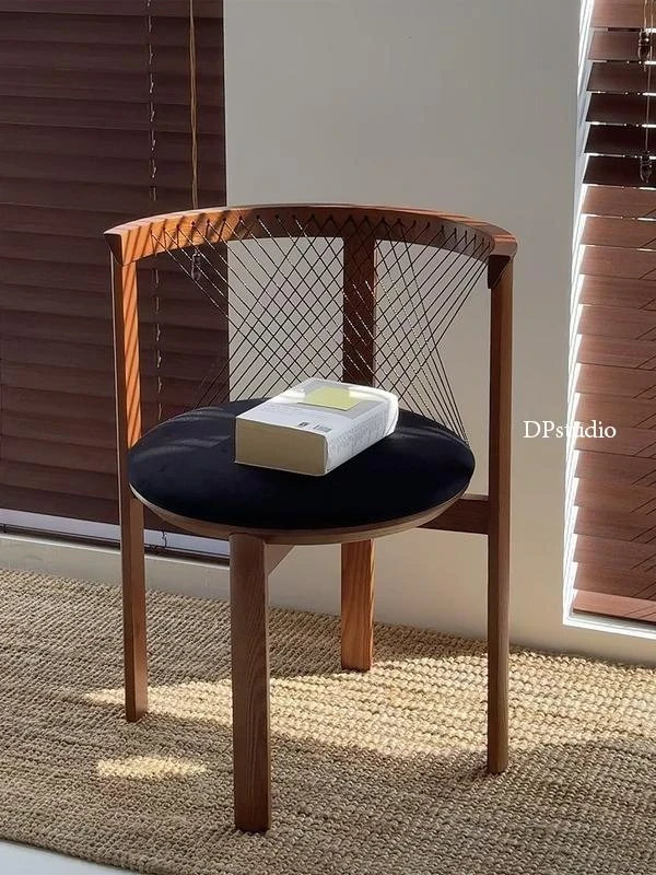 Danish Designer Harp Chair - Vintage Solid Wood Upholstered Dining Chair in Wabi-Sabi Style, Trendy Armchair for Boutique Homestays with Elegant Backrest