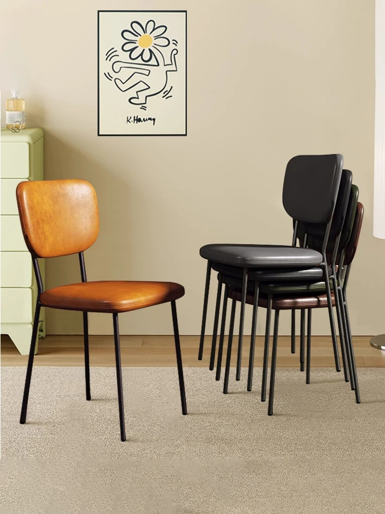 Modern Minimalist Stackable Dining Chair for Adults - Nordic Chic Leather Chair with Backrest, Perfect for Dining Rooms and Study Desks, Crafted with Stylish Iron Frame