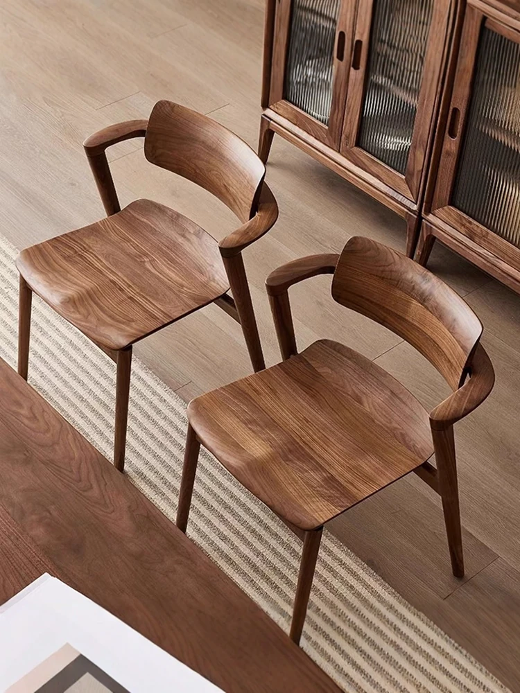 2025 New Arrival: North American Black Walnut Dining Chair - Solid Wood, Stylish Design for Home Use, Perfect for Living Room and Study, Armrest Included. Elevate Your Dining Experience with Timeless Elegance!