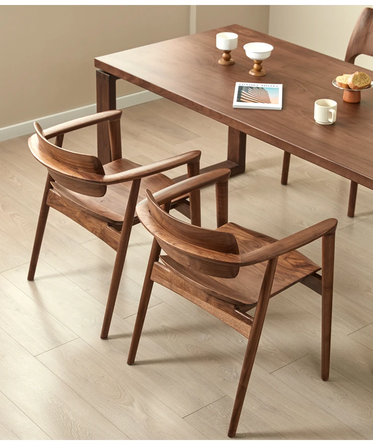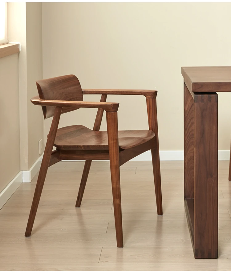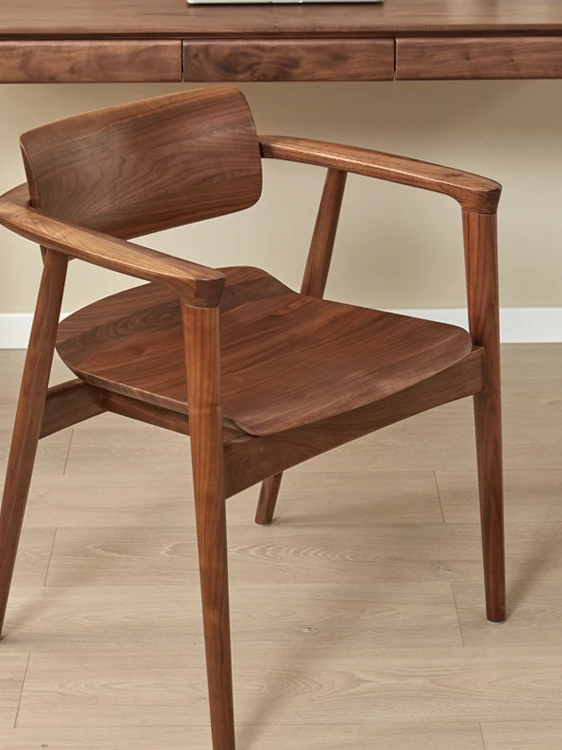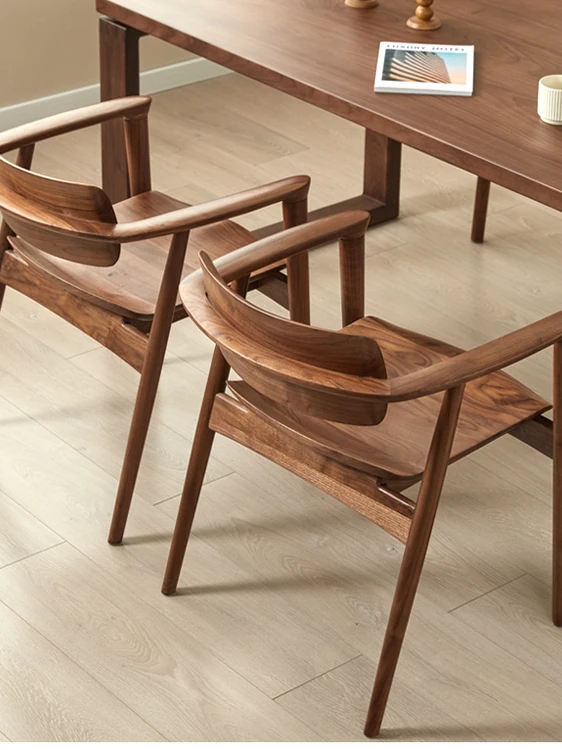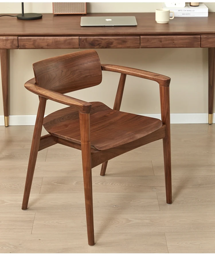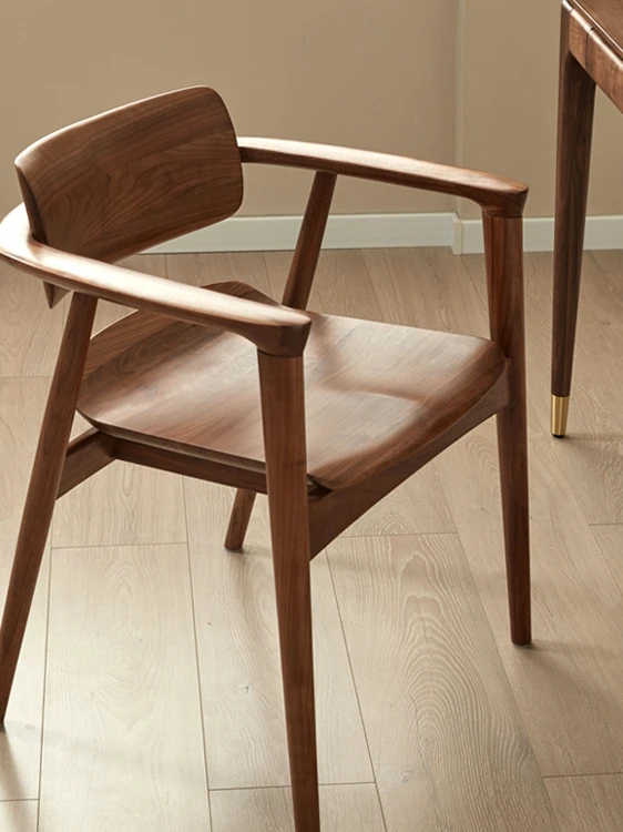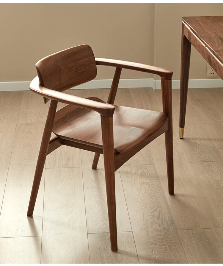 2025 New Arrival: North American Black Walnut Dining Chair - Solid Wood, Stylish Design for Home Use, Perfect for Living Room and Study, Armrest Included. Elevate Your Dining Experience with Timeless Elegance!
