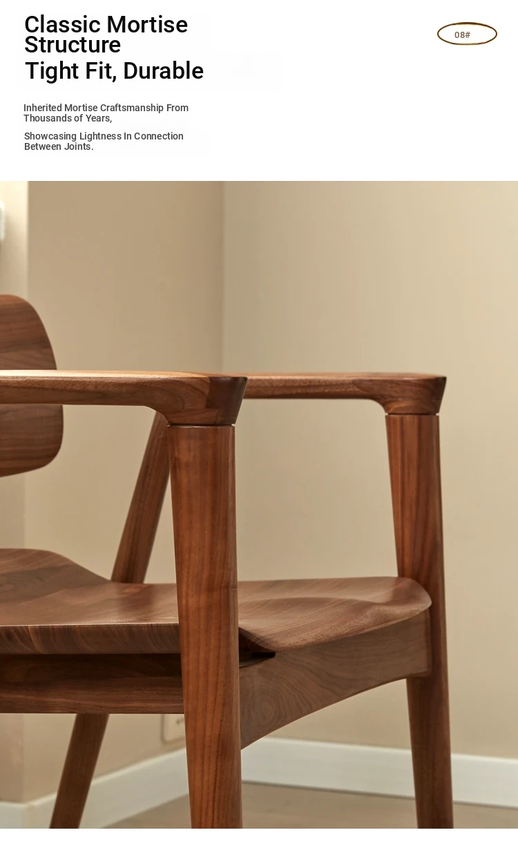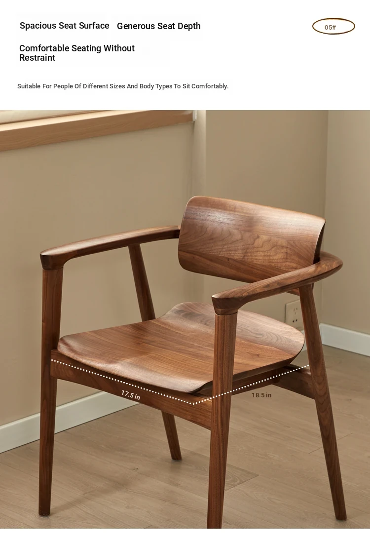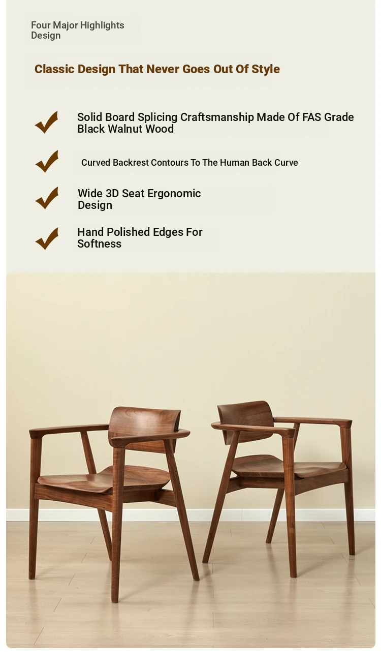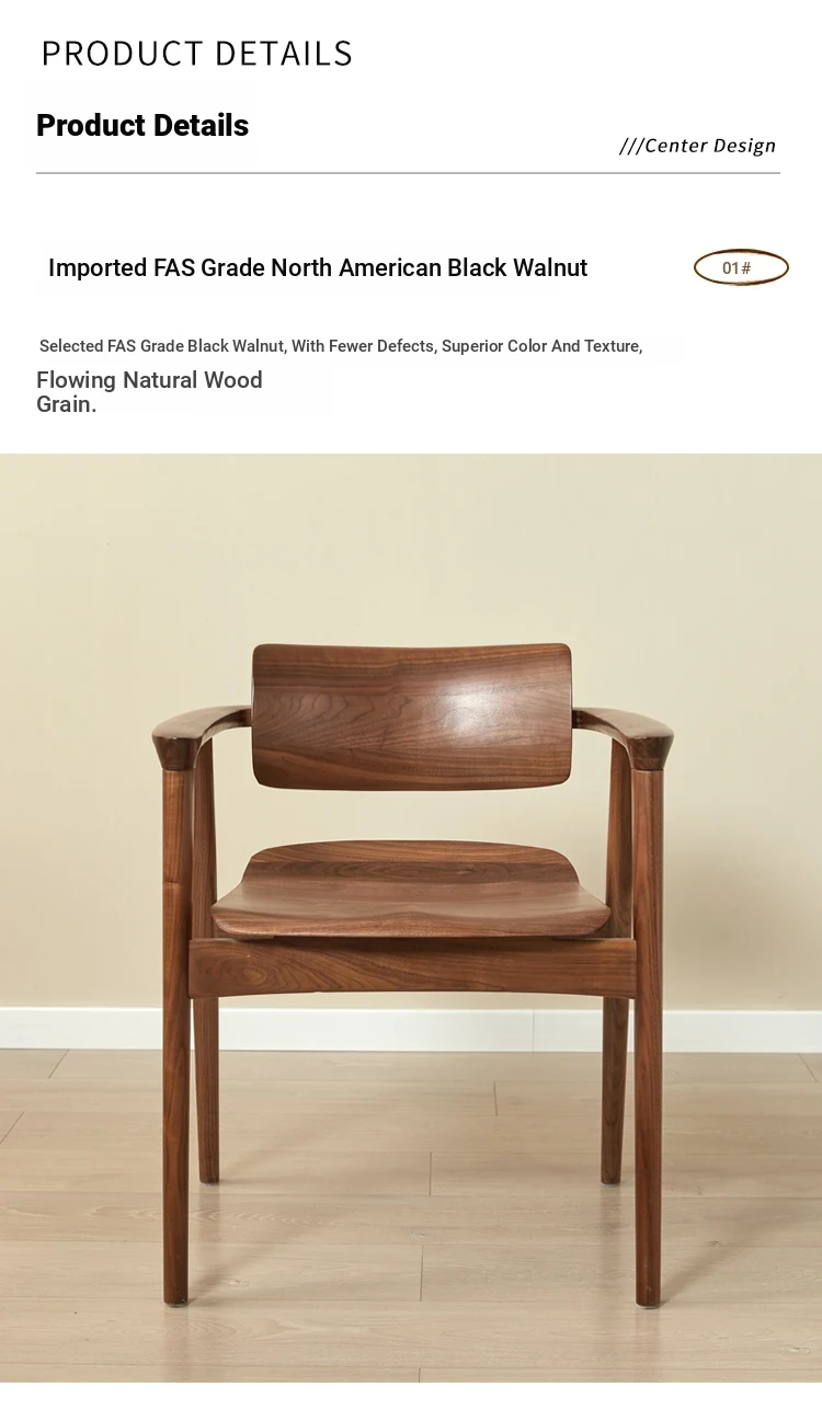 2025 New Arrival: North American Black Walnut Dining Chair - Solid Wood, Stylish Design for Home Use, Perfect for Living Room and Study, Armrest Included. Elevate Your Dining Experience with Timeless Elegance!