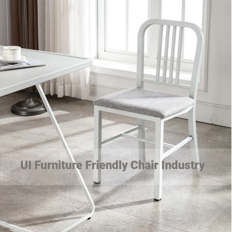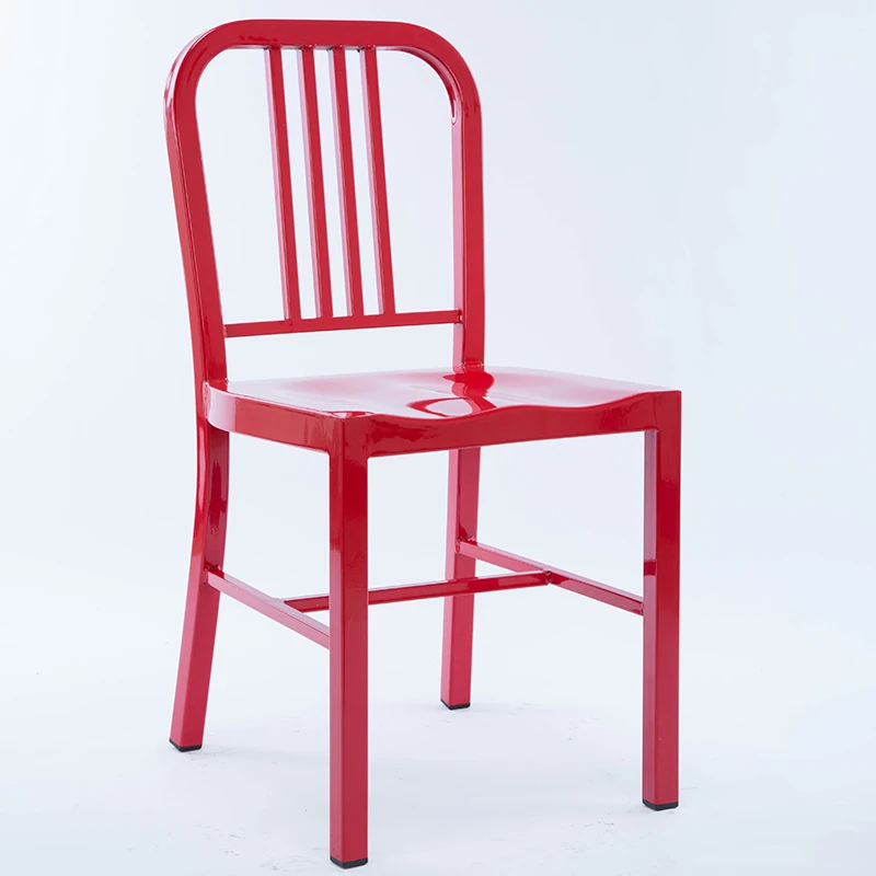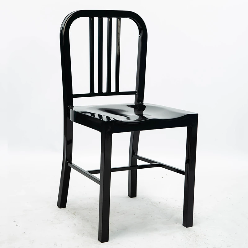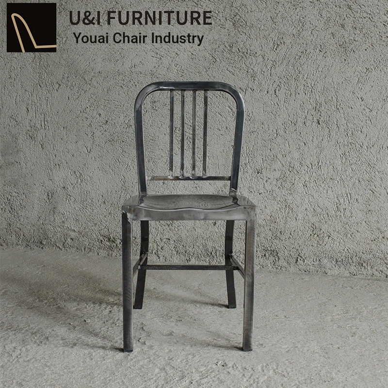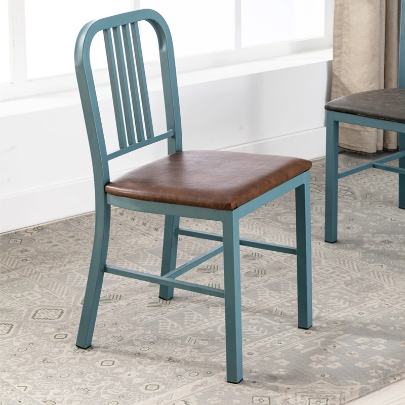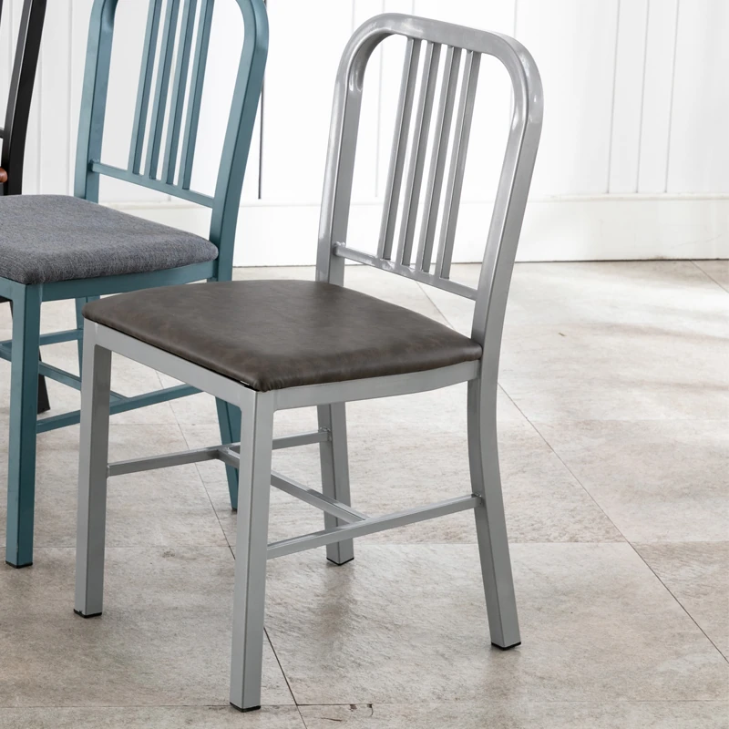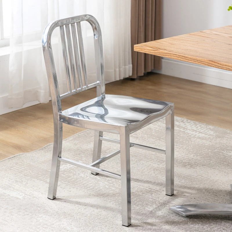 American Navy Style Iron Chair - Stainless Steel Finish Loft Dining Chair, Minimalist Modern Industrial Square Tube Backrest Iron Chair