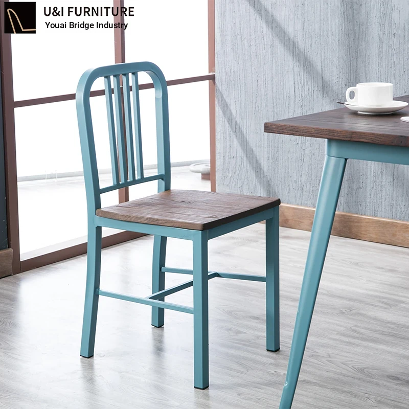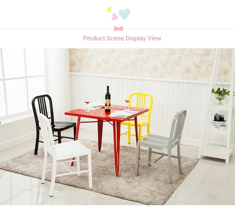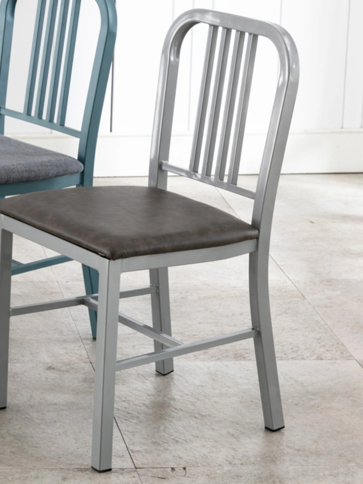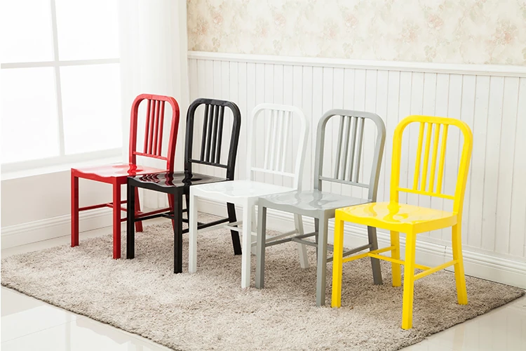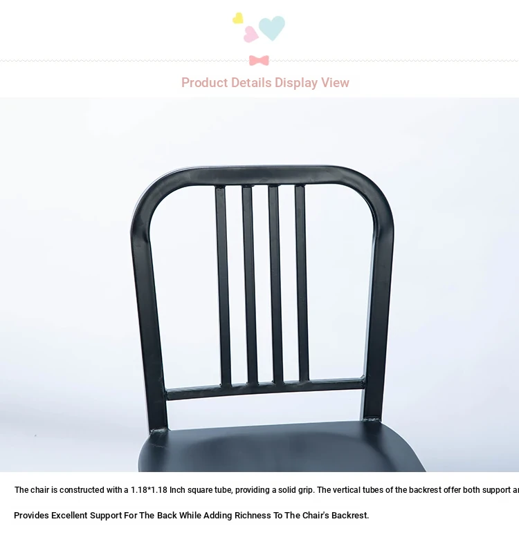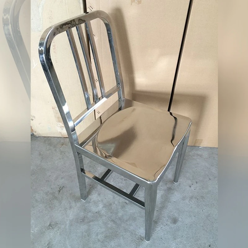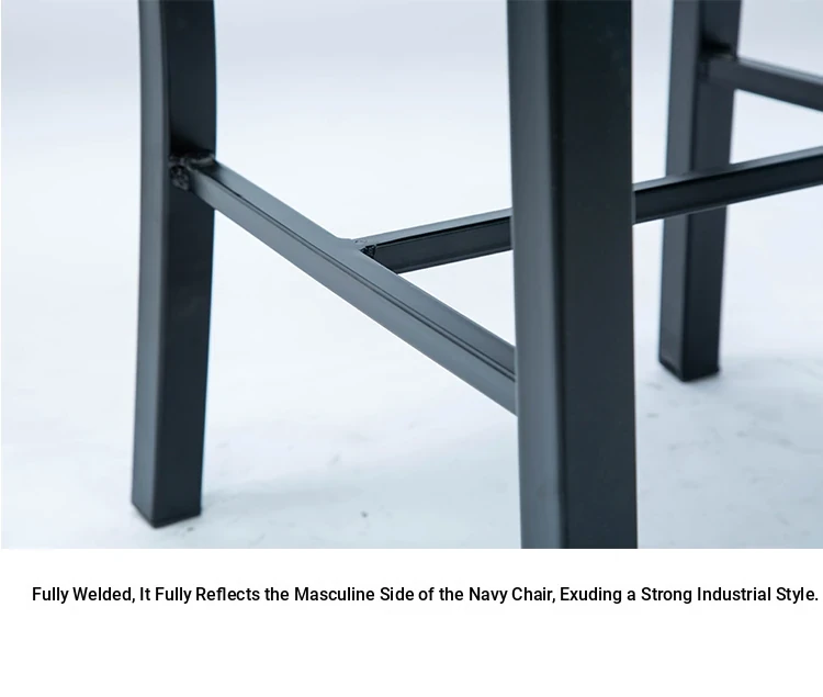 American Navy Style Iron Chair - Stainless Steel Finish Loft Dining Chair, Minimalist Modern Industrial Square Tube Backrest Iron Chair