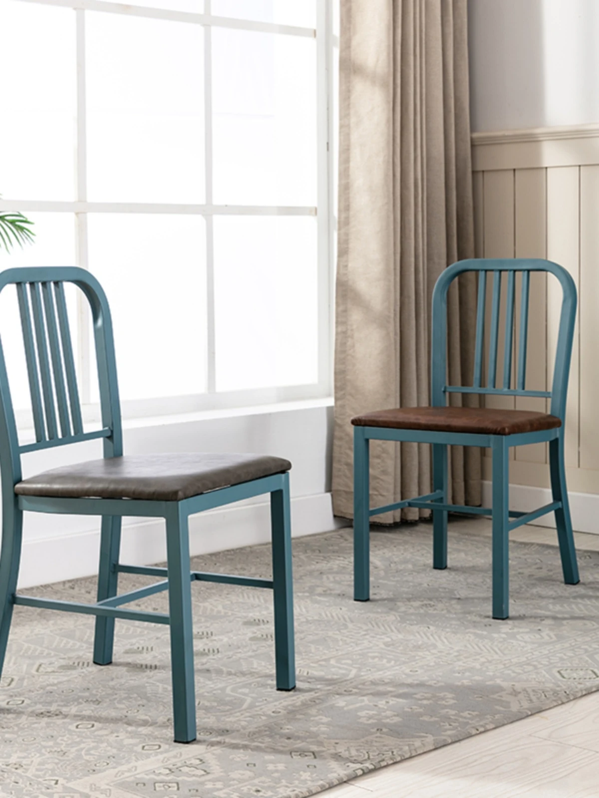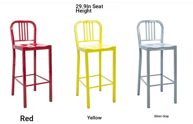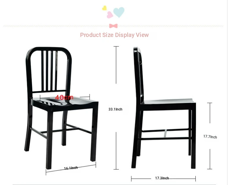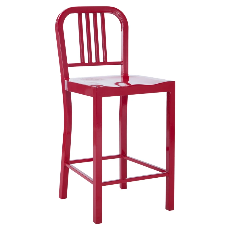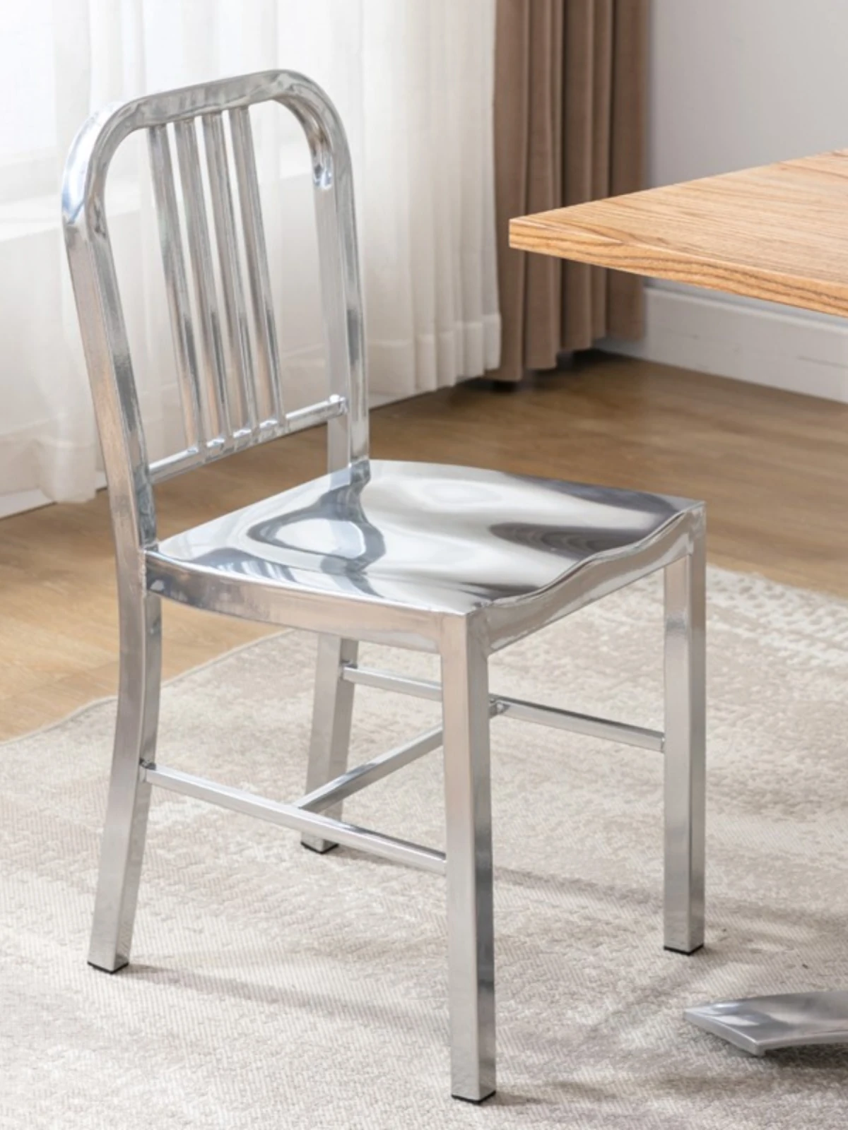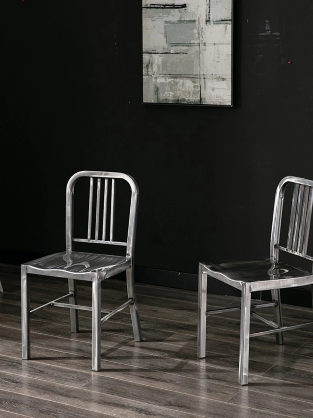 American Navy Style Iron Chair - Stainless Steel Finish Loft Dining Chair, Minimalist Modern Industrial Square Tube Backrest Iron Chair