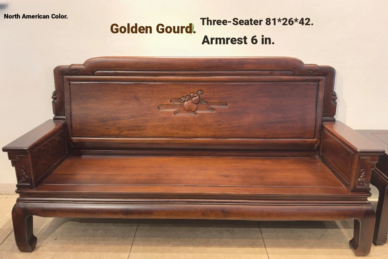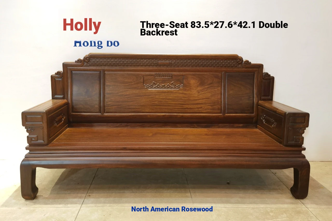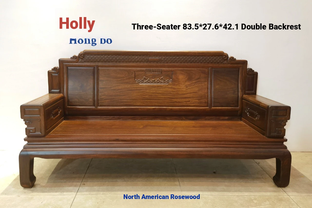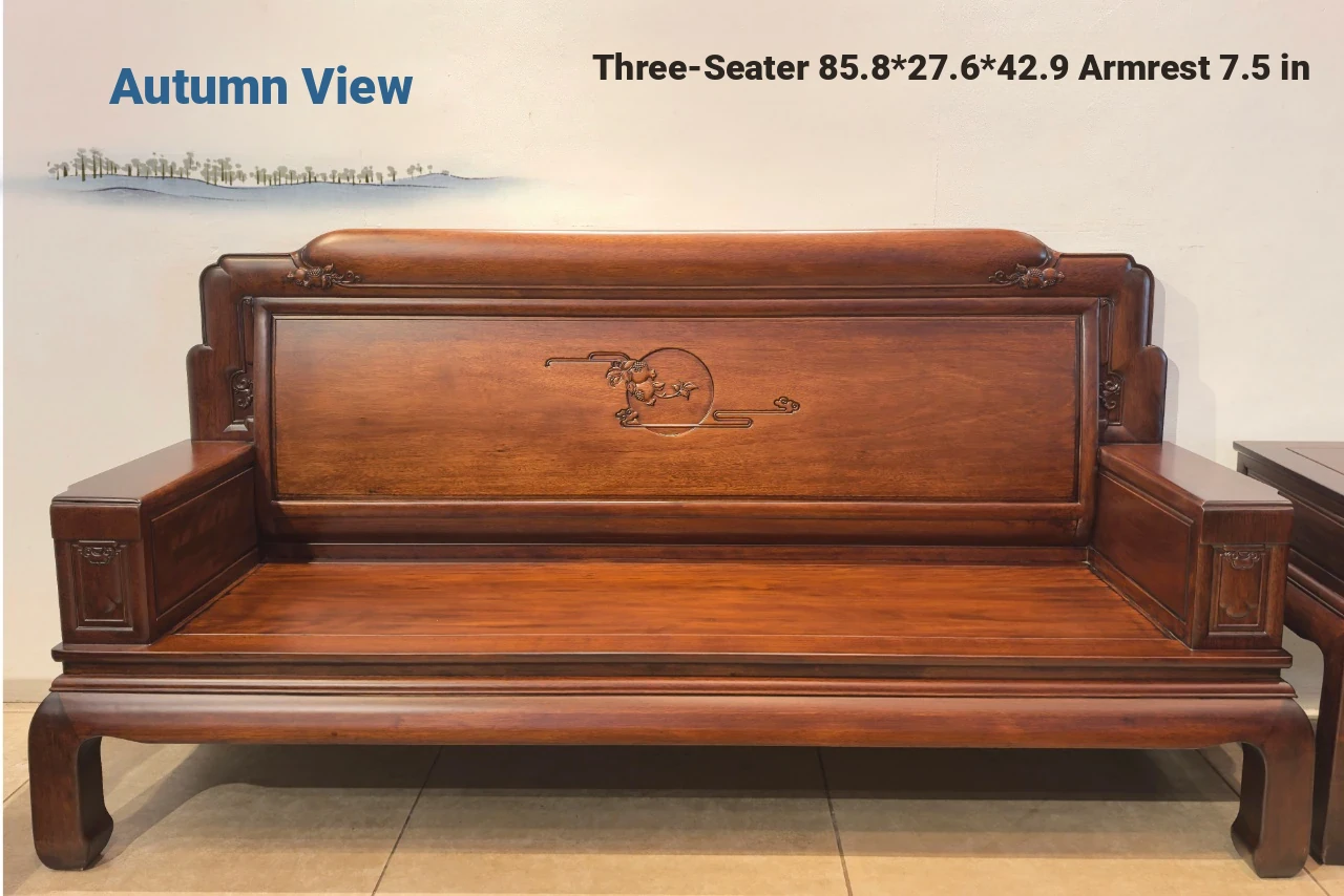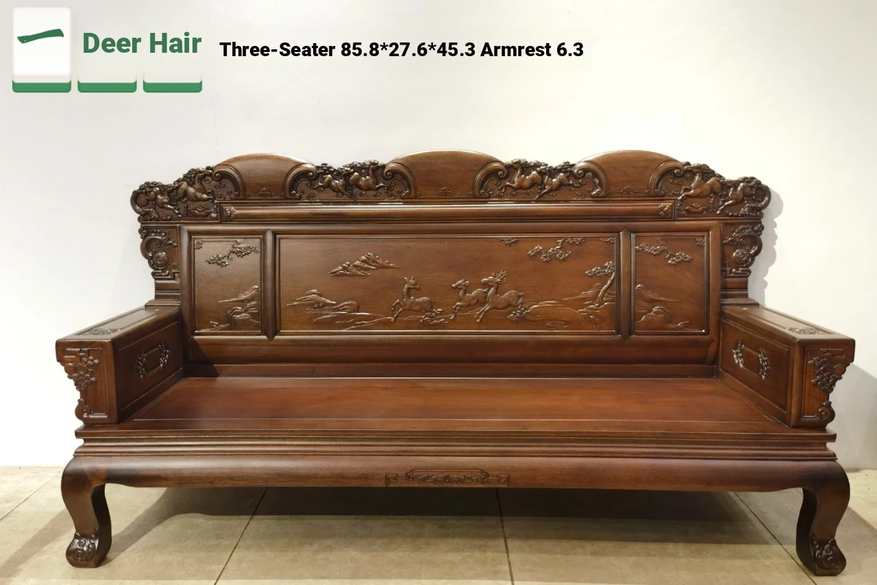 Antique-Style Solid Wood Sofa Bench - All-Knotty Pear Wood, Three-Seater, Perfect for Living Room, Dual-Season Use, Exquisite Carvings, Ideal for Home Decor