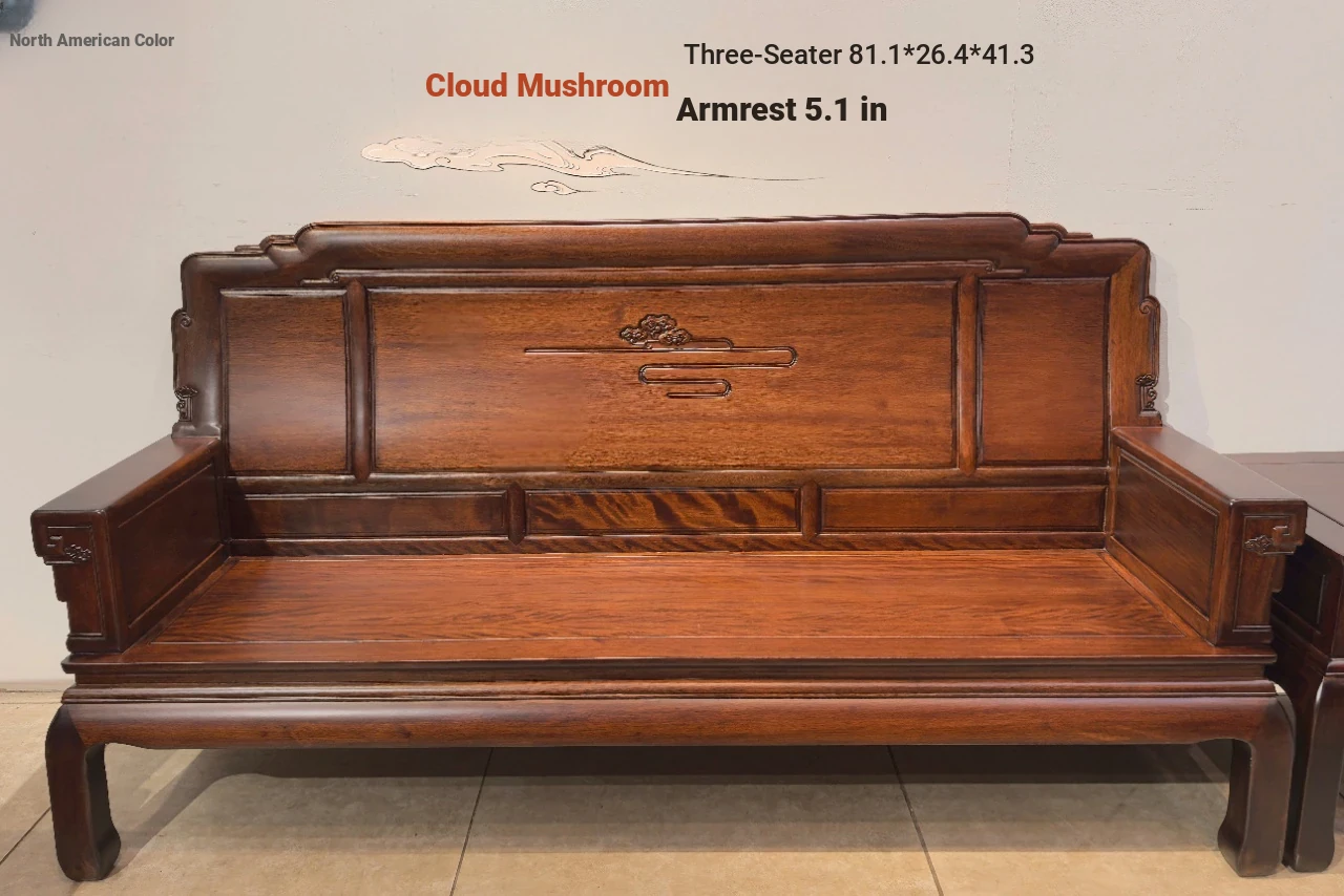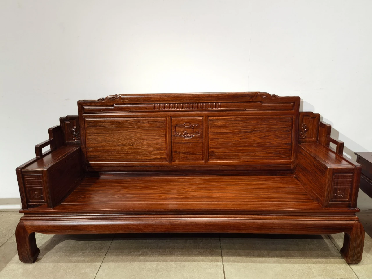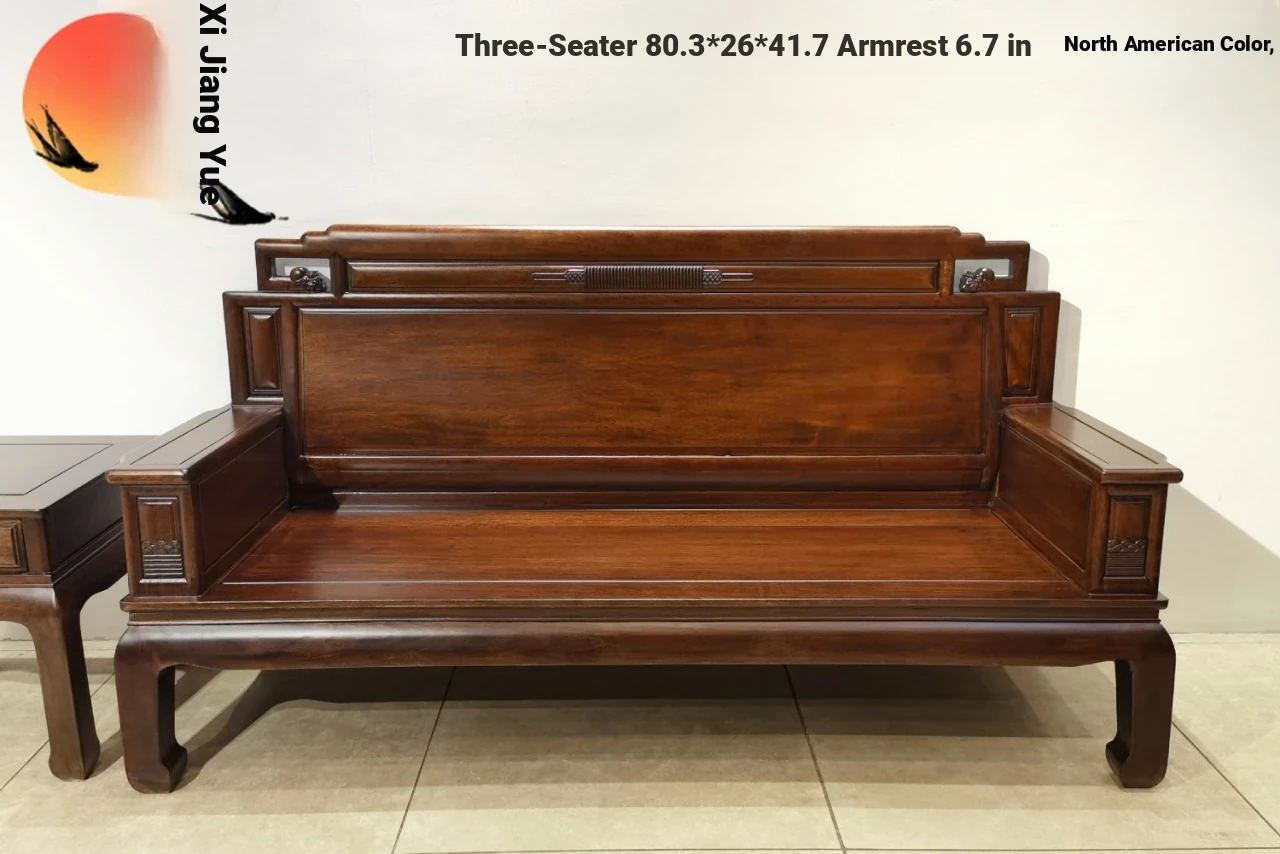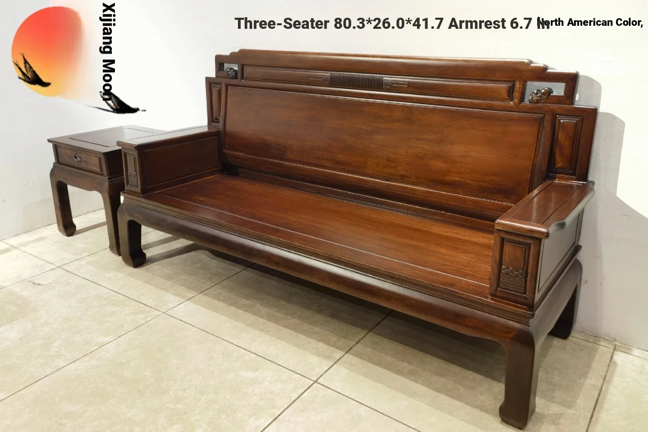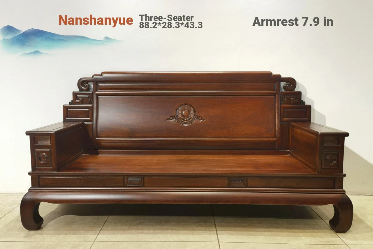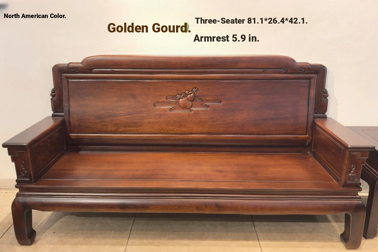 Antique-Style Solid Wood Sofa Bench - All-Knotty Pear Wood, Three-Seater, Perfect for Living Room, Dual-Season Use, Exquisite Carvings, Ideal for Home Decor