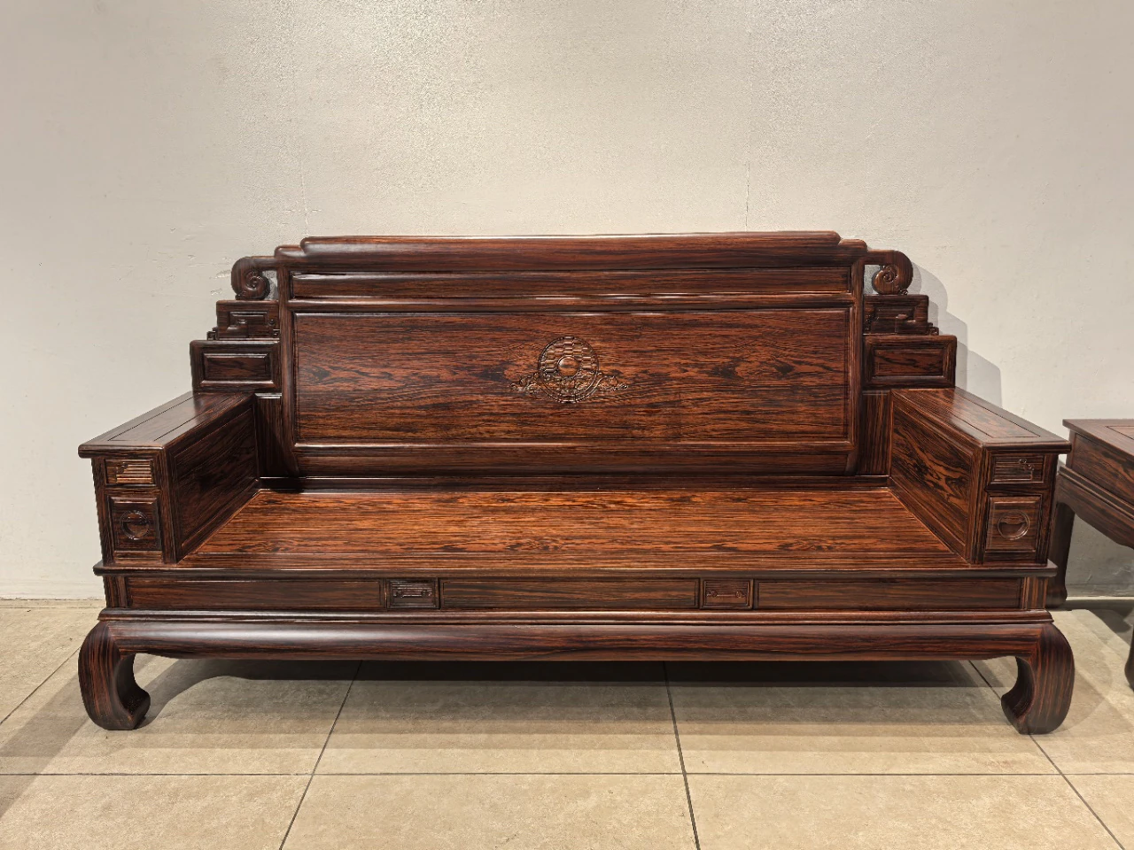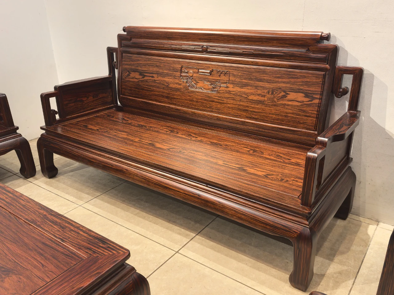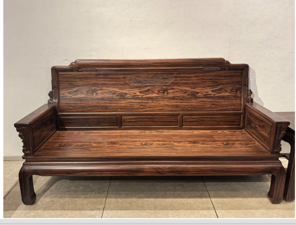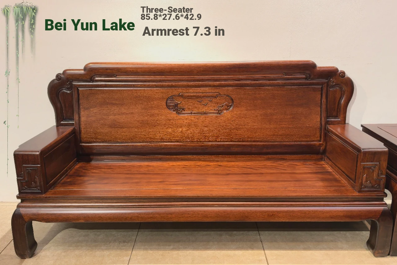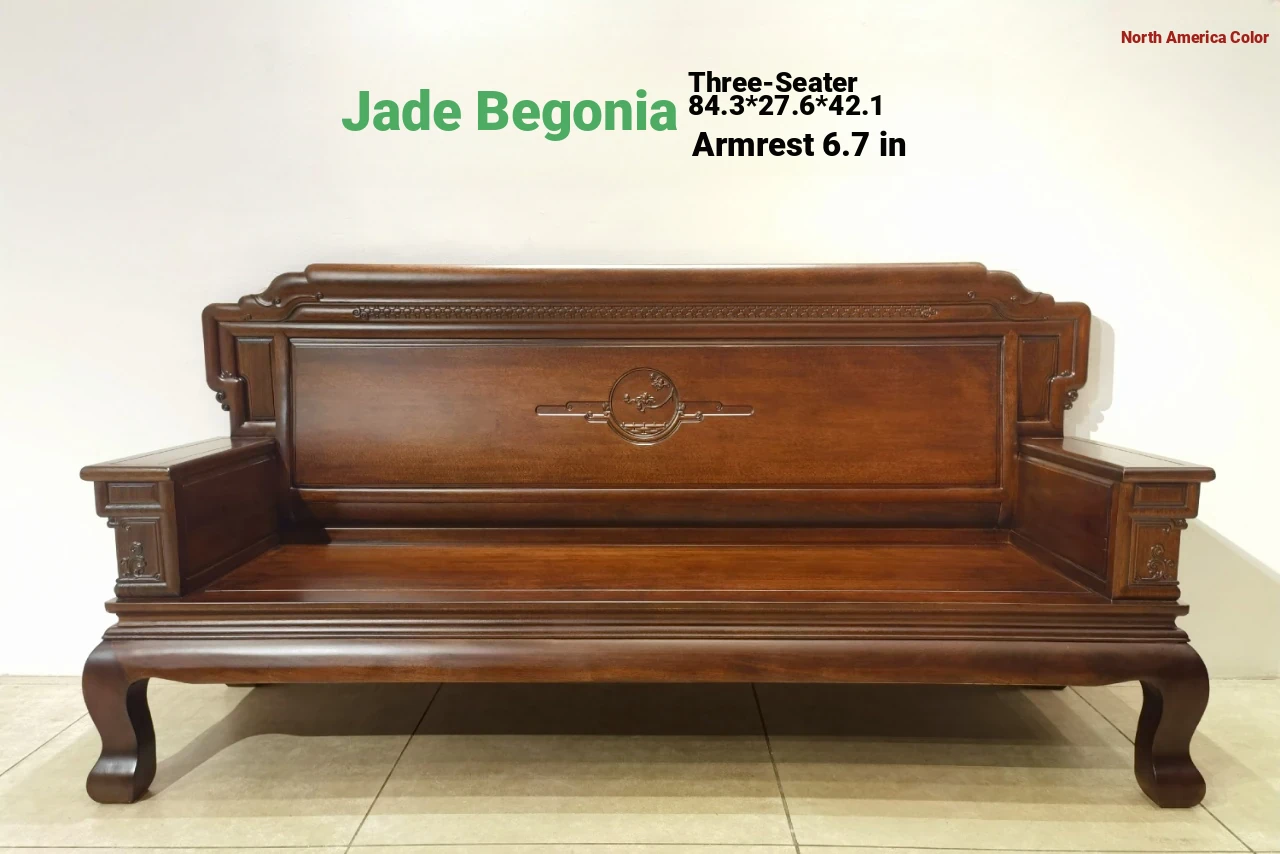 Antique-Style Solid Wood Sofa Bench - All-Knotty Pear Wood, Three-Seater, Perfect for Living Room, Dual-Season Use, Exquisite Carvings, Ideal for Home Decor
