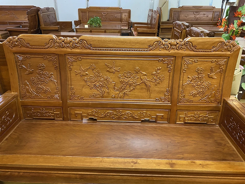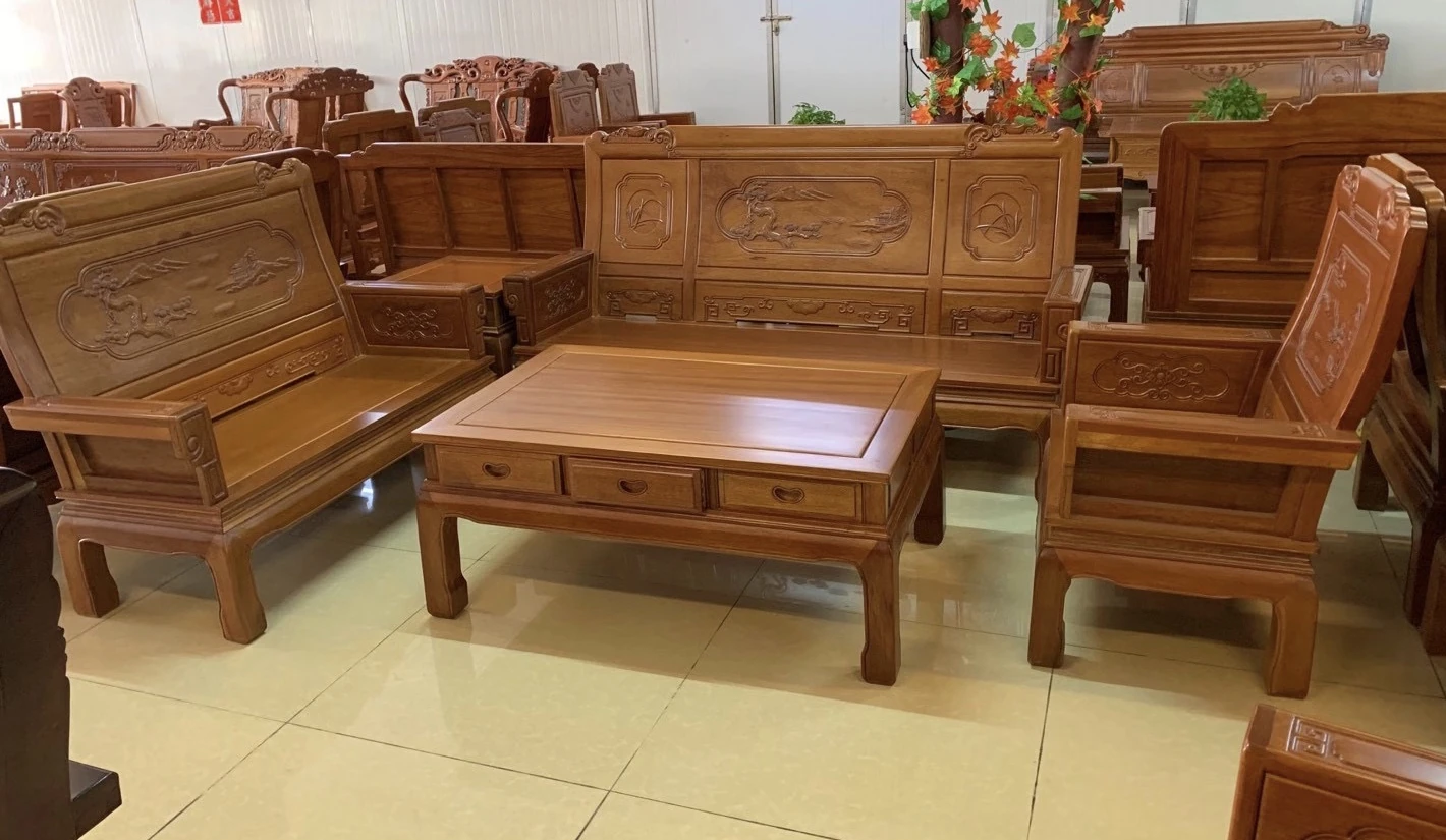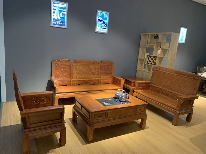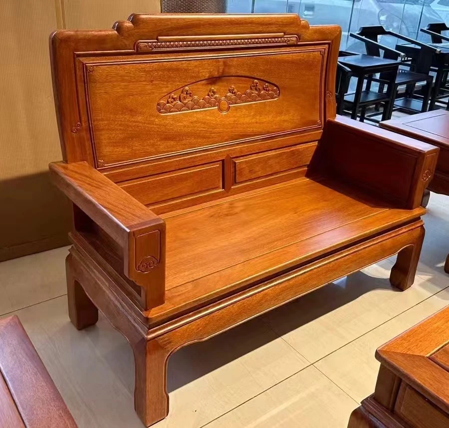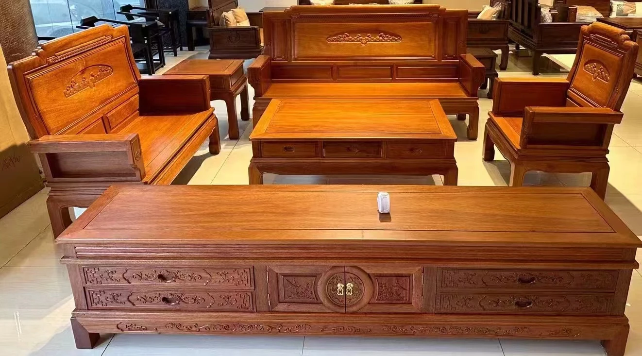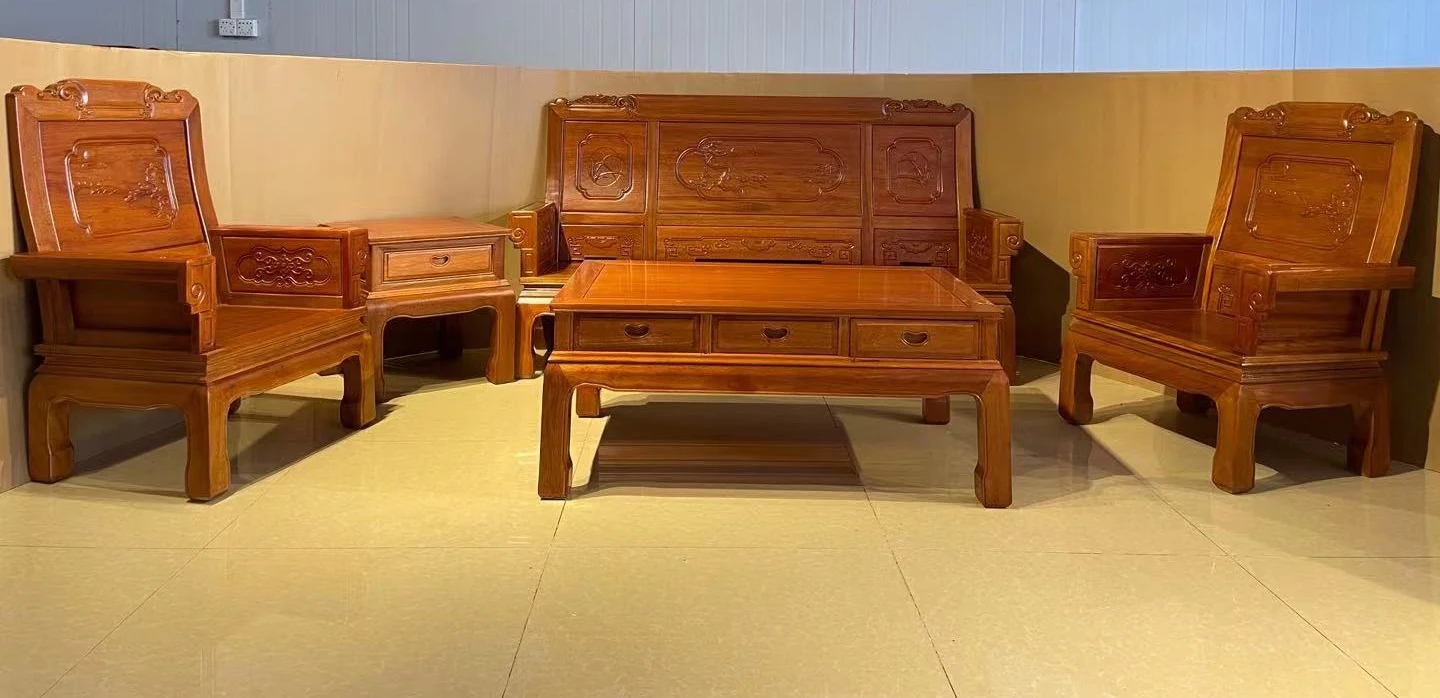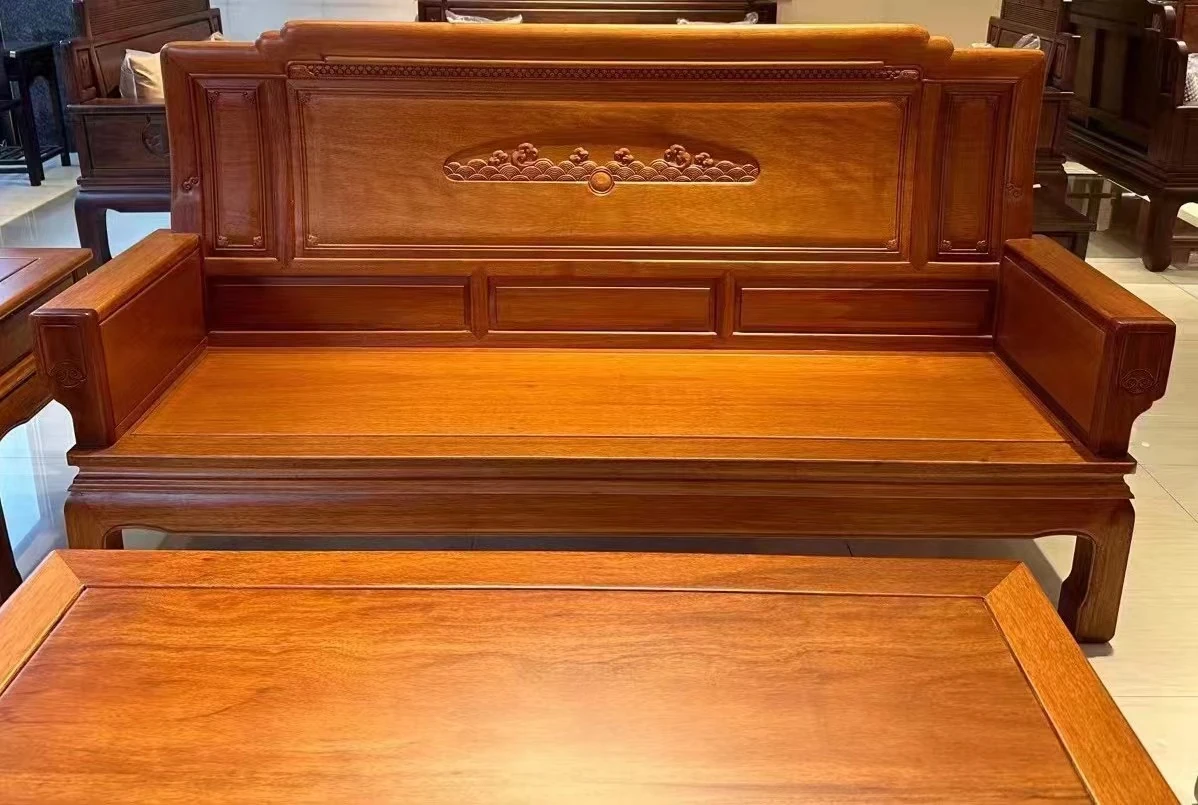 Antique-Style Solid Wood Sofa Set in Huanghuali and African Pineapple Wood - Premium Quality, Removable Design, Direct Manufacturer Sale with Free Shipping!
