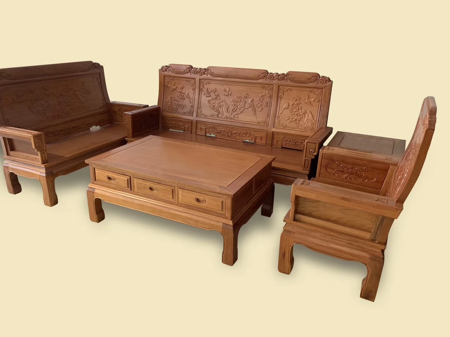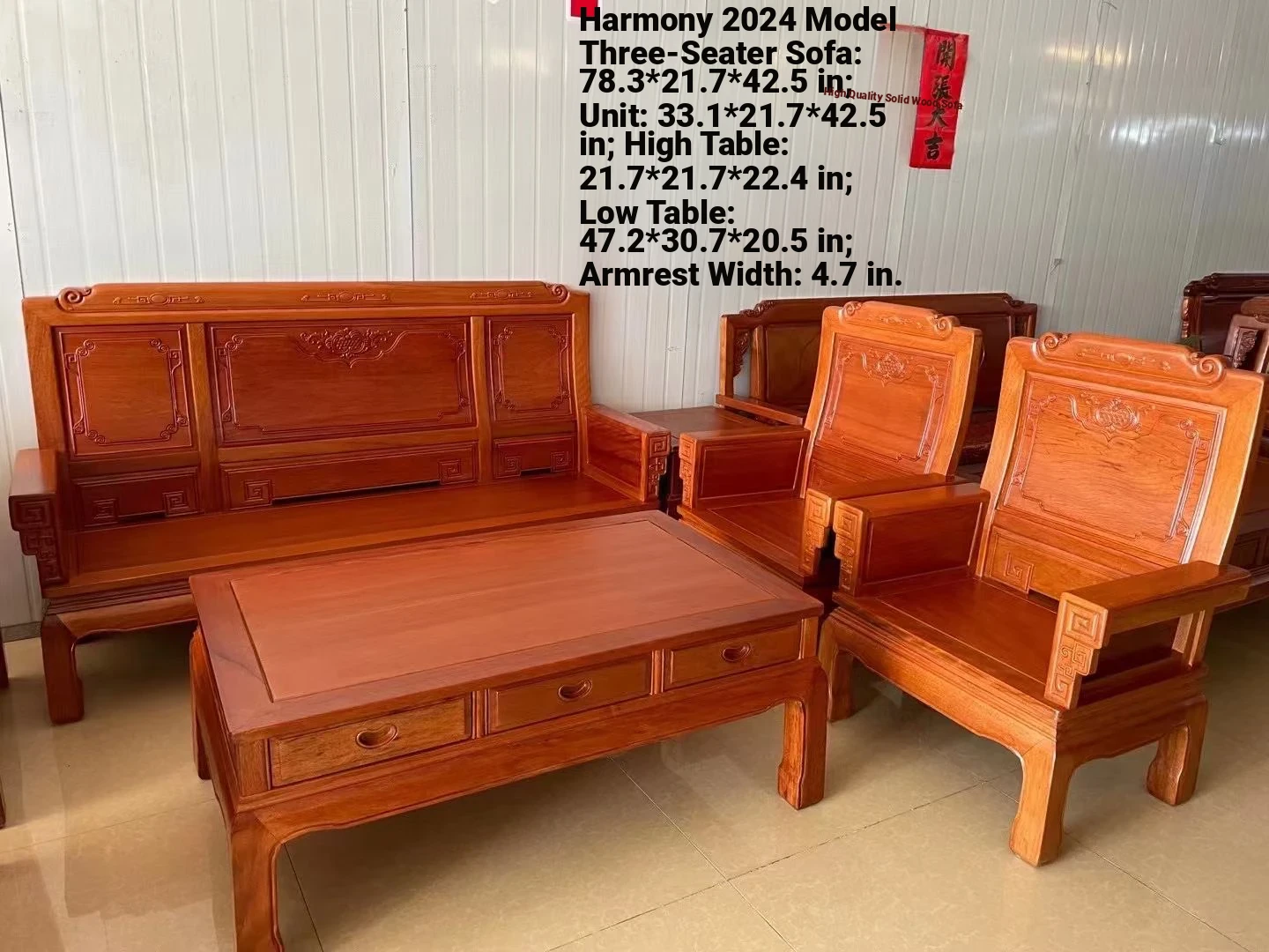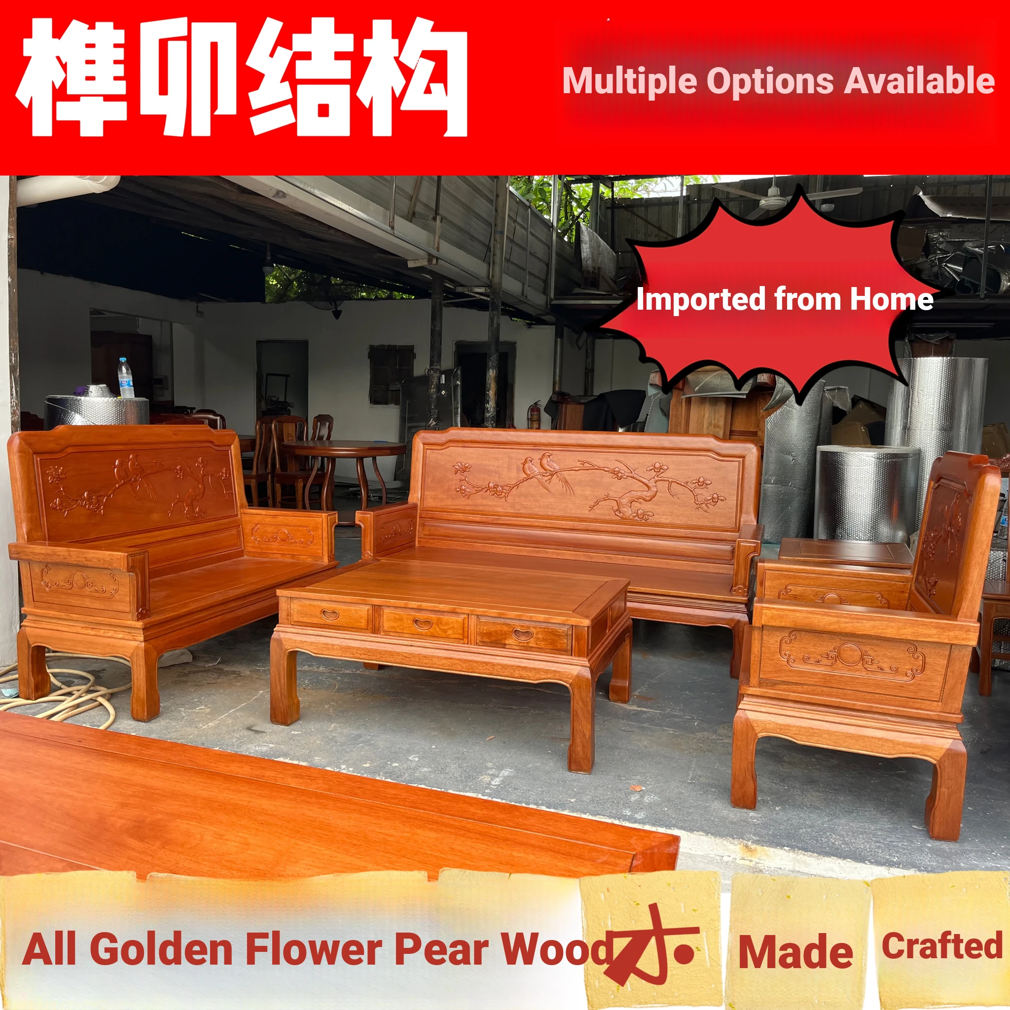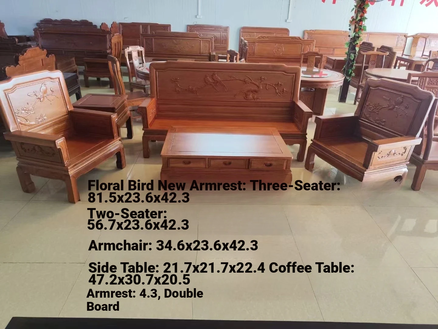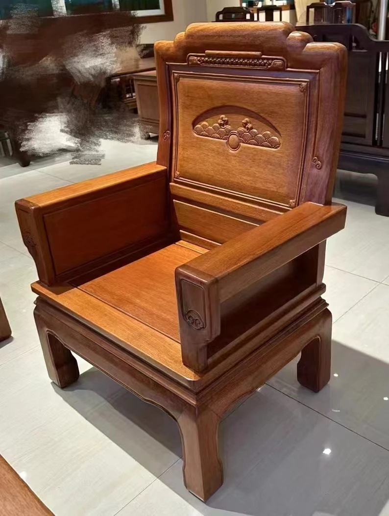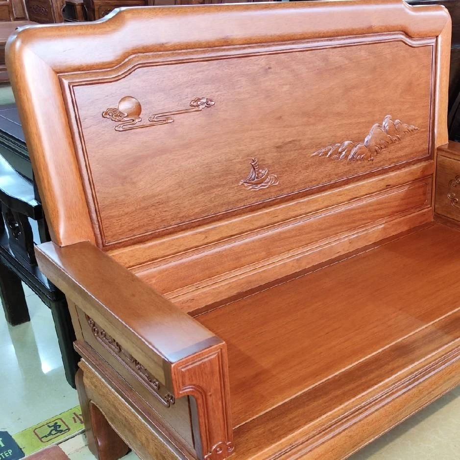 Antique-Style Solid Wood Sofa Set in Huanghuali and African Pineapple Wood - Premium Quality, Removable Design, Direct Manufacturer Sale with Free Shipping!
