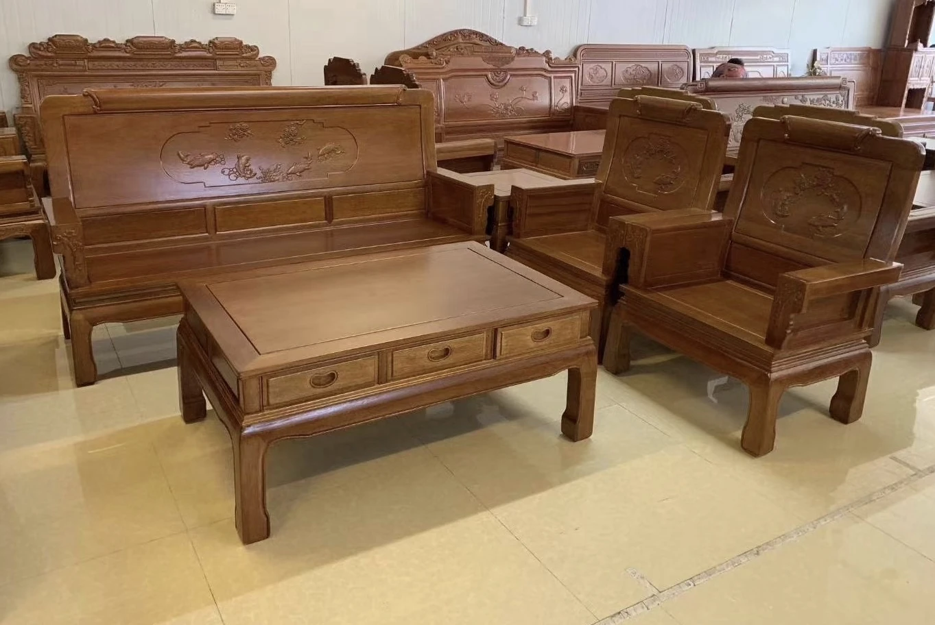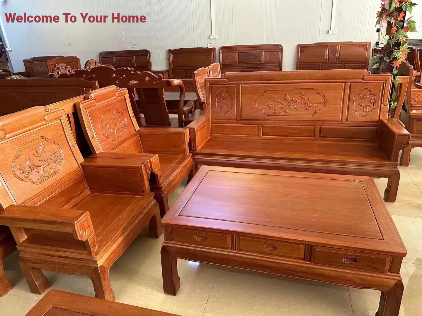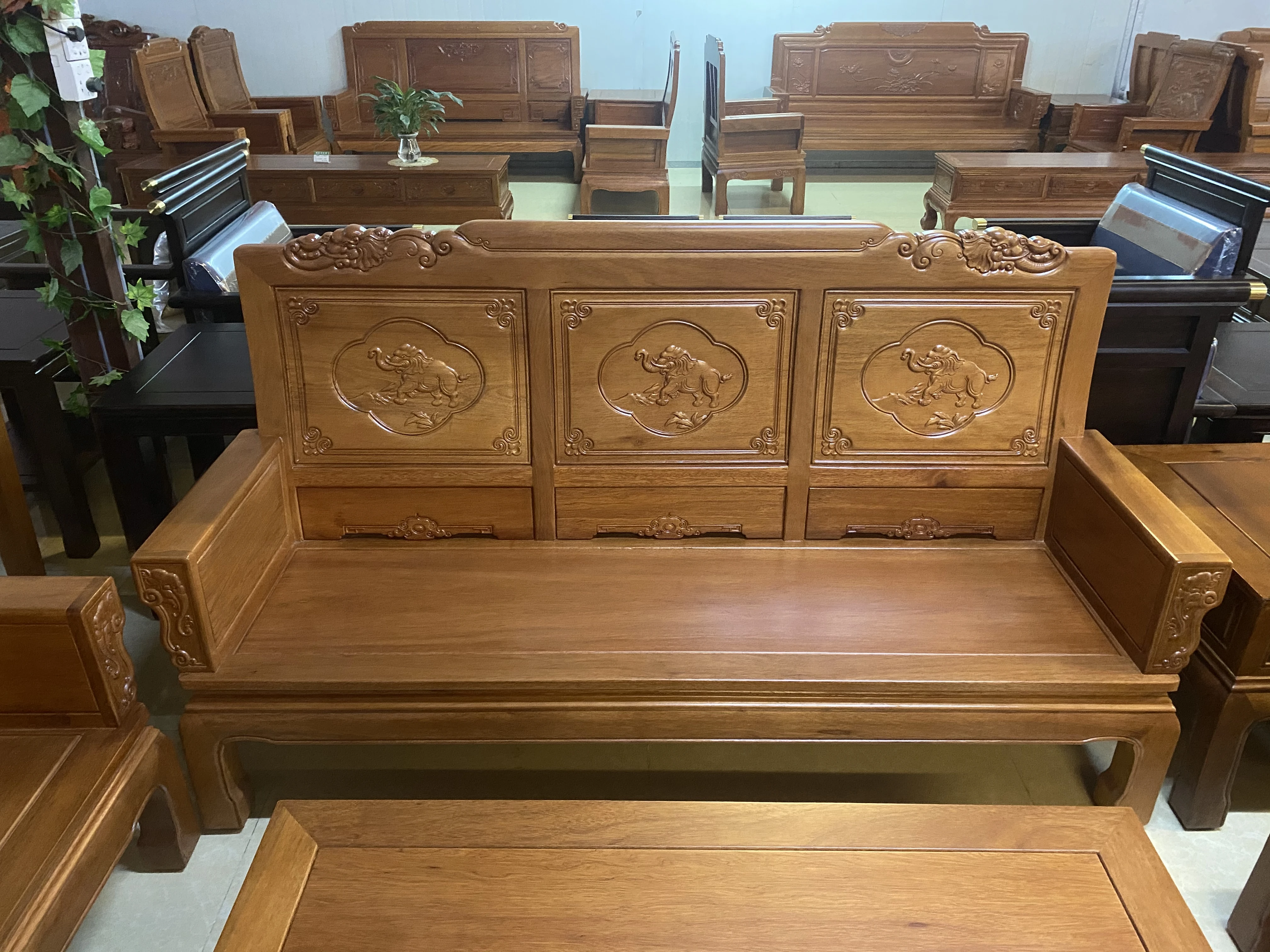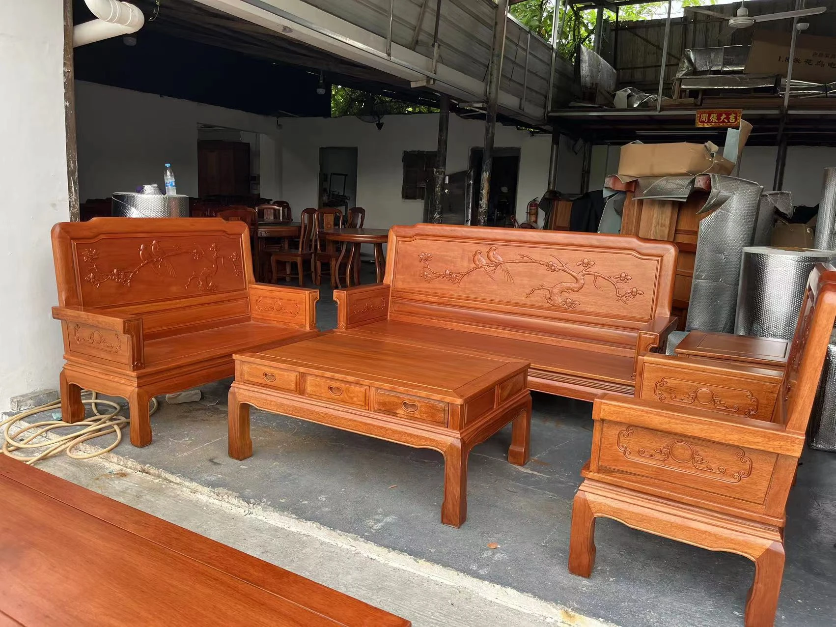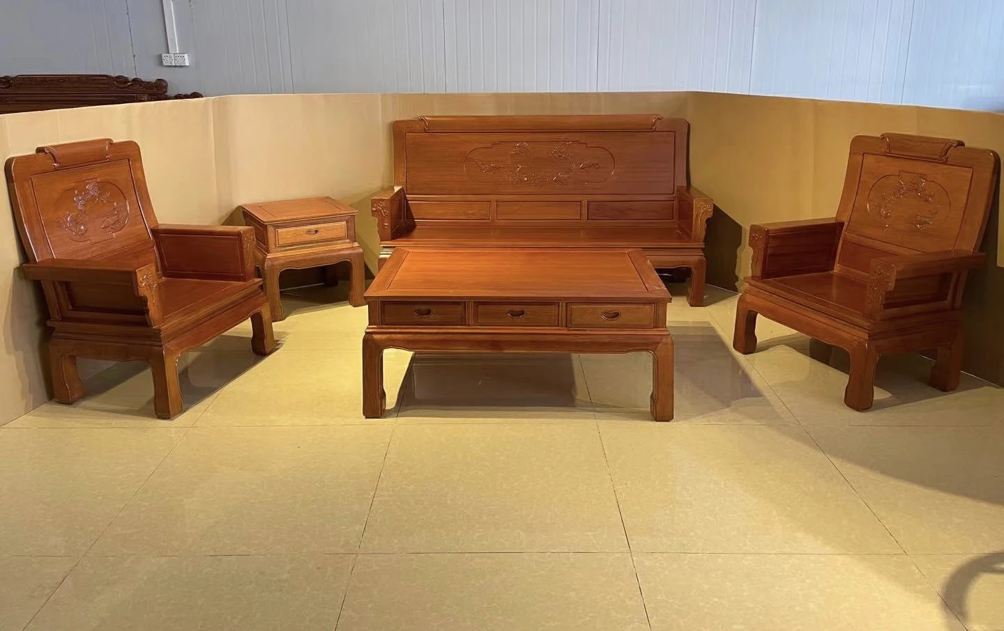 Antique-Style Solid Wood Sofa Set in Huanghuali and African Pineapple Wood - Premium Quality, Removable Design, Direct Manufacturer Sale with Free Shipping!