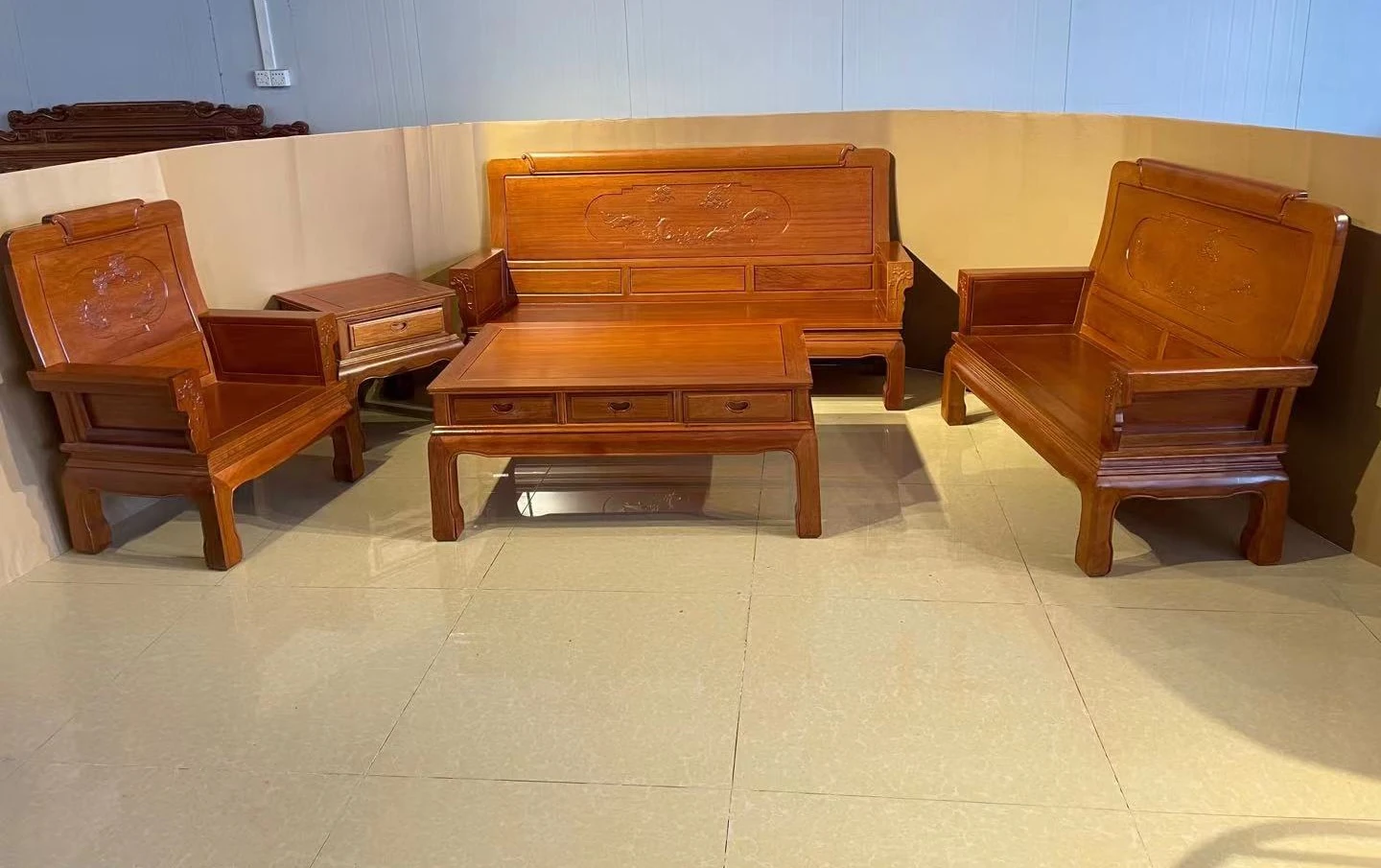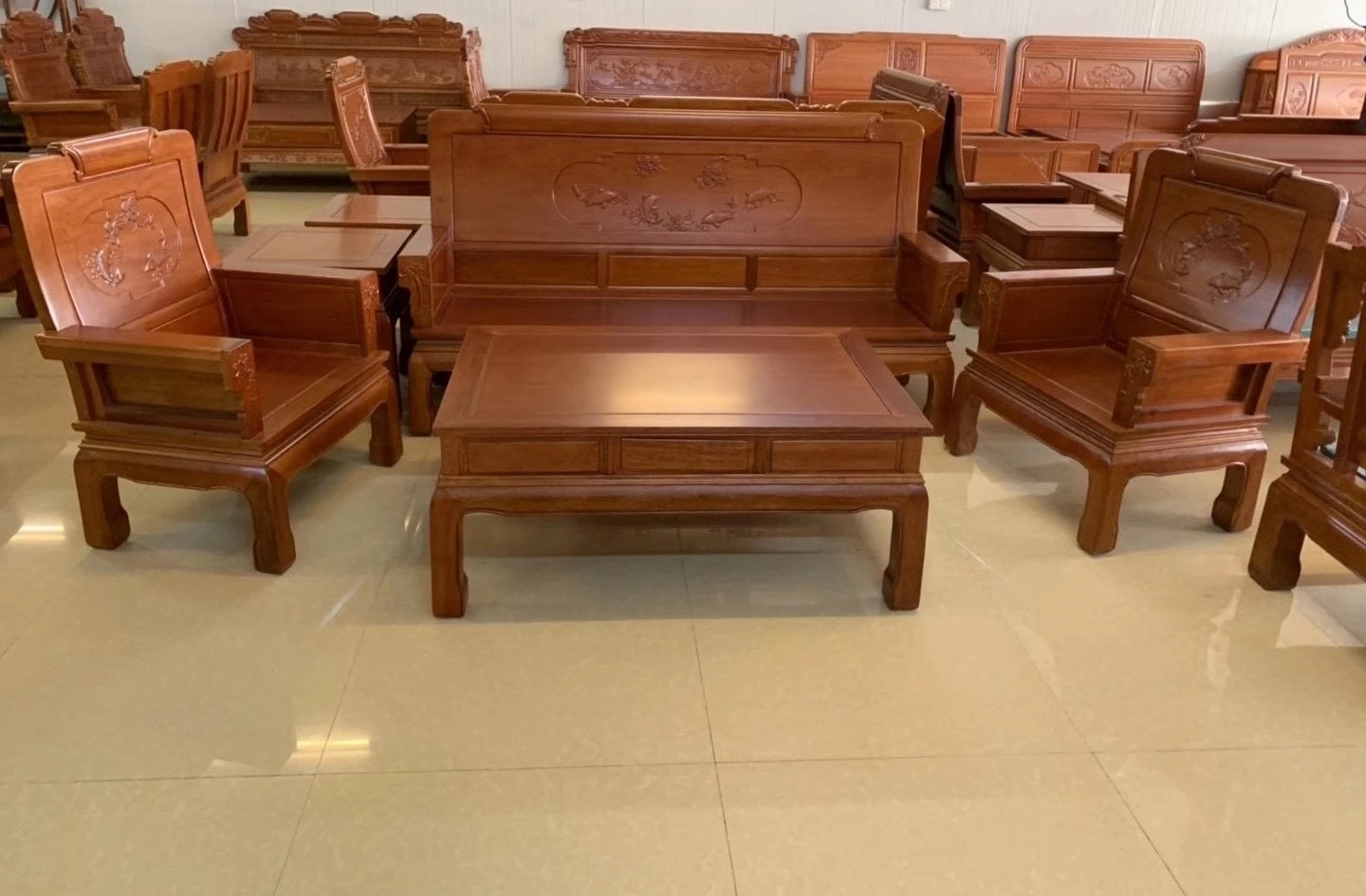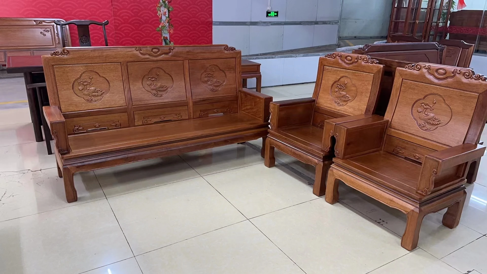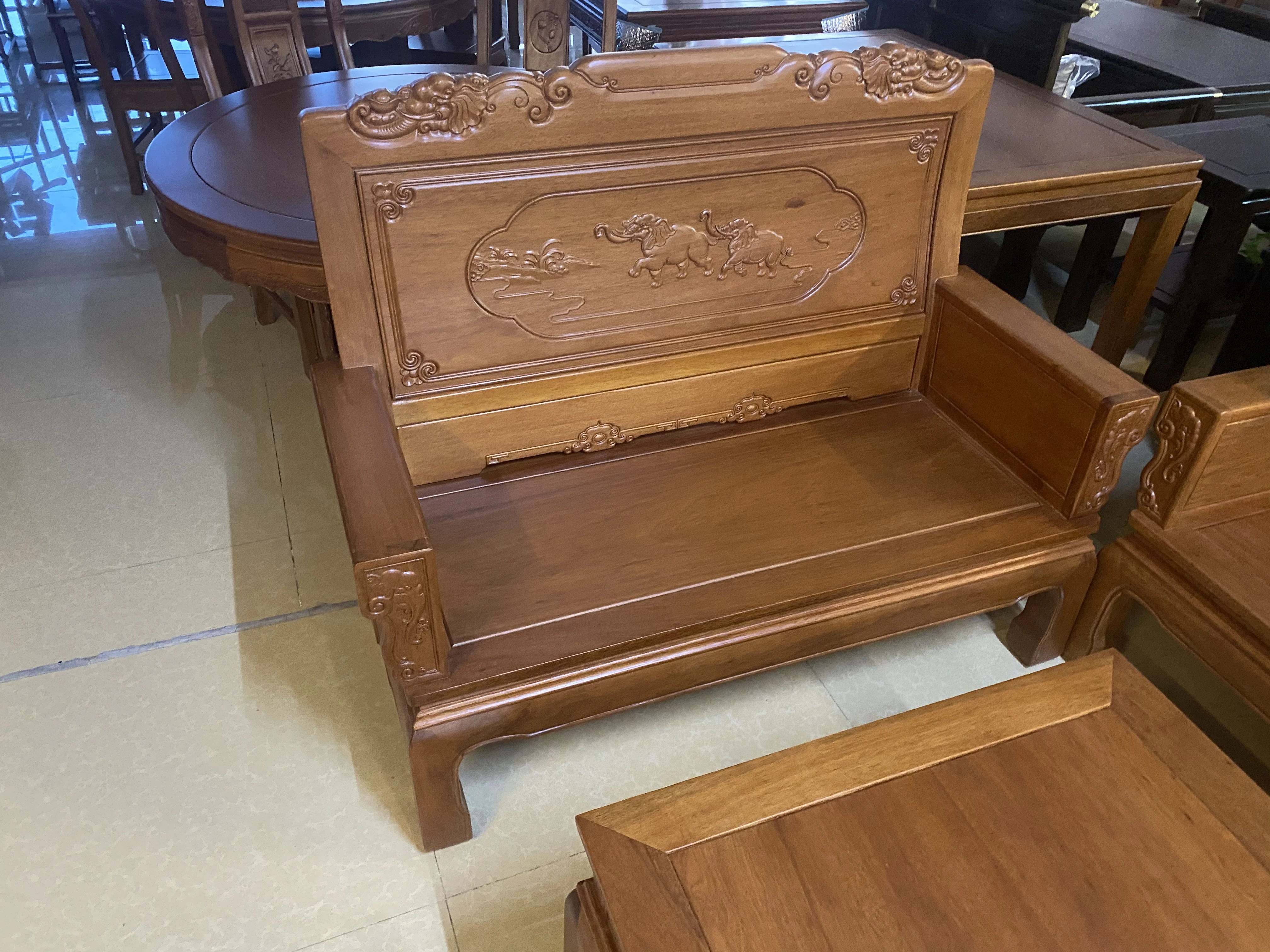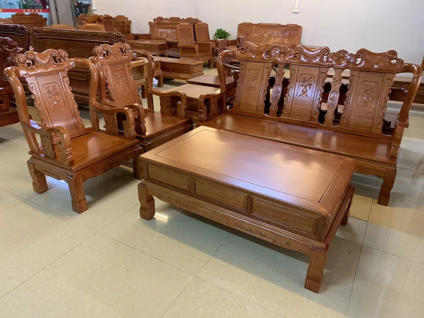 Antique-Style Solid Wood Sofa Set in Huanghuali and African Pineapple Wood - Premium Quality, Removable Design, Direct Manufacturer Sale with Free Shipping!