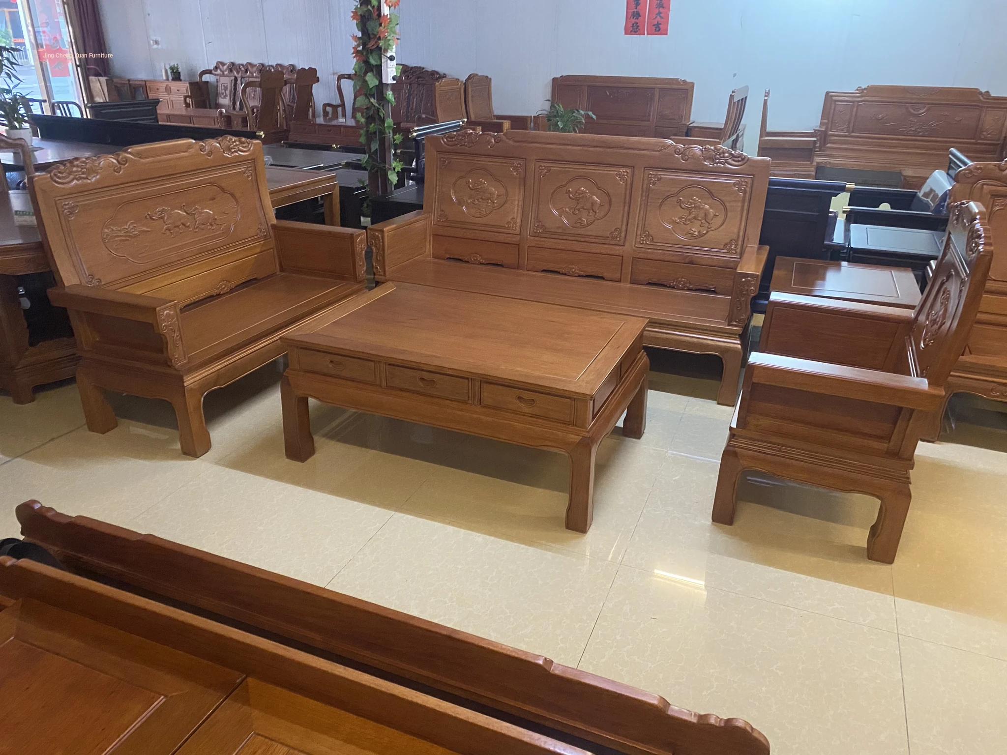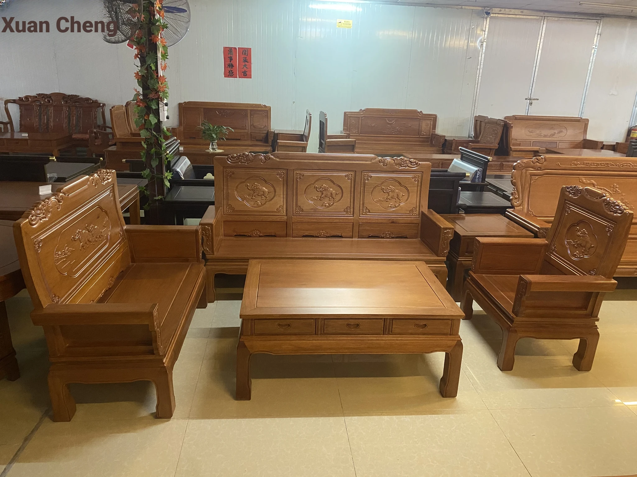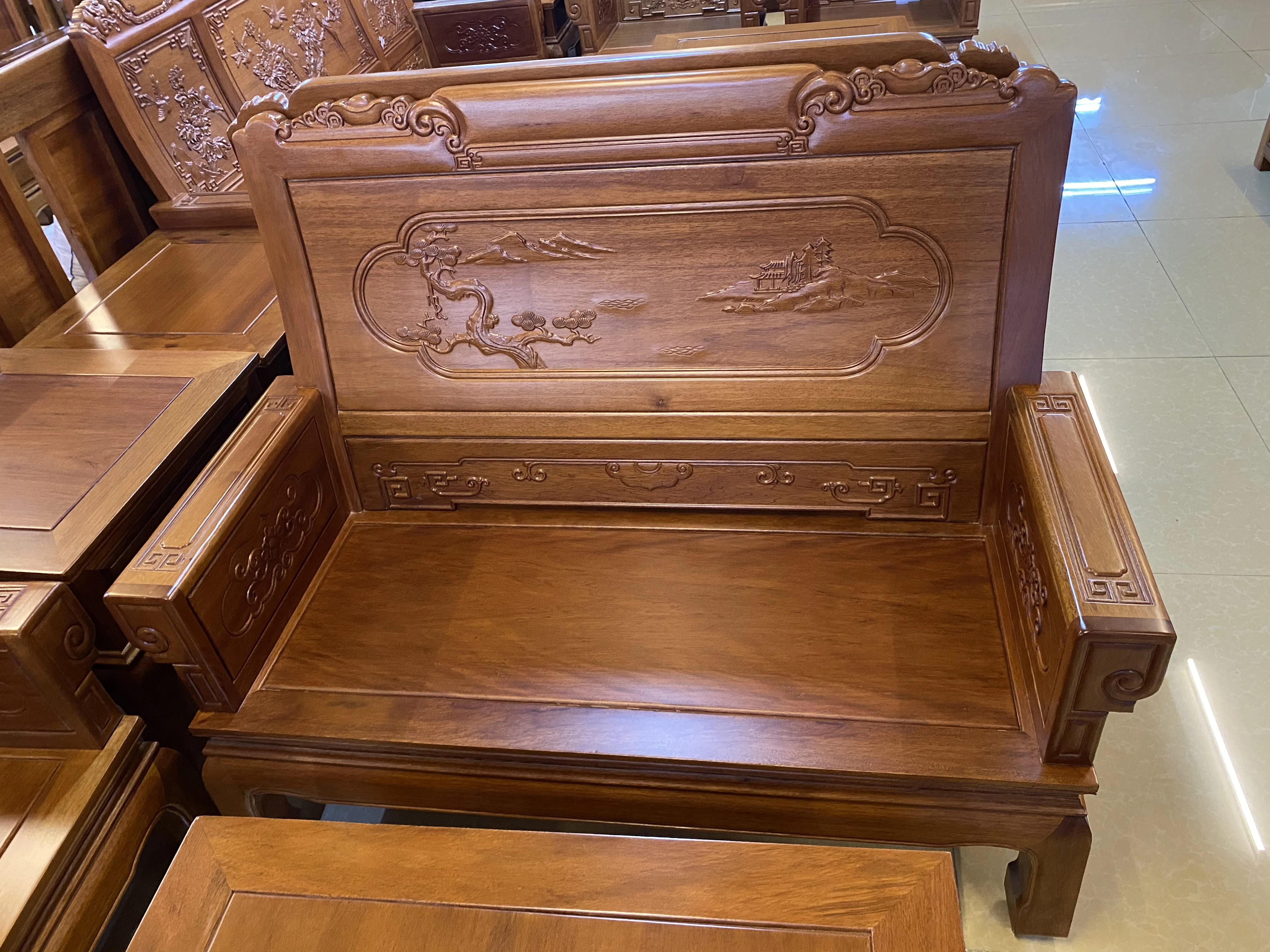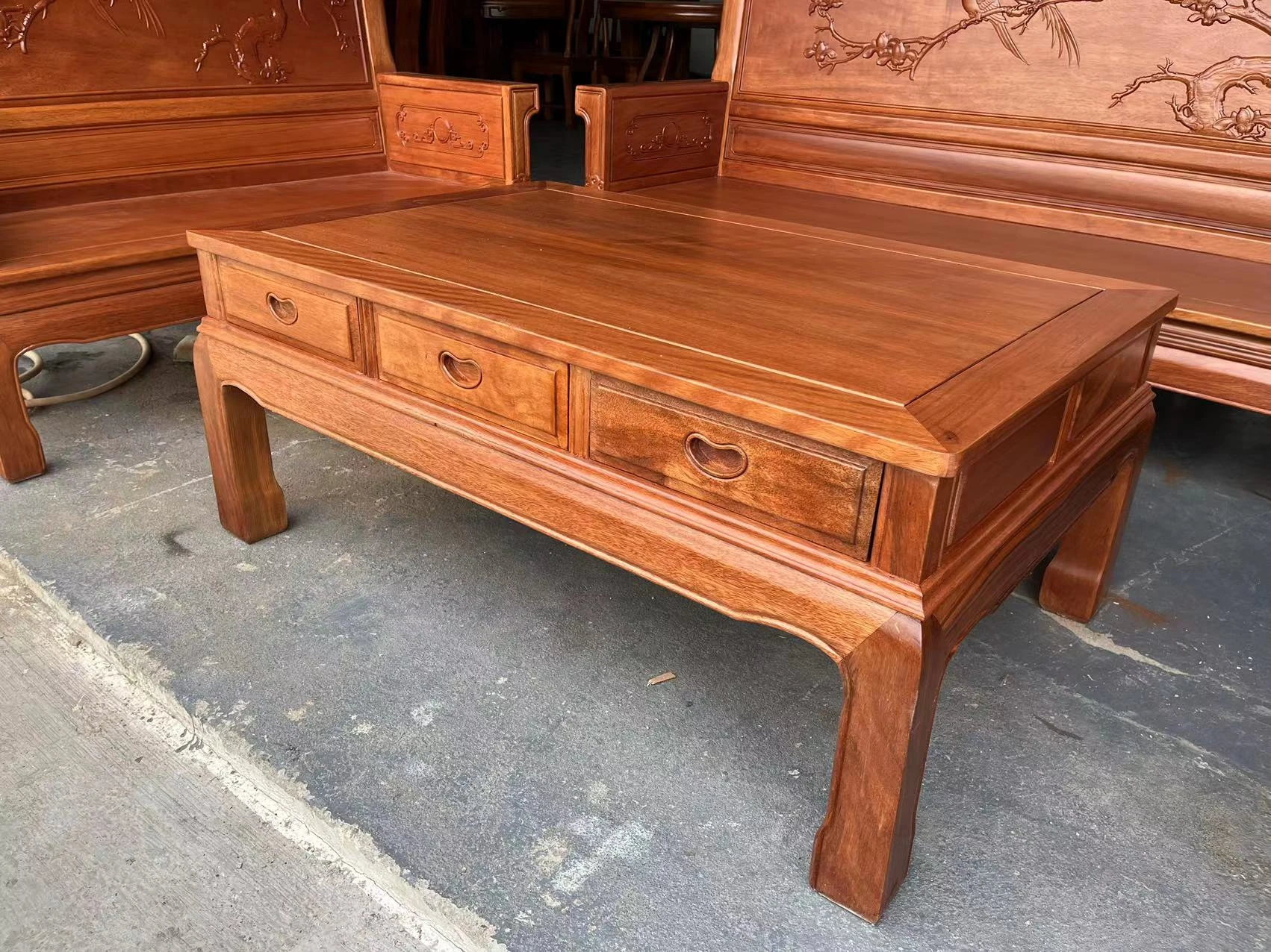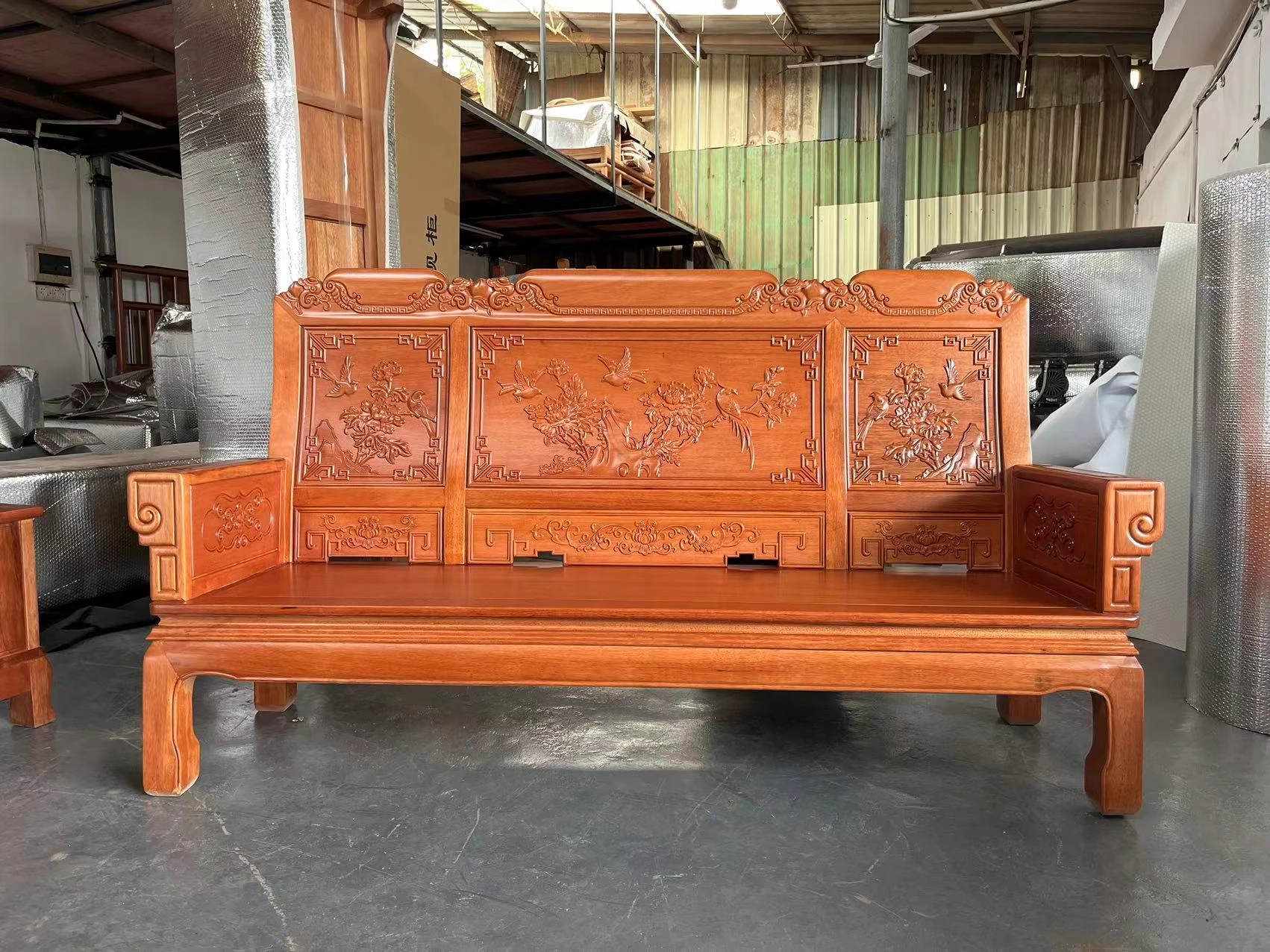 Antique-Style Solid Wood Sofa Set in Huanghuali and African Pineapple Wood - Premium Quality, Removable Design, Direct Manufacturer Sale with Free Shipping!