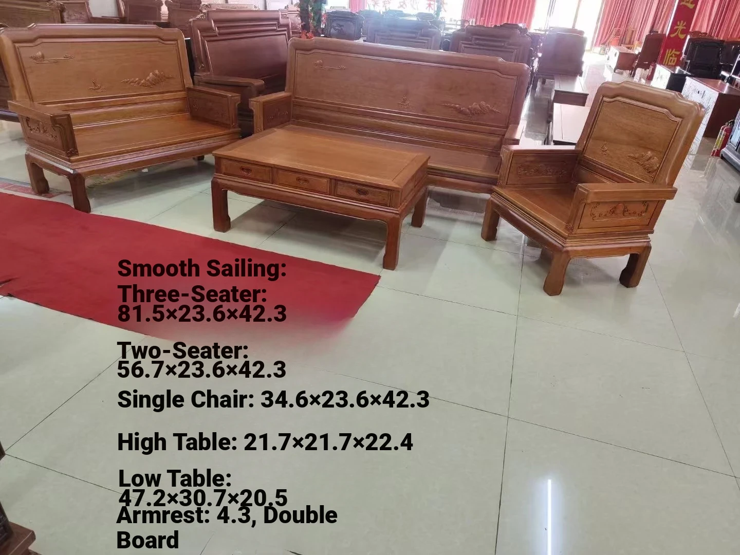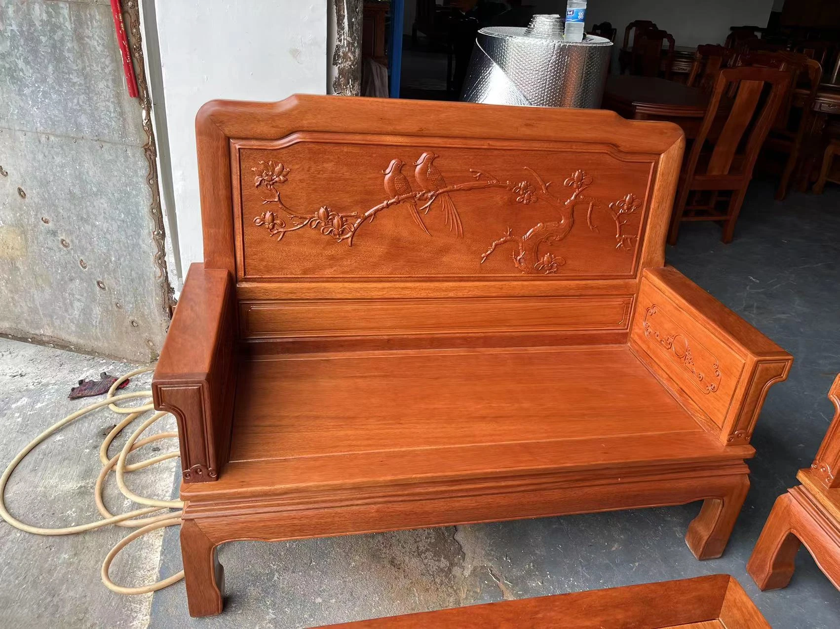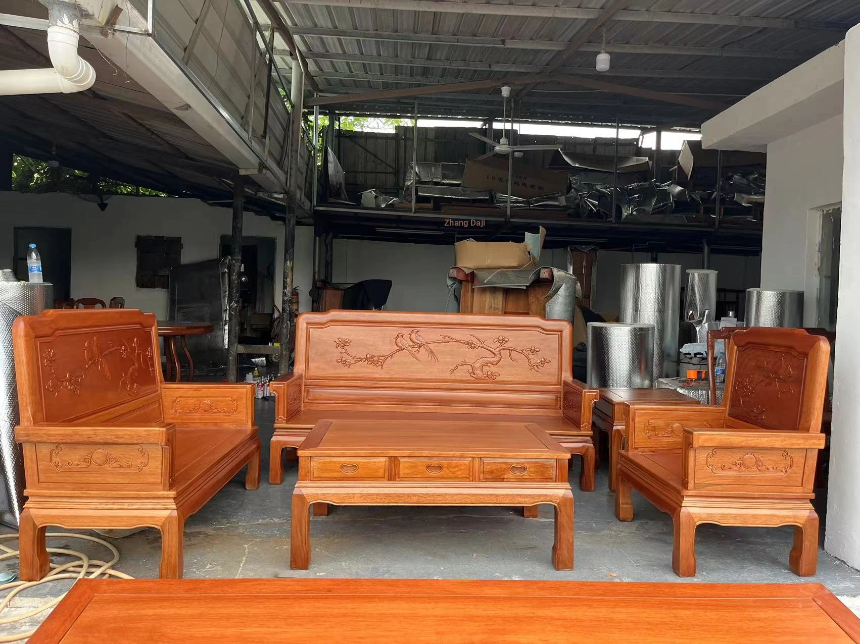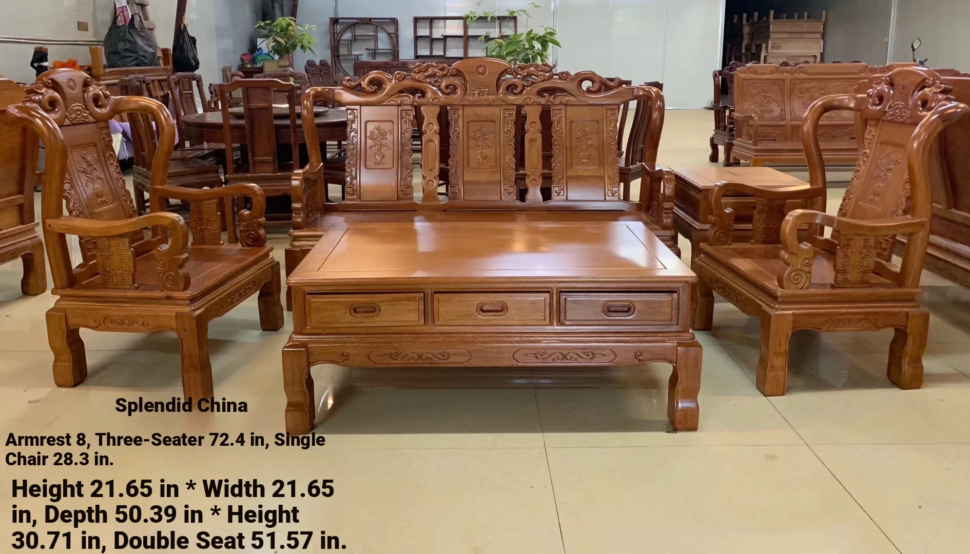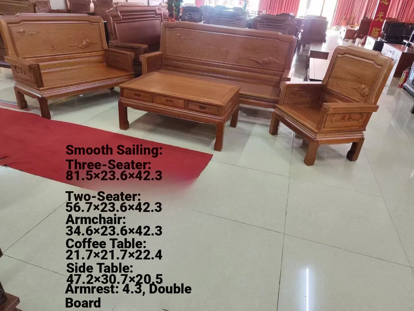 Antique-Style Solid Wood Sofa Set in Huanghuali and African Pineapple Wood - Premium Quality, Removable Design, Direct Manufacturer Sale with Free Shipping!