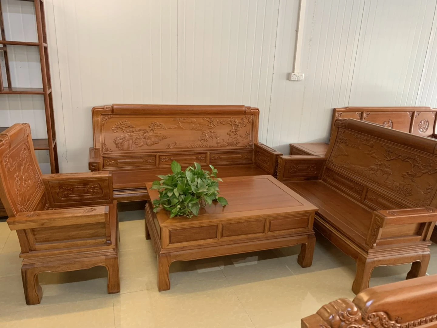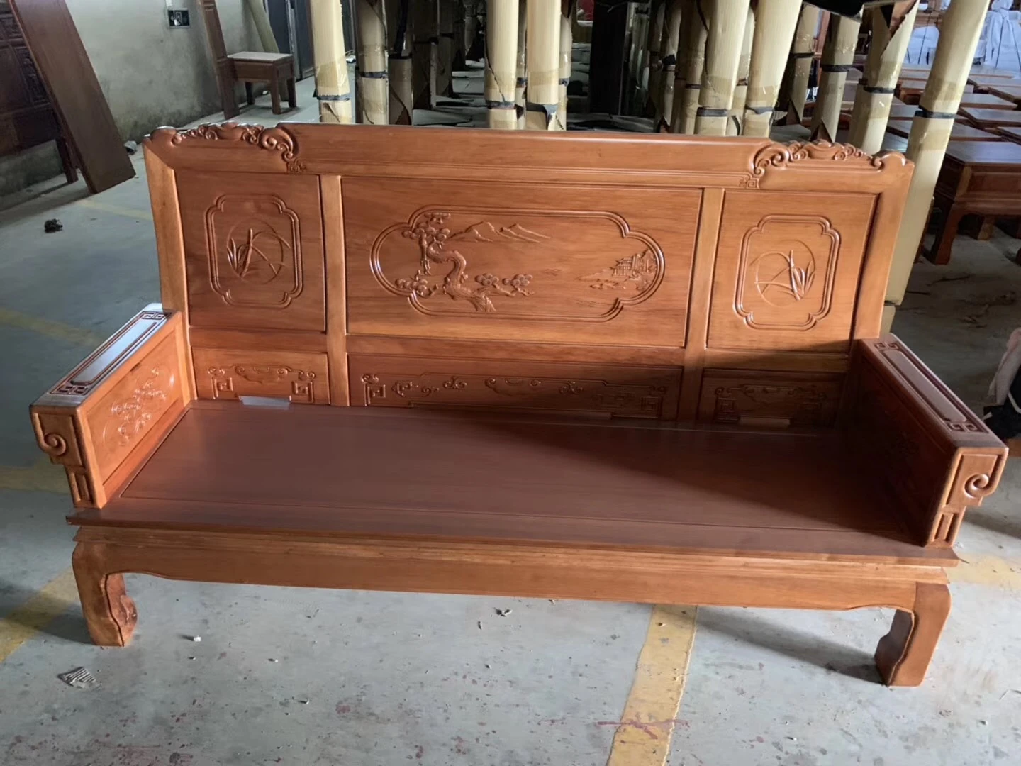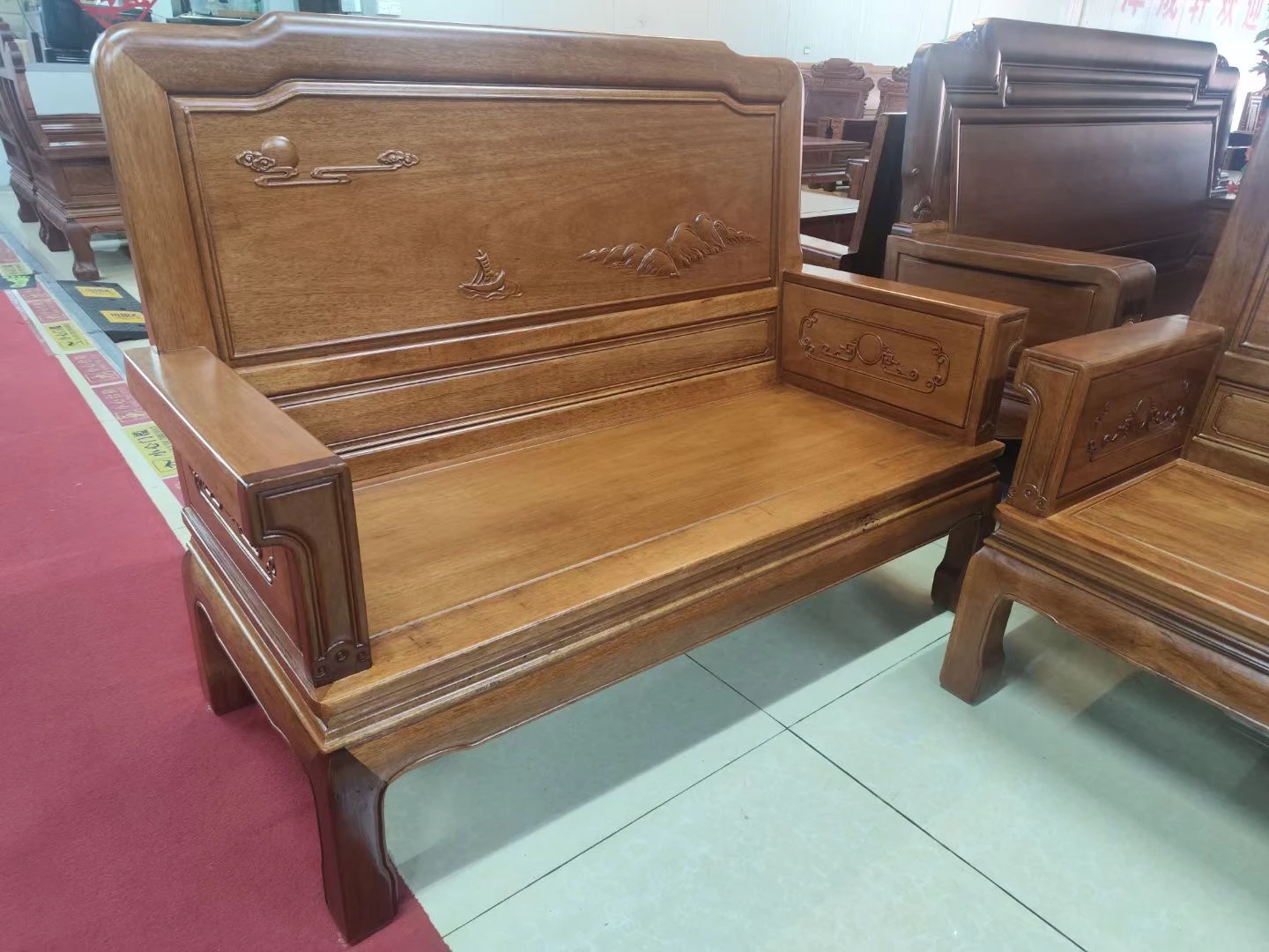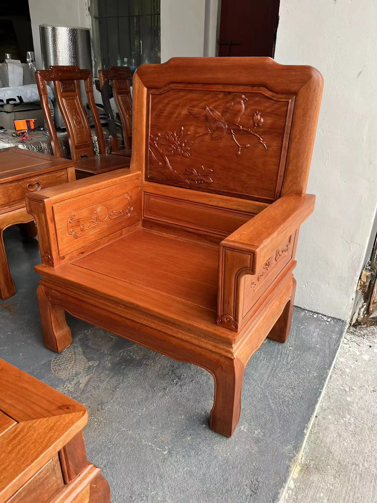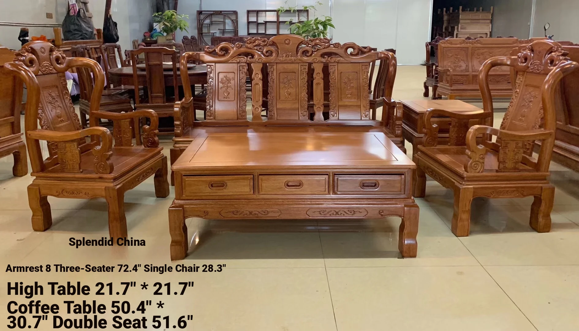 Antique-Style Solid Wood Sofa Set in Huanghuali and African Pineapple Wood - Premium Quality, Removable Design, Direct Manufacturer Sale with Free Shipping!