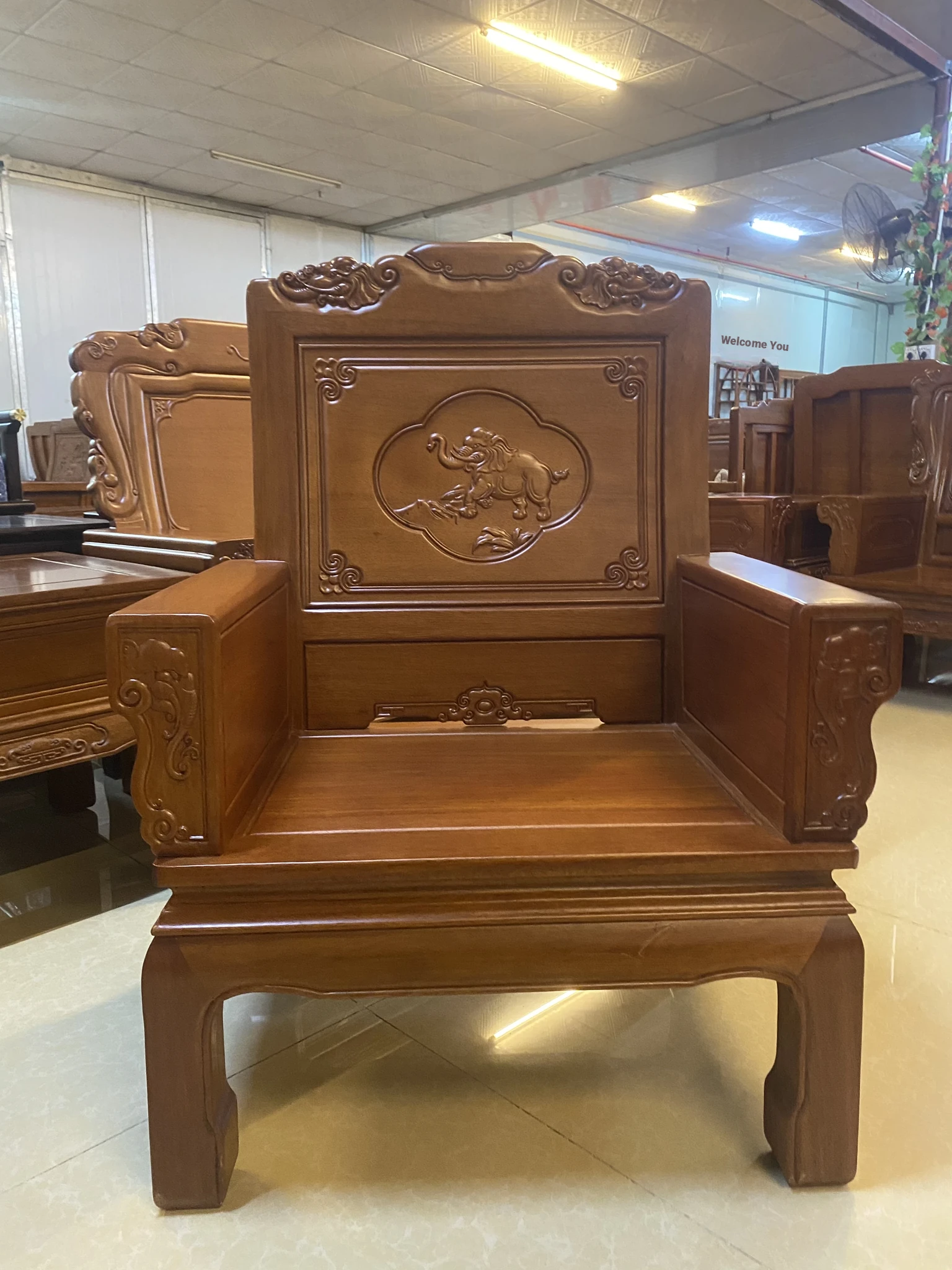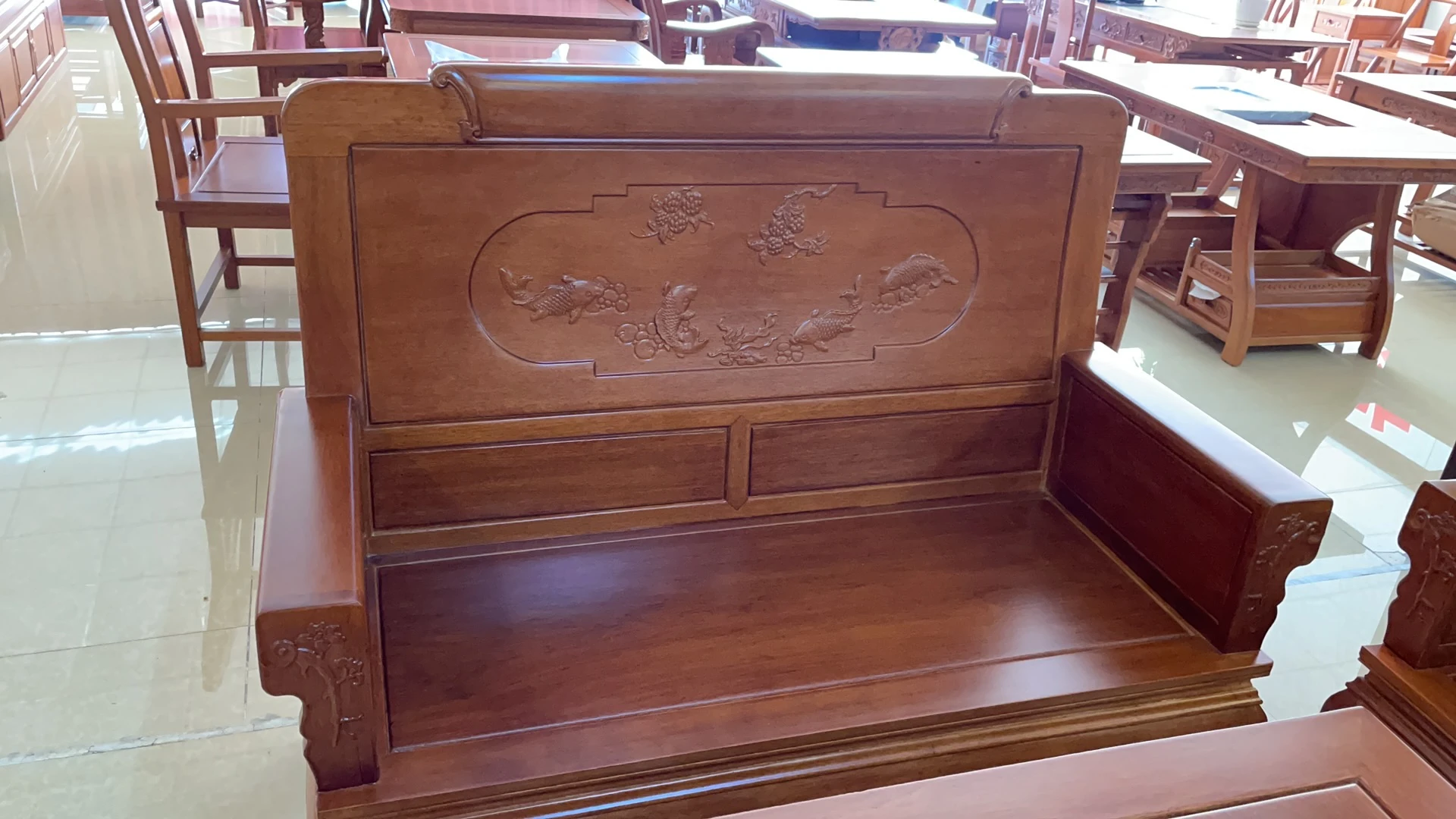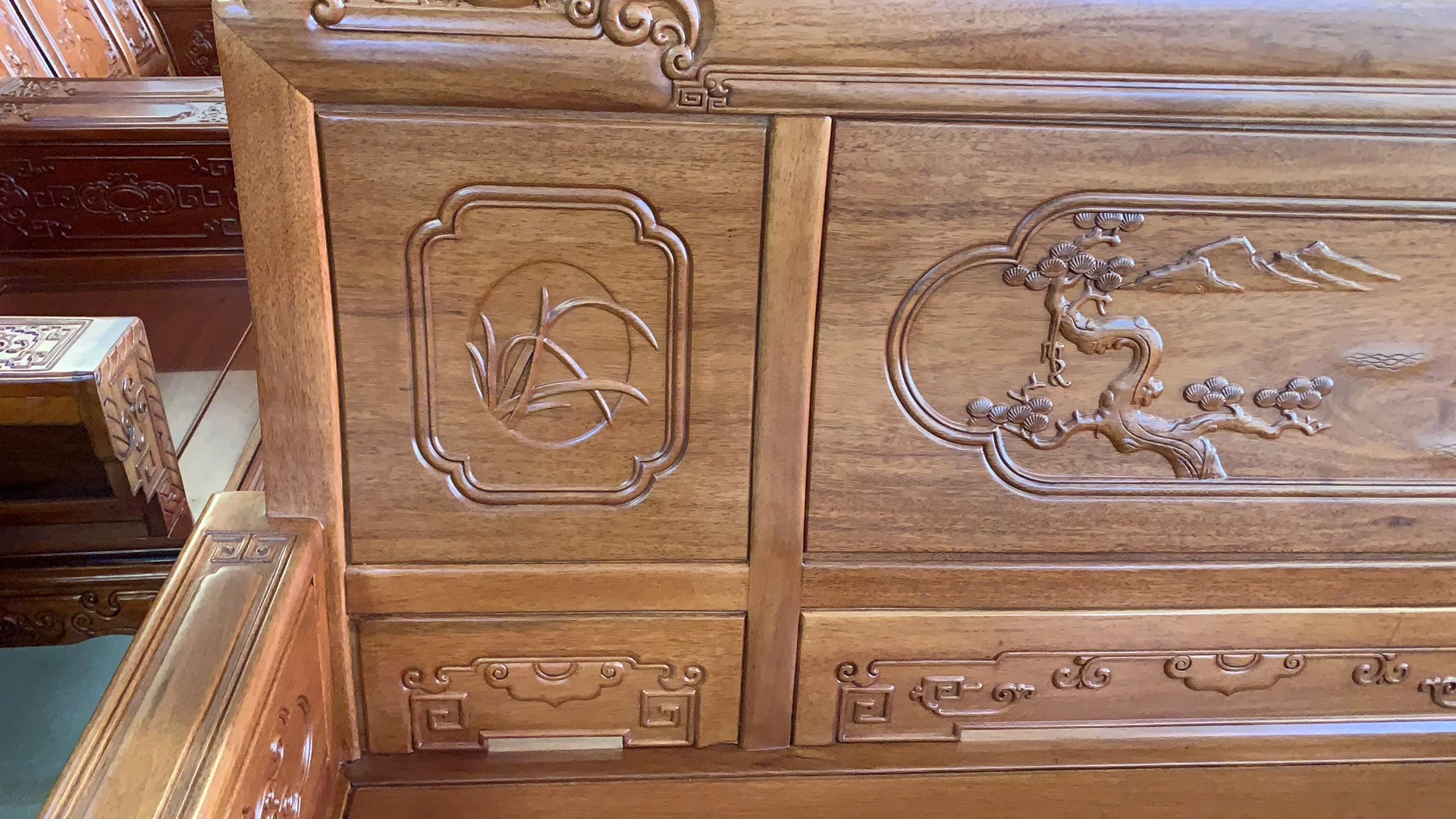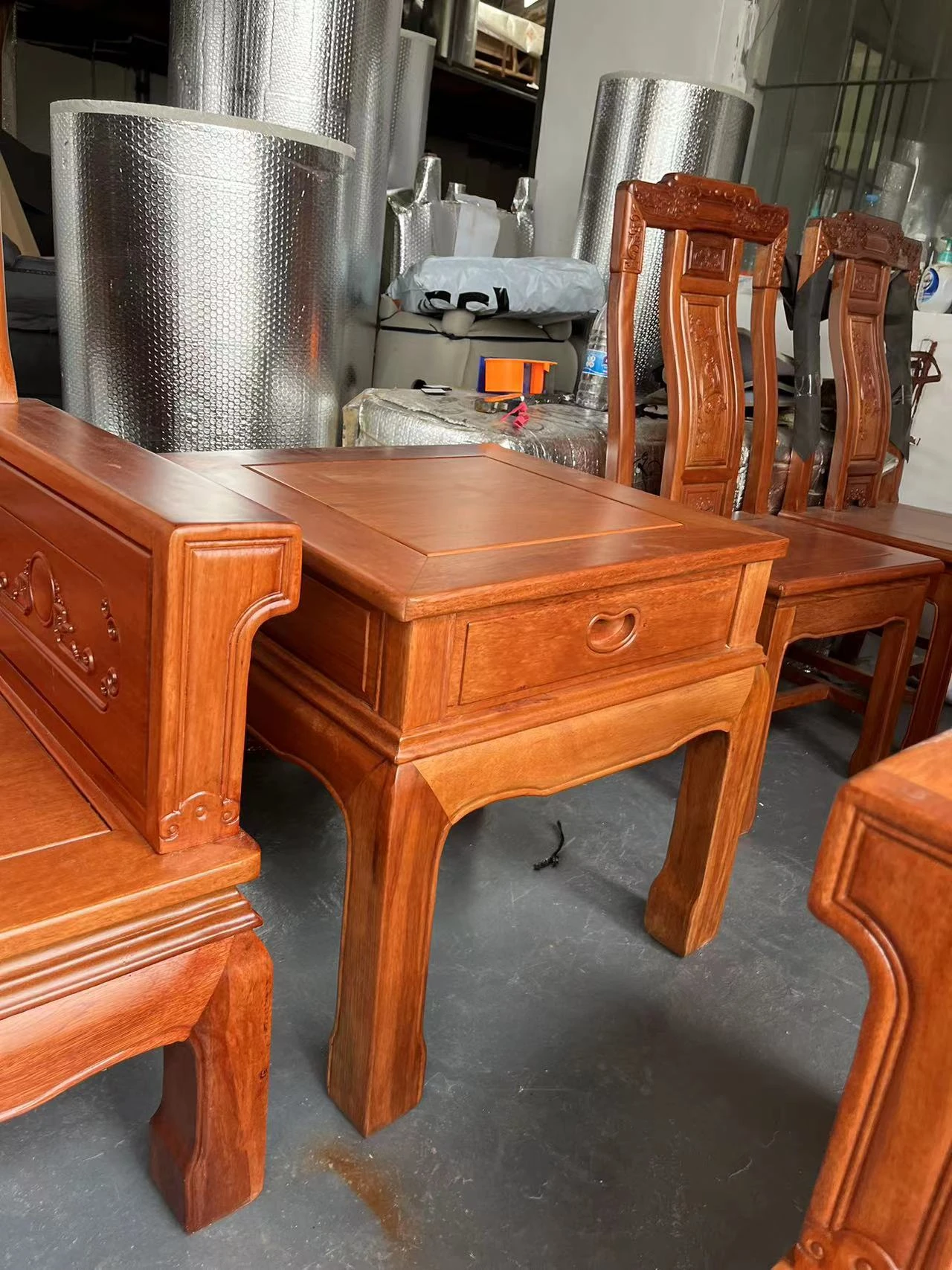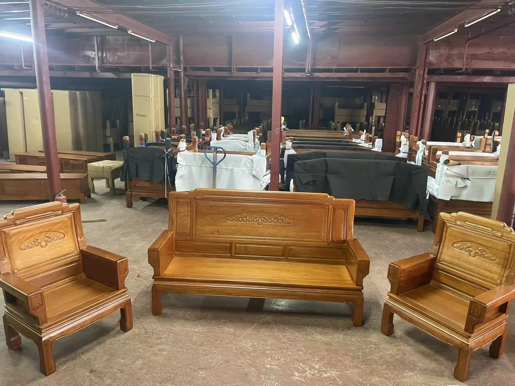 Antique-Style Solid Wood Sofa Set in Huanghuali and African Pineapple Wood - Premium Quality, Removable Design, Direct Manufacturer Sale with Free Shipping!
