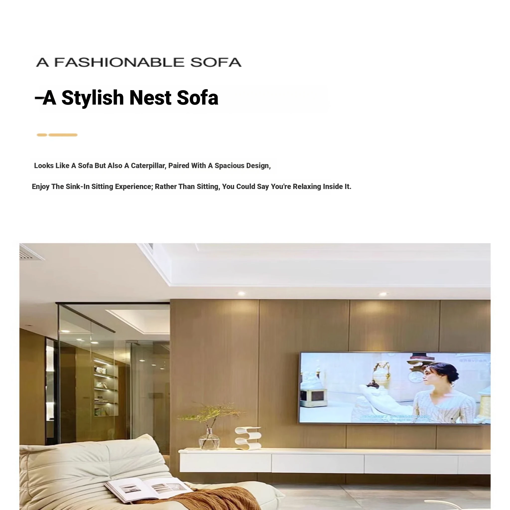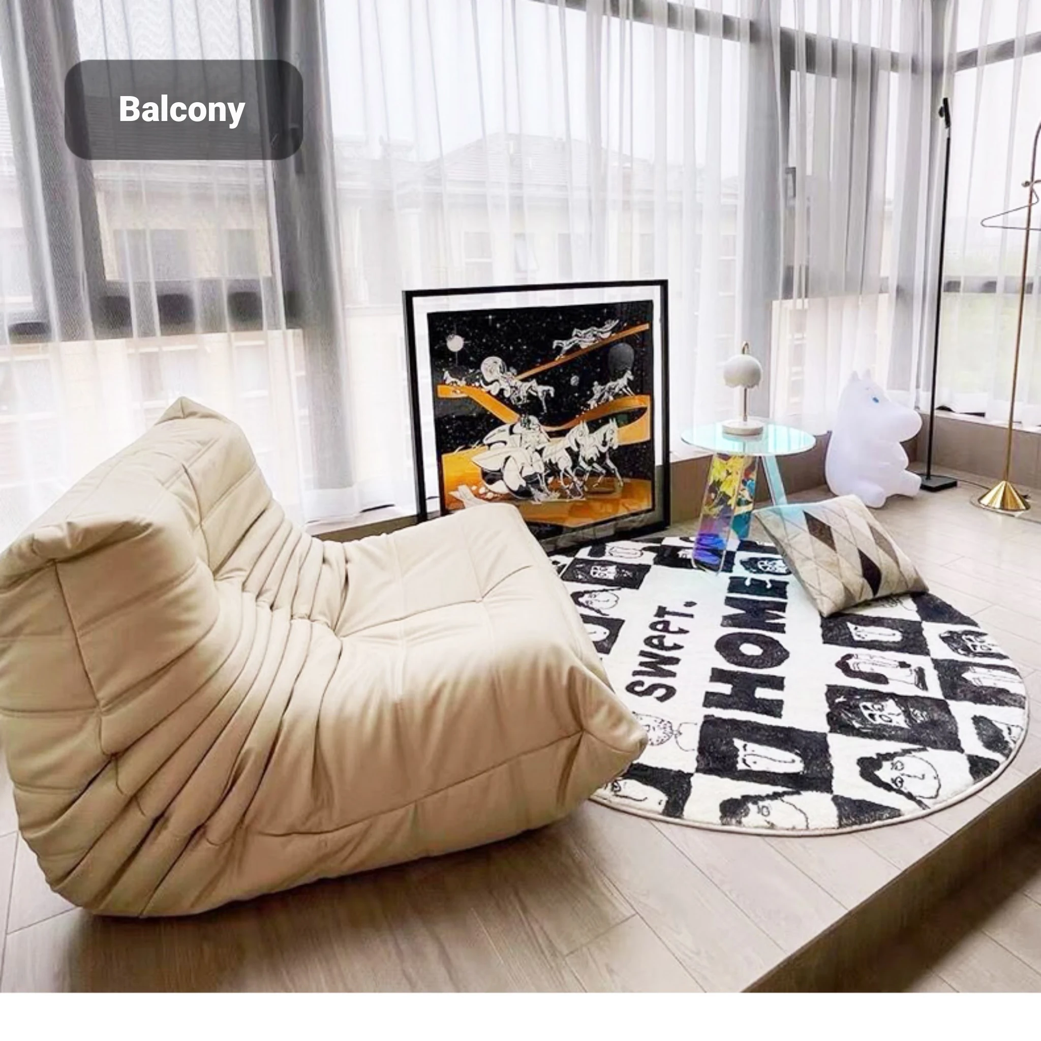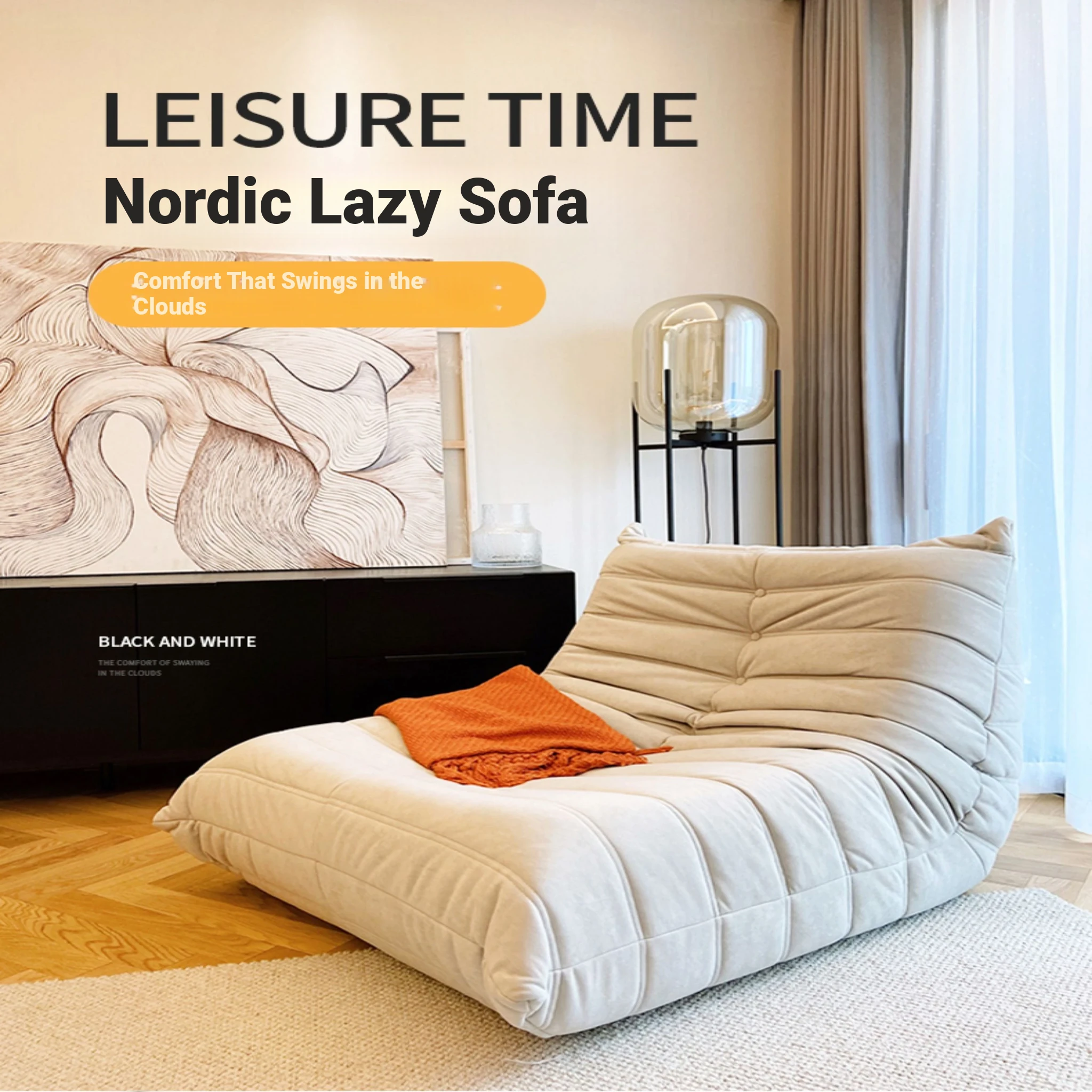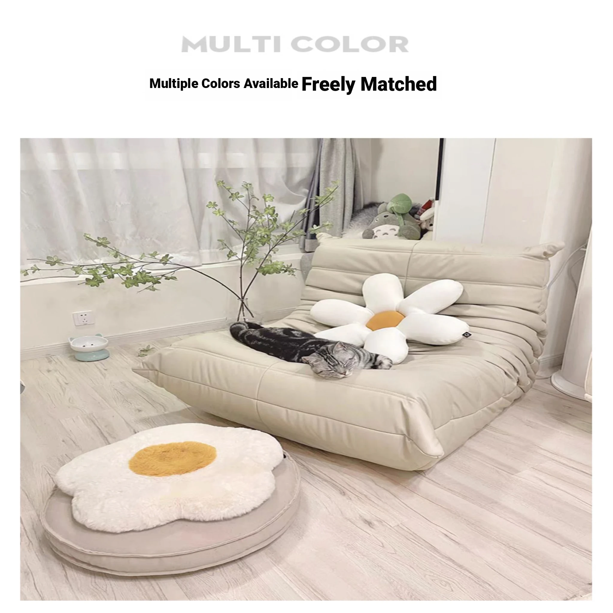 Cozy Caterpillar Lounge Chair - Versatile Sofa for Living Room and Balcony, Perfect for Relaxing or Napping, Creamy Style, Ideal for Tatami Spaces, Trendy Single Seat for Ultimate Comfort