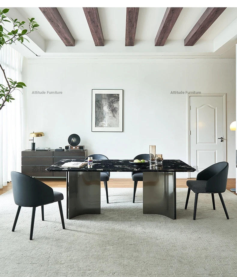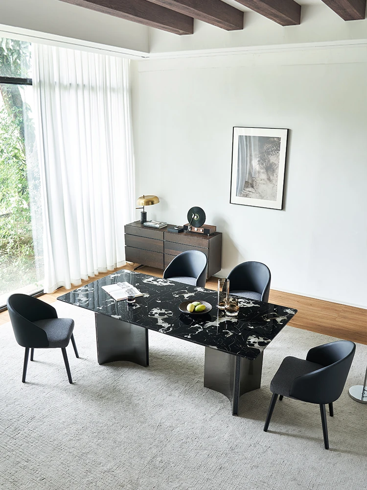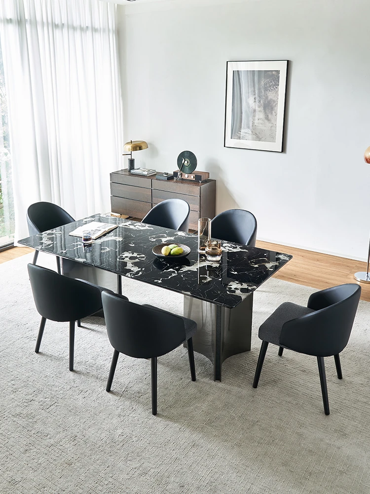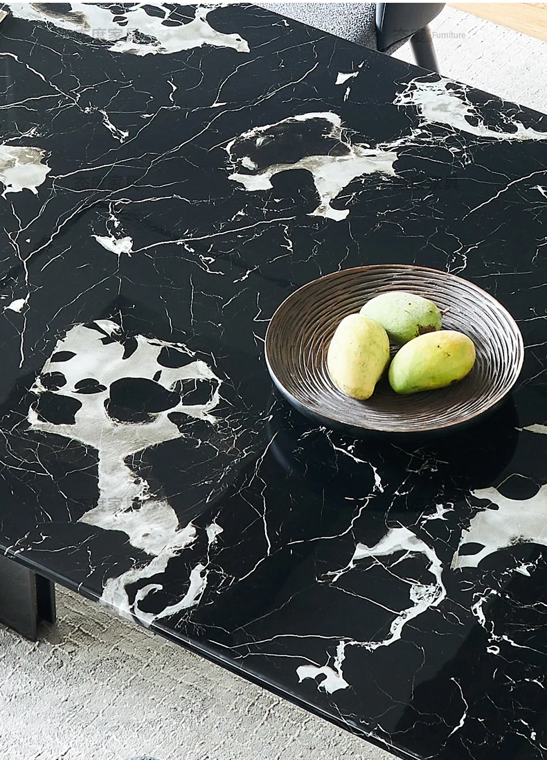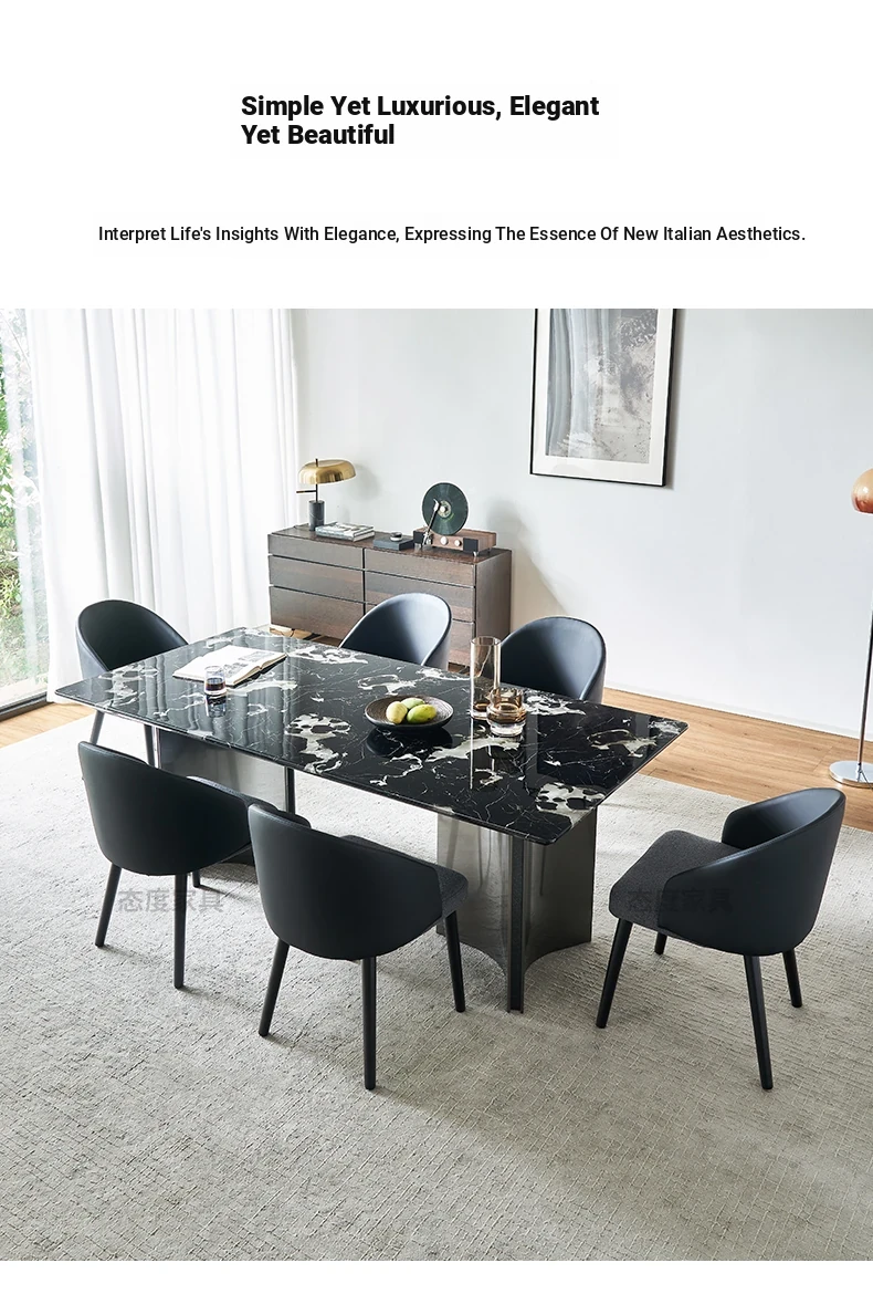 Elegant Black Rose Marble Dining Table Set - Premium Italian Minimalist Rectangular Design for Small Spaces, Perfect for Home Use