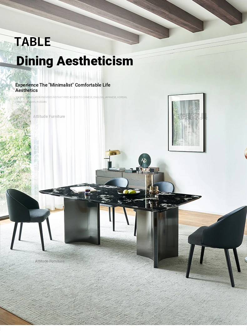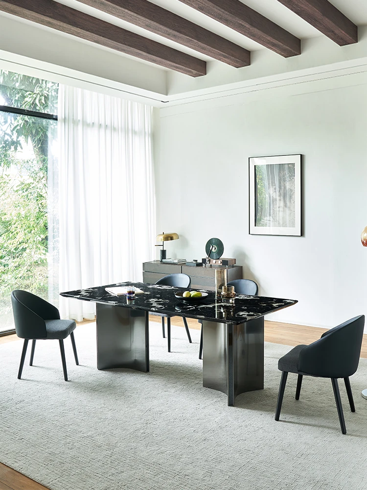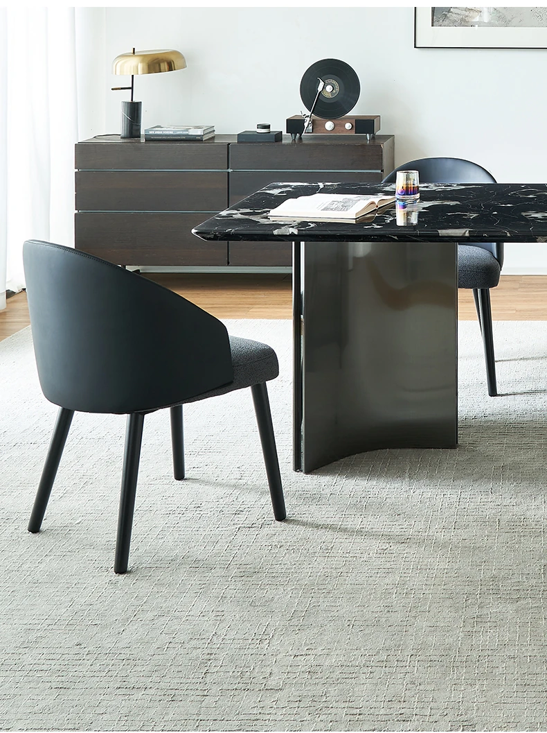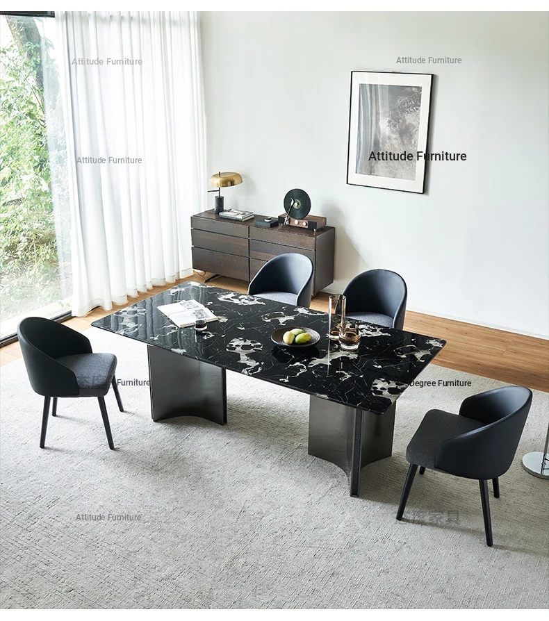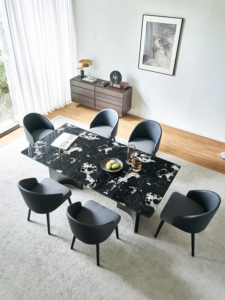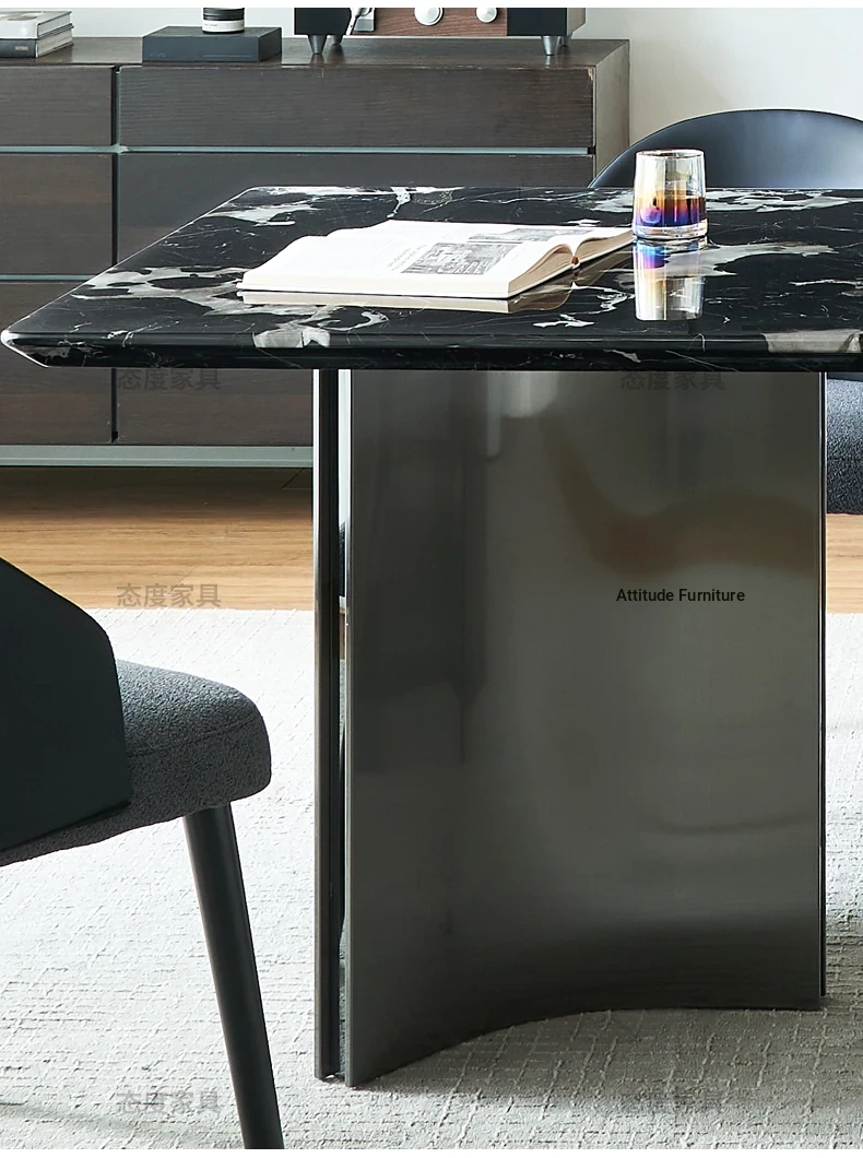 Elegant Black Rose Marble Dining Table Set - Premium Italian Minimalist Rectangular Design for Small Spaces, Perfect for Home Use