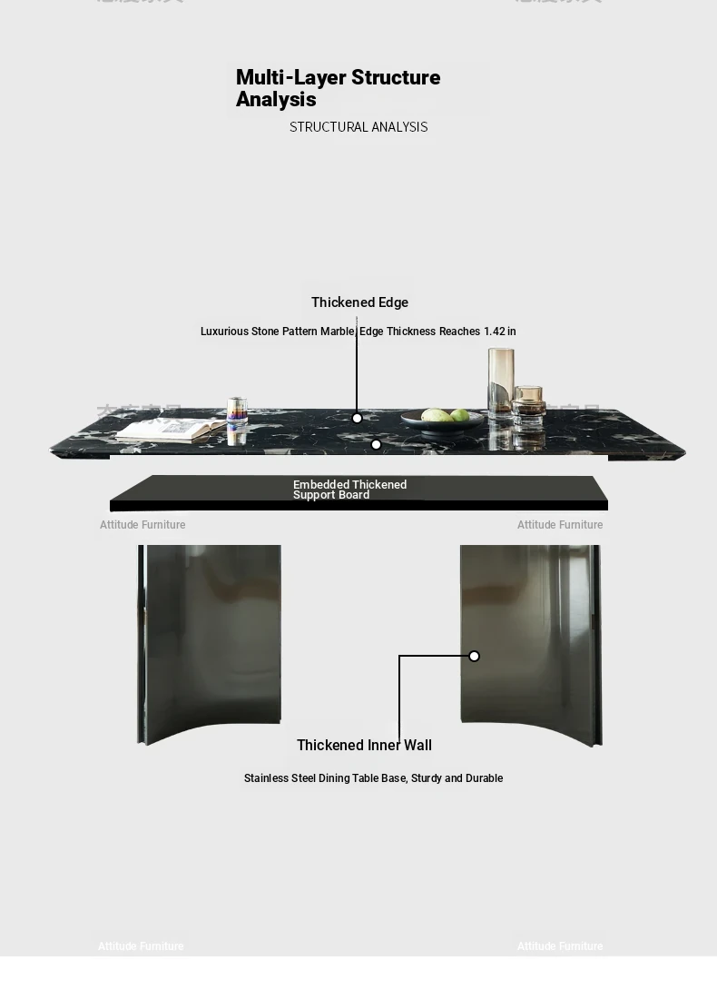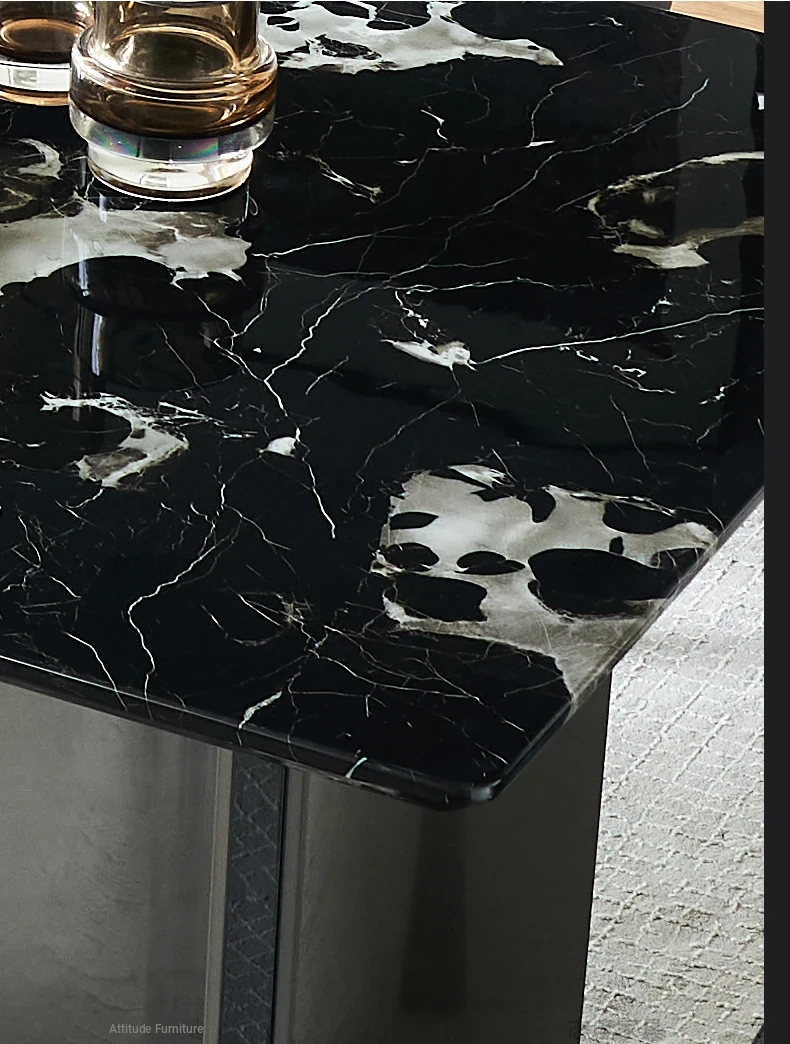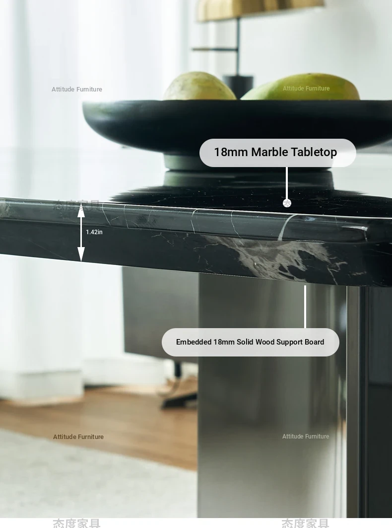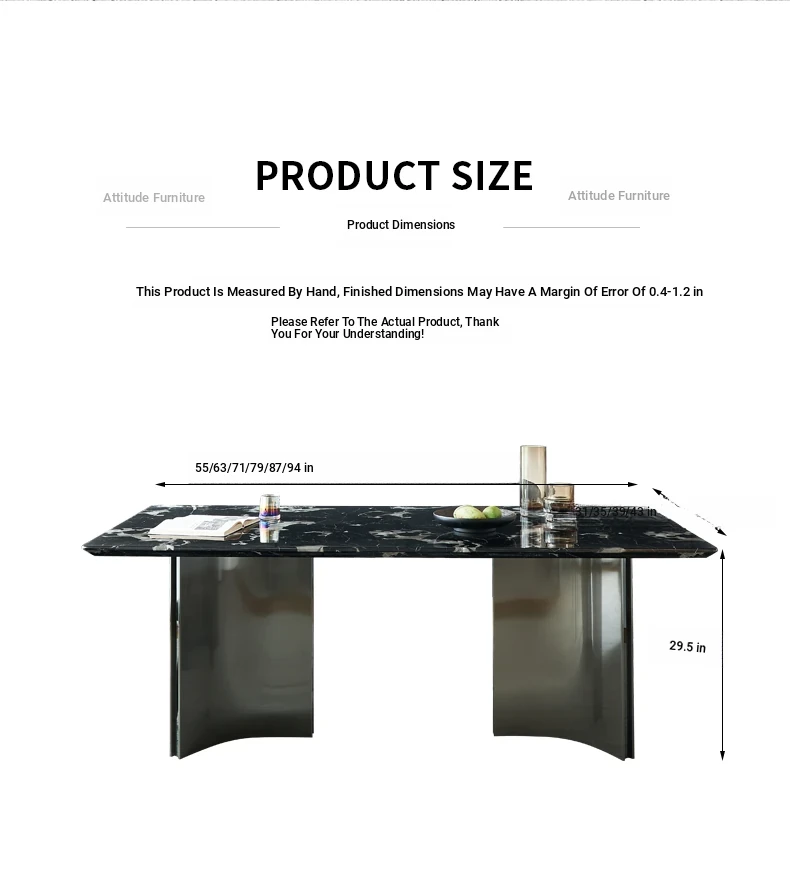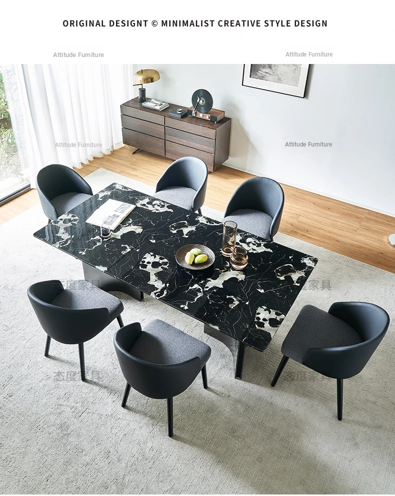 Elegant Black Rose Marble Dining Table Set - Premium Italian Minimalist Rectangular Design for Small Spaces, Perfect for Home Use