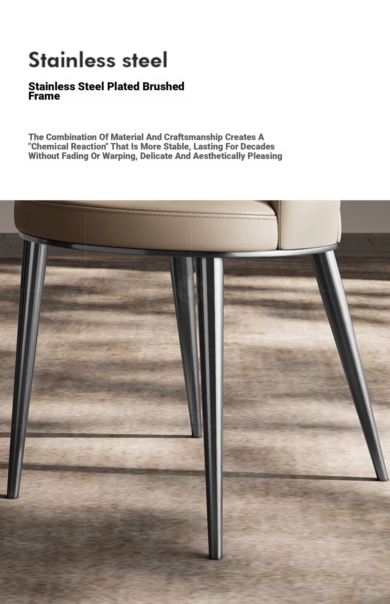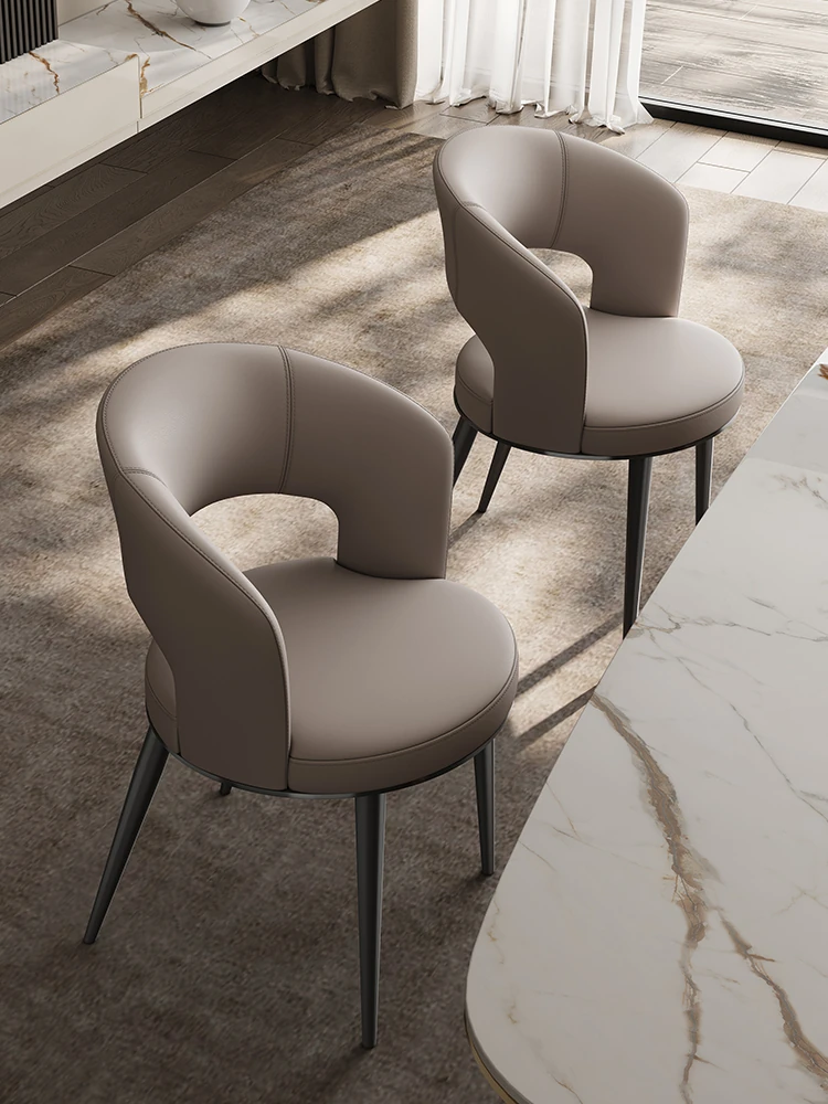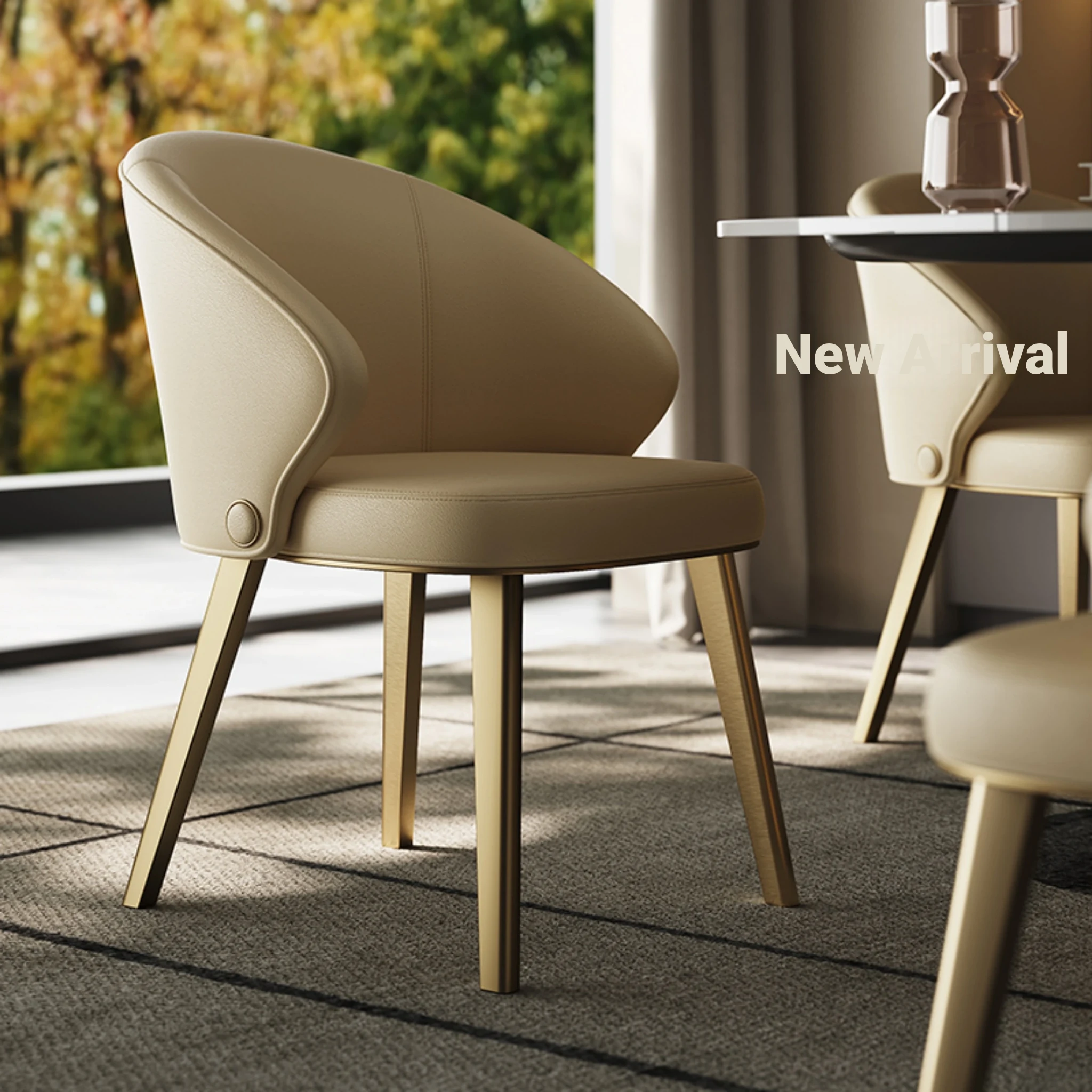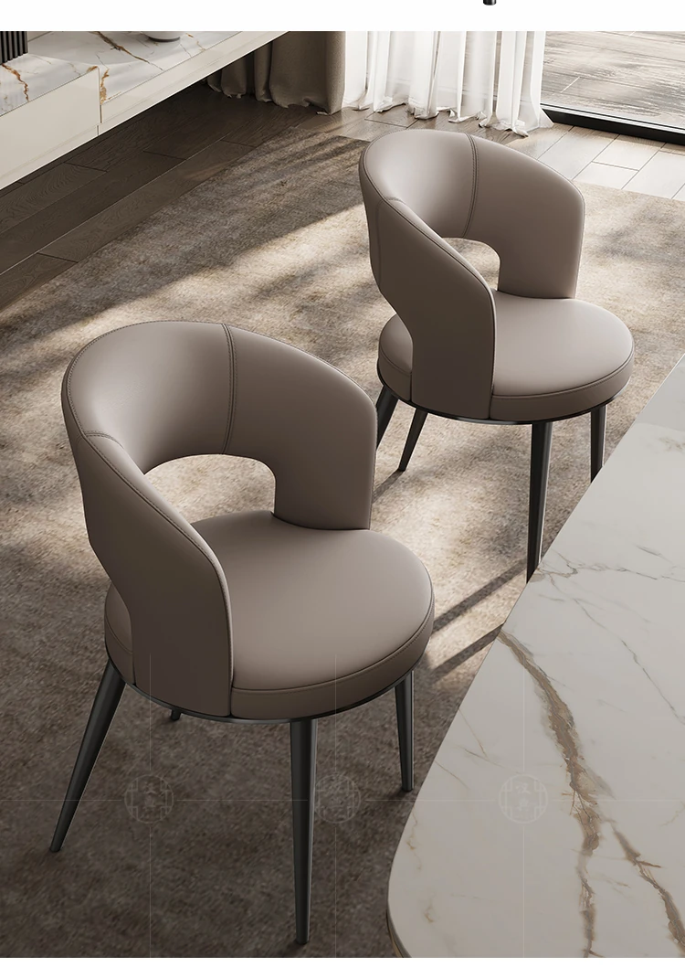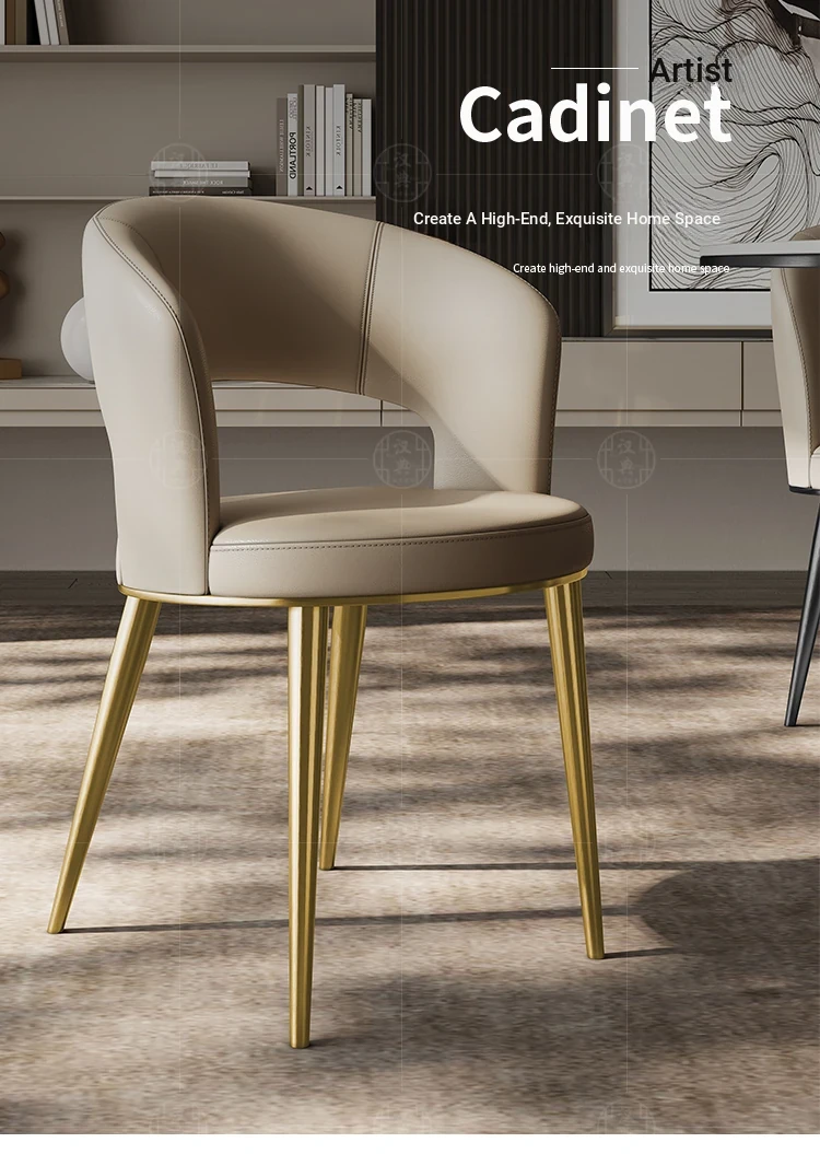Elegant Genuine Leather Dining Chair – High-End Designer Italian Minimalist Style with Stainless Steel Frame for Home Dining and Tea Spaces. Perfect Blend of Luxury and Comfort!