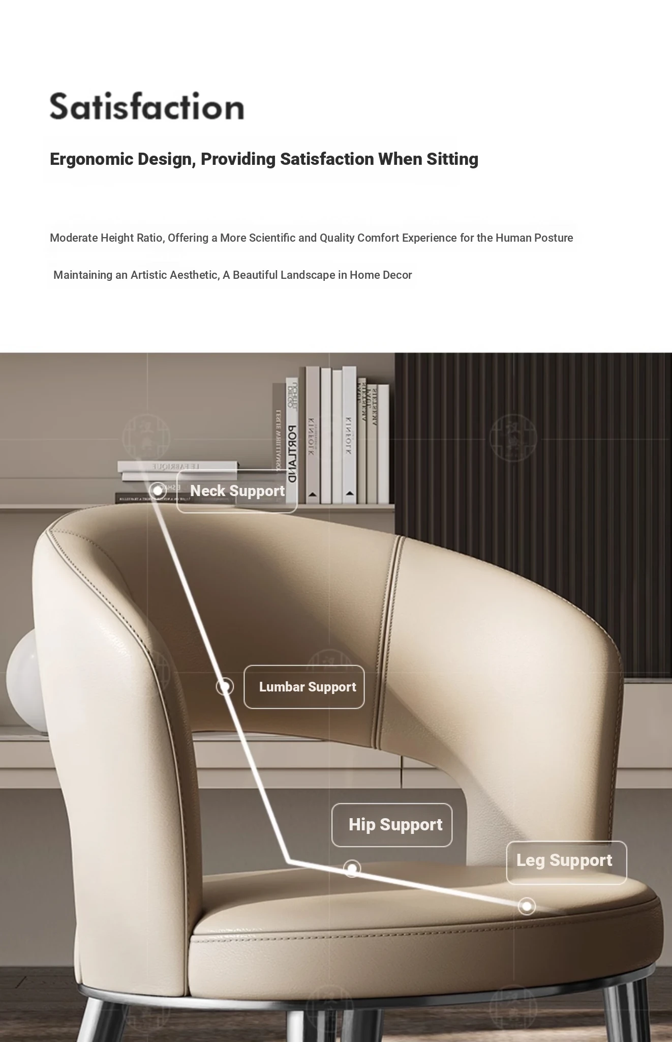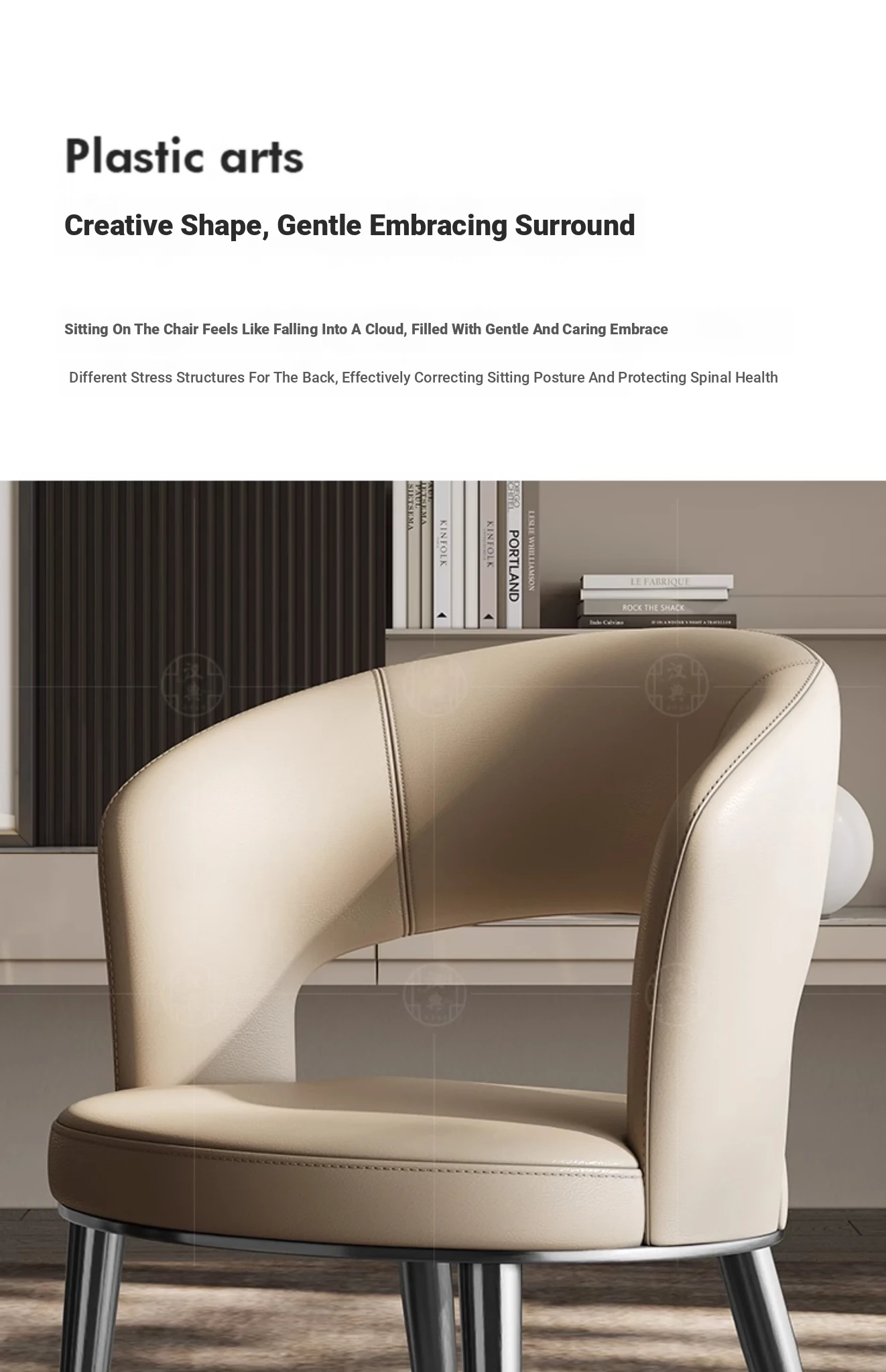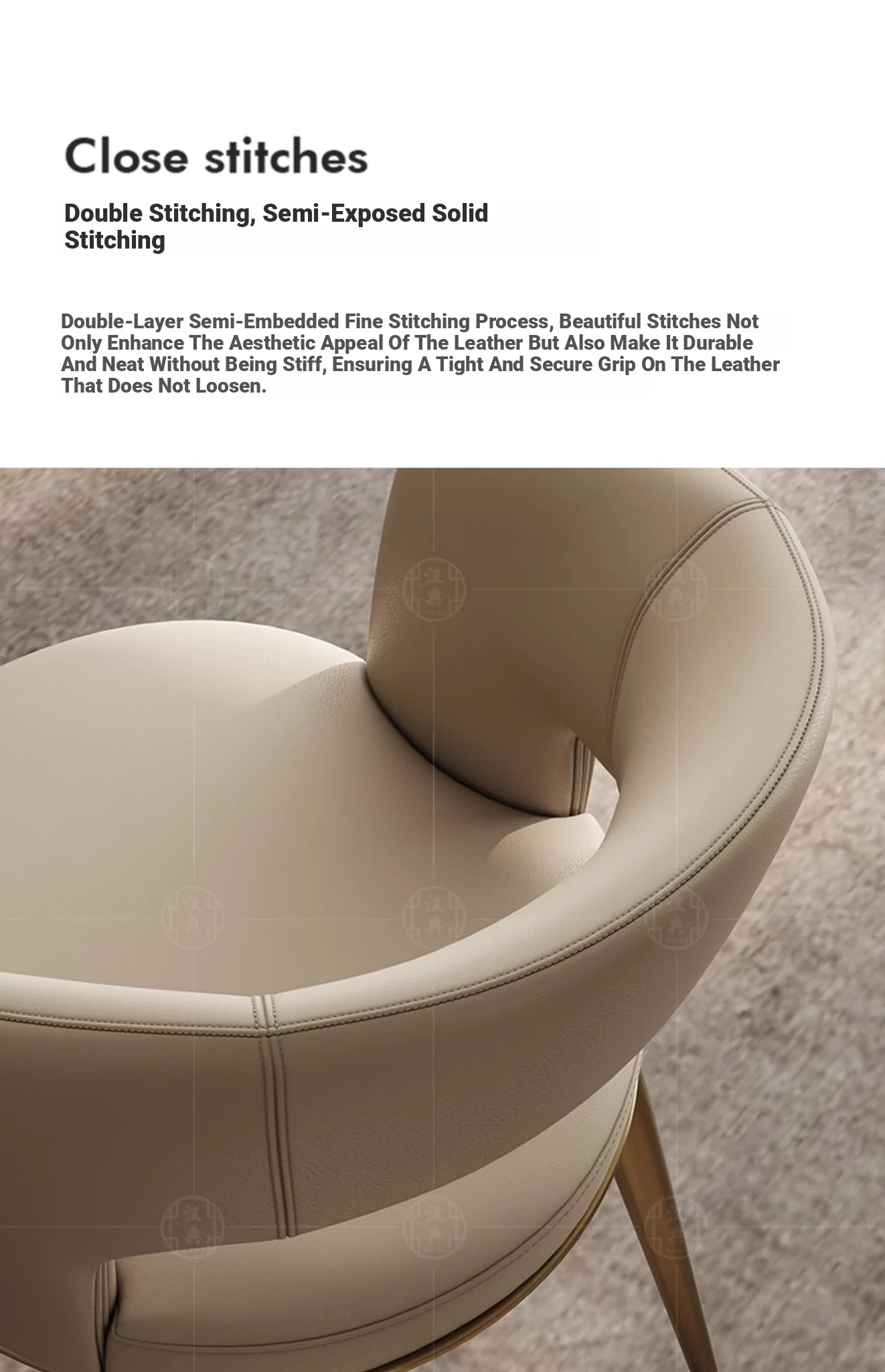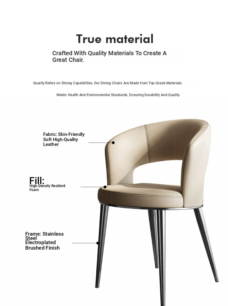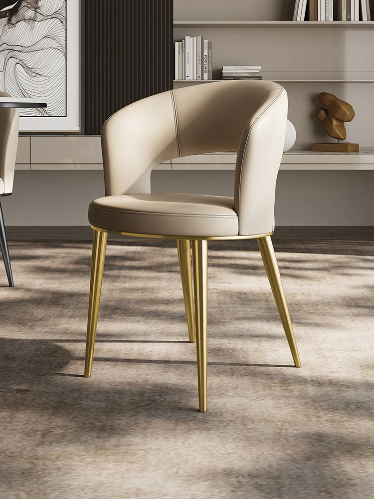 Elegant Genuine Leather Dining Chair – High-End Designer Italian Minimalist Style with Stainless Steel Frame for Home Dining and Tea Spaces. Perfect Blend of Luxury and Comfort!