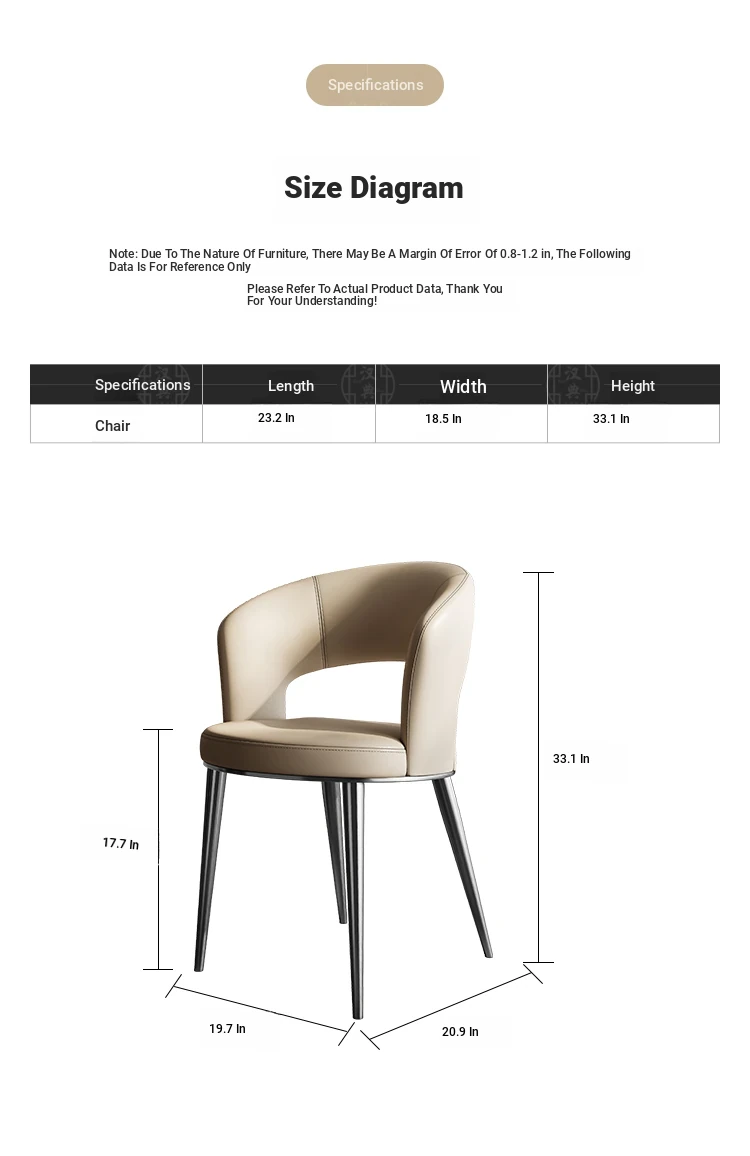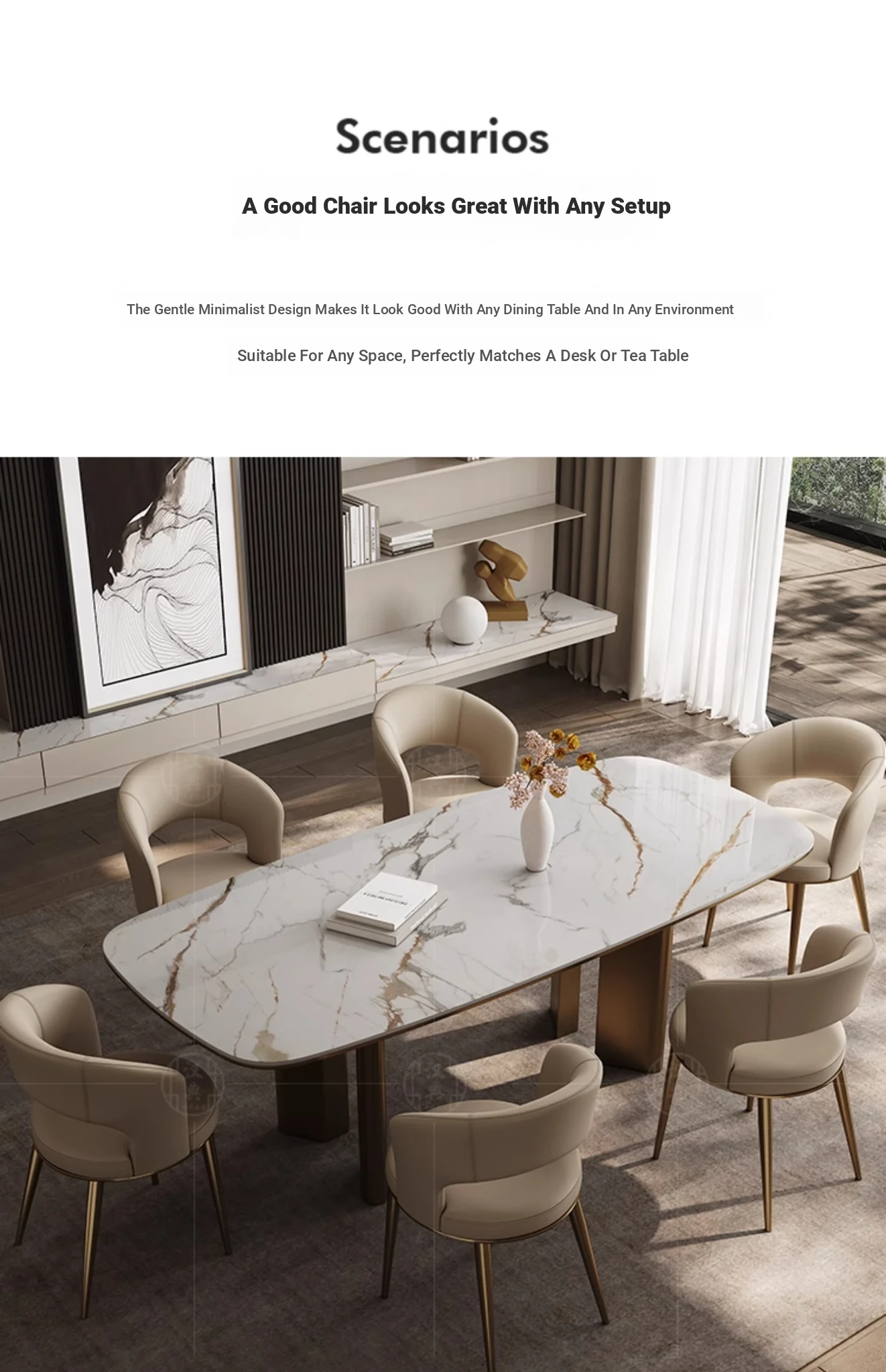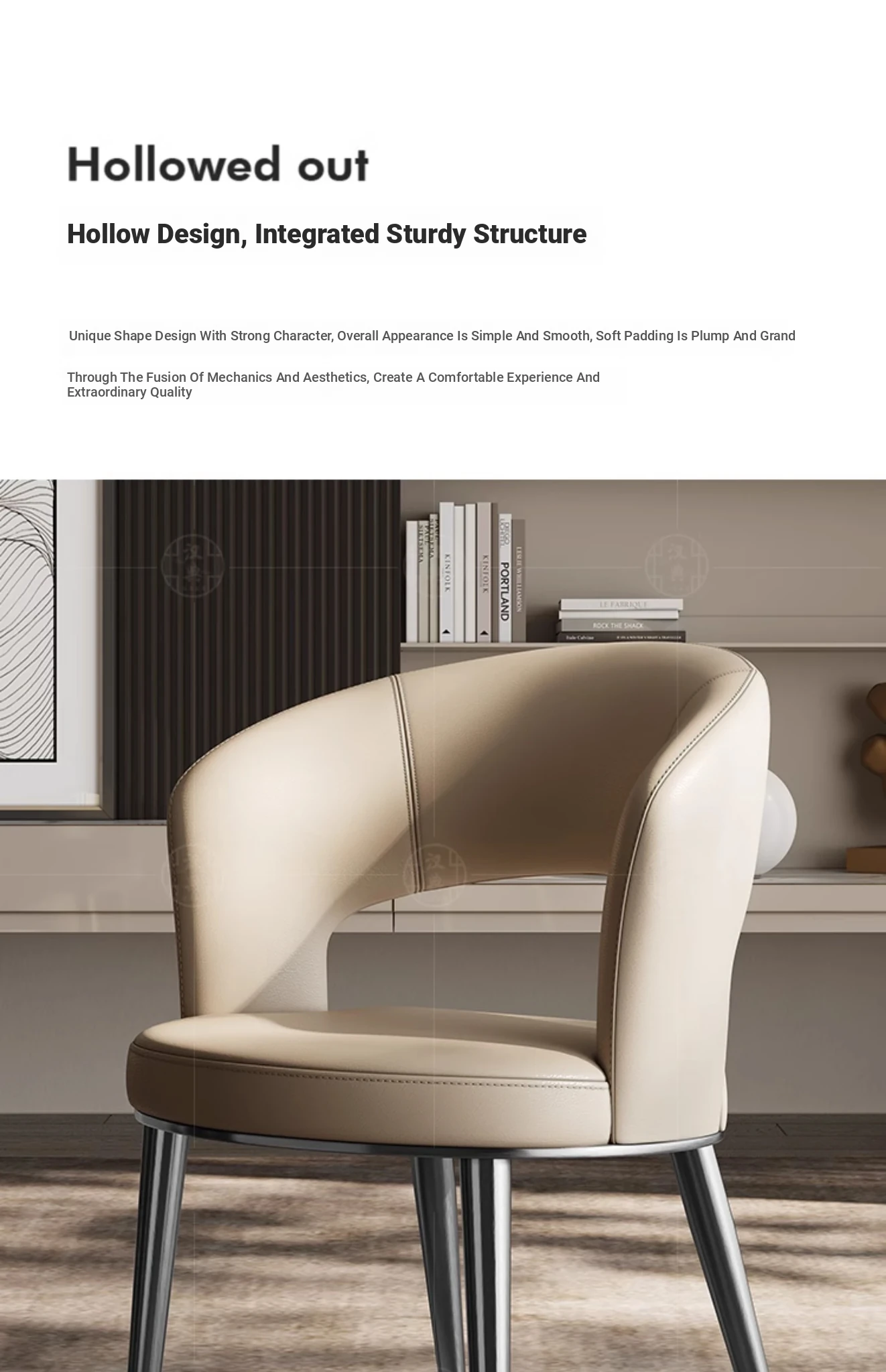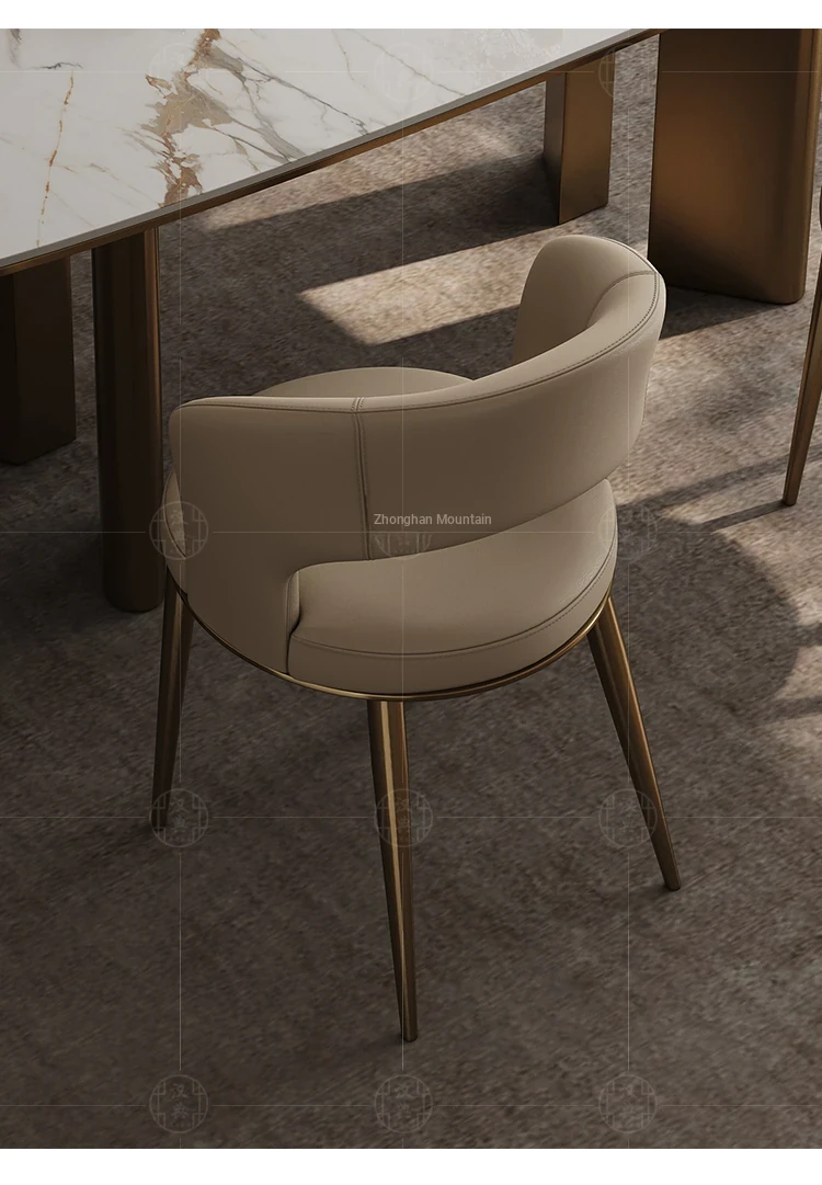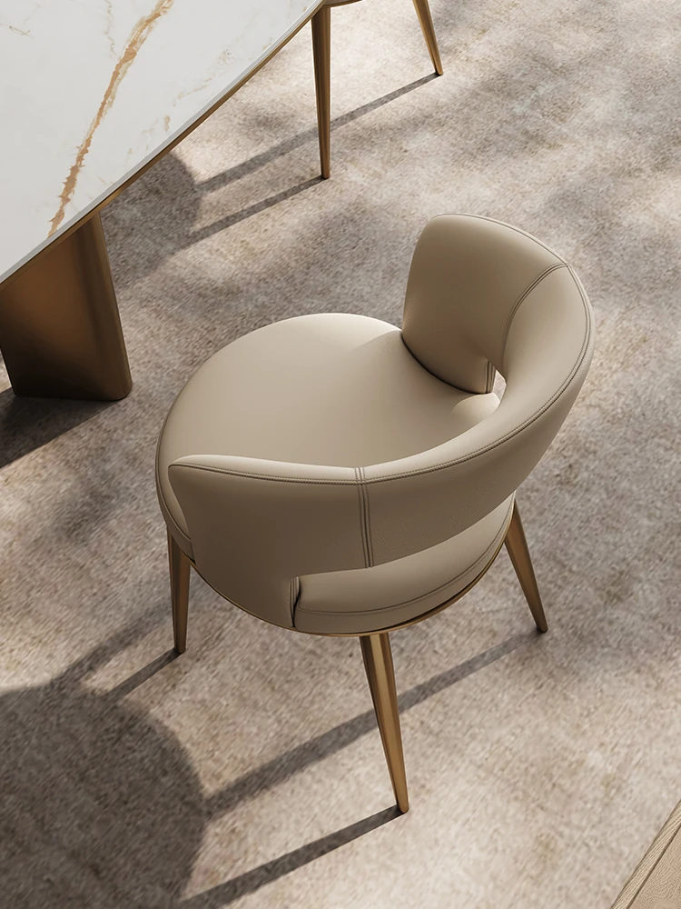 Elegant Genuine Leather Dining Chair – High-End Designer Italian Minimalist Style with Stainless Steel Frame for Home Dining and Tea Spaces. Perfect Blend of Luxury and Comfort!