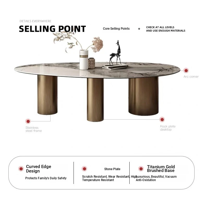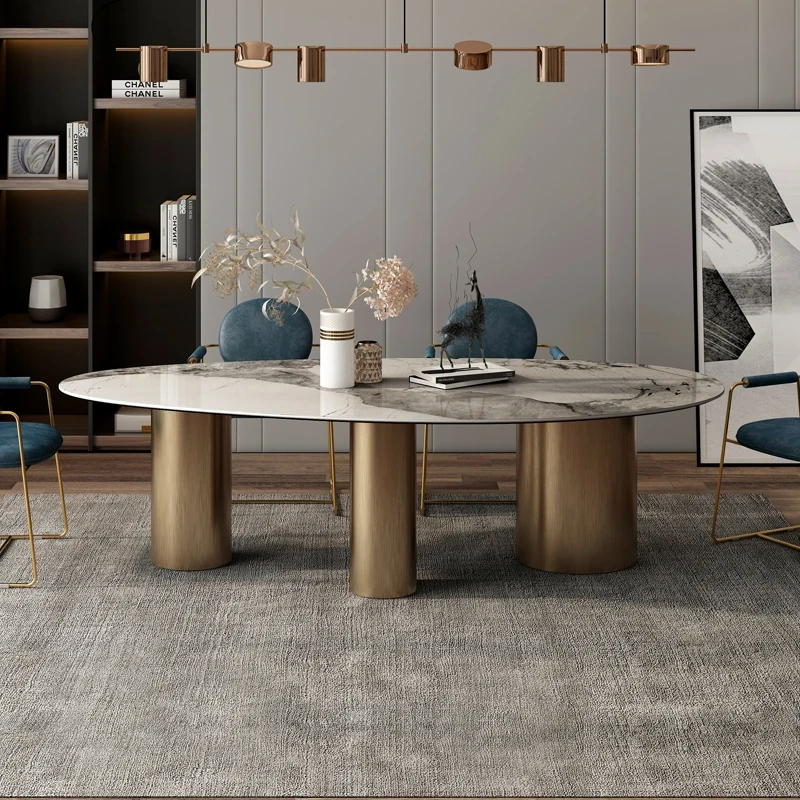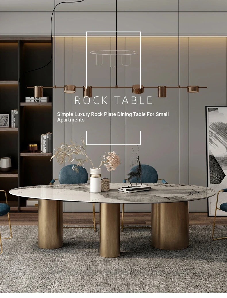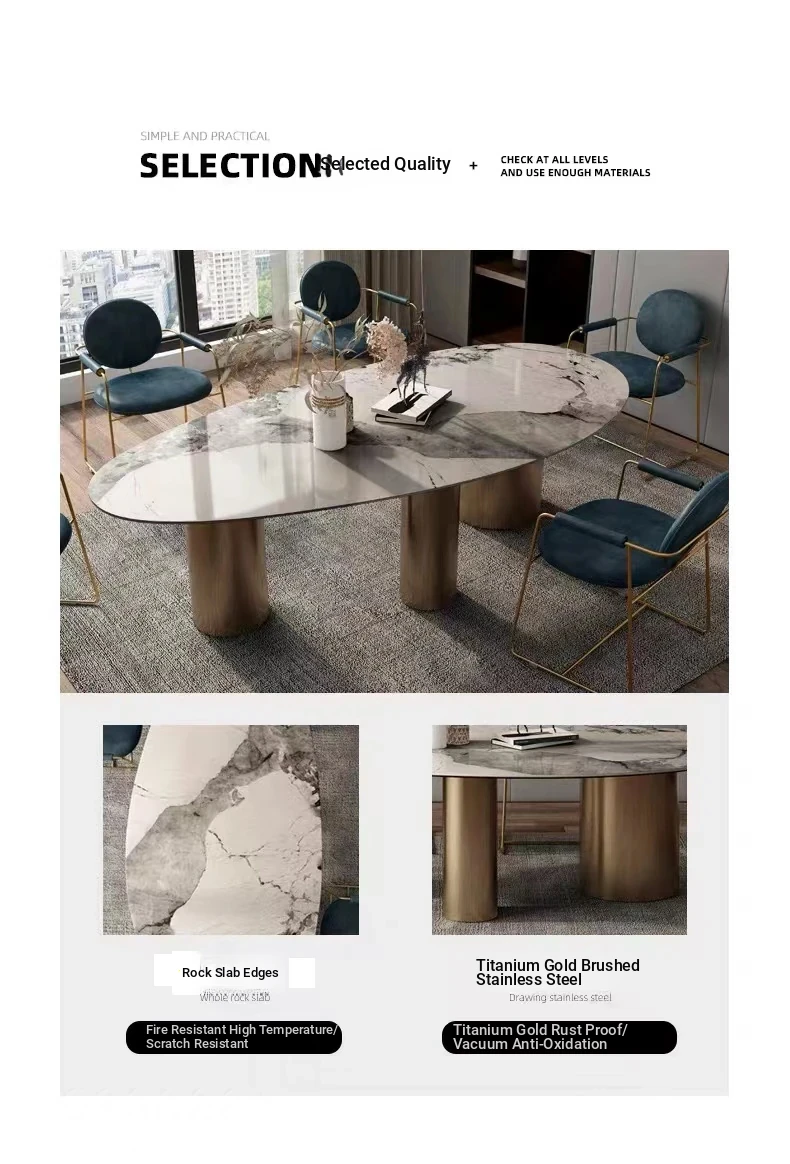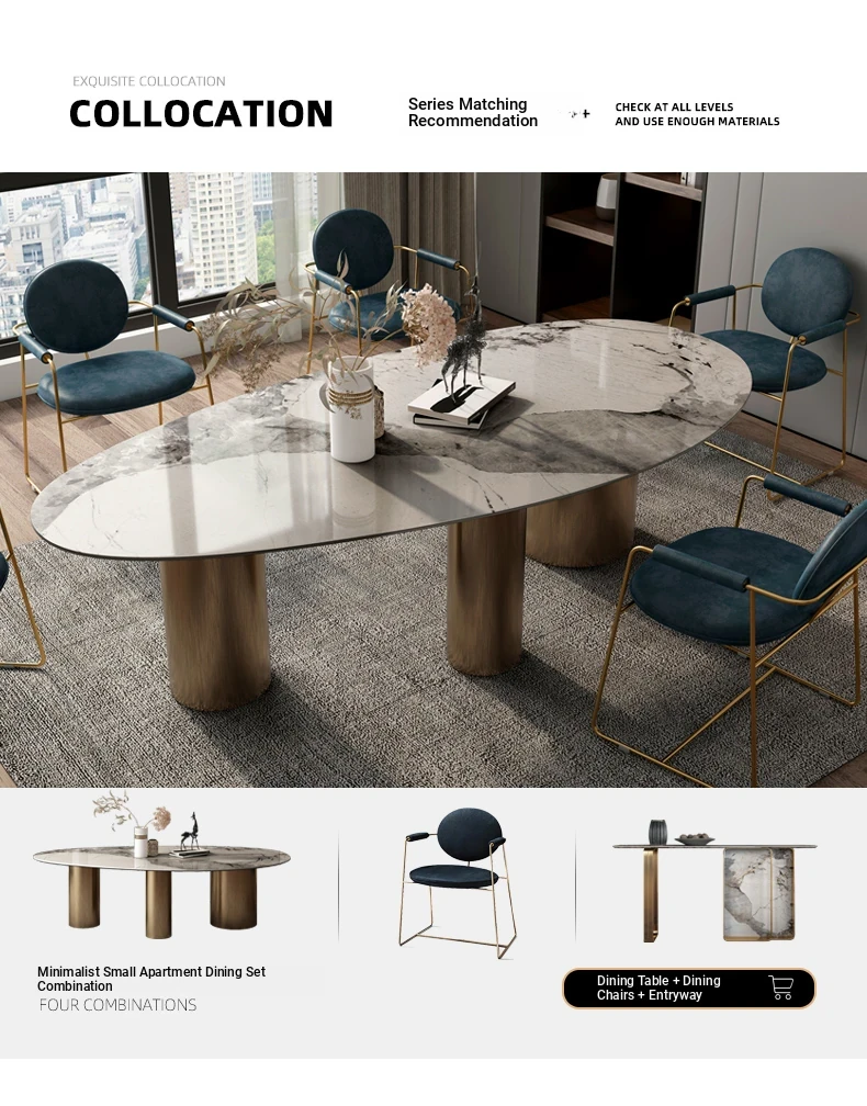 Elegant Italian Minimalist Light Luxury Oval Dining Table Set with Marble Finish - Perfect for Small Spaces, Ideal for Home Use, Stylish and Functional Dining Experience