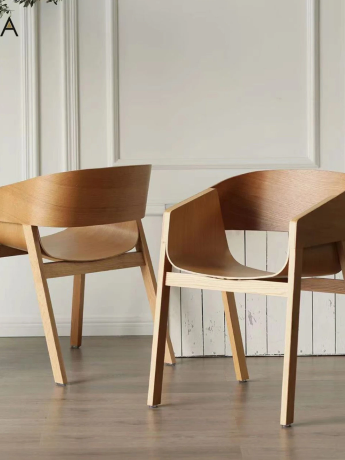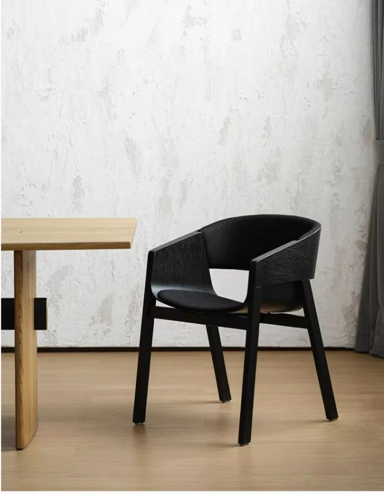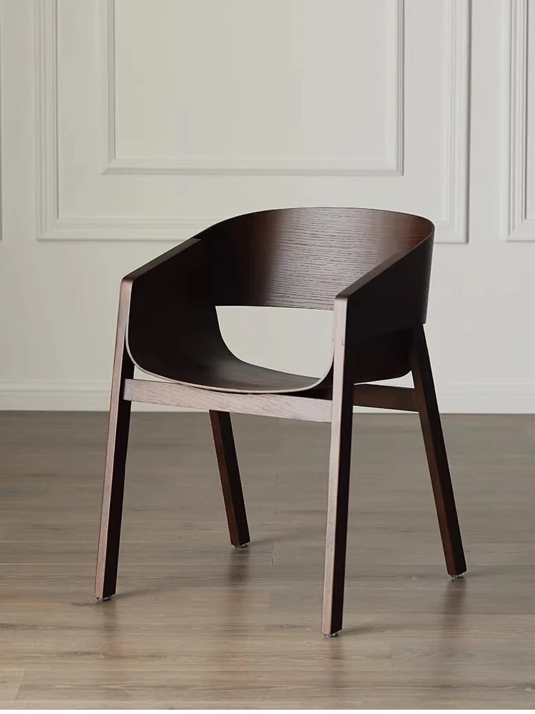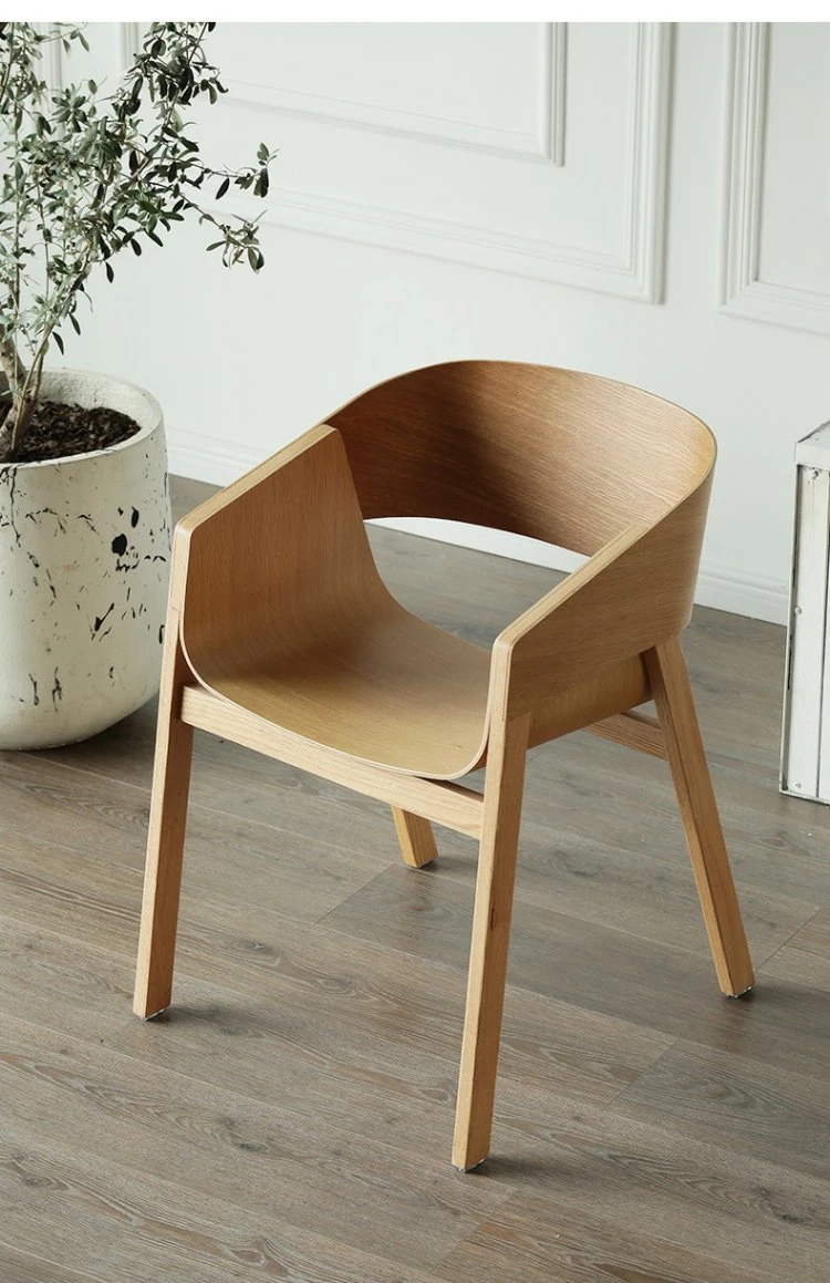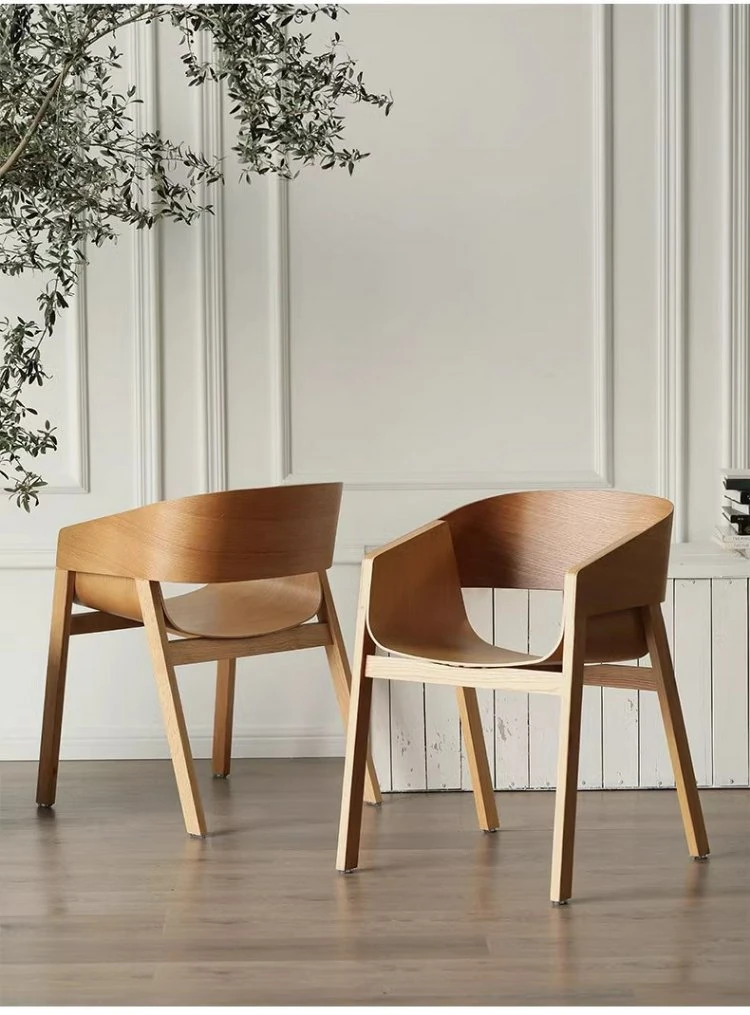Elegant Nordic Solid Wood Dining Chair - Modern Minimalist Armchair with Creative Design and Comfortable Backrest in Natural Wood Finish for Relaxed Dining Experience
