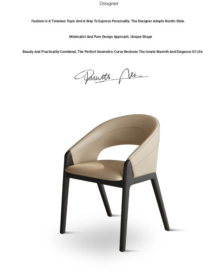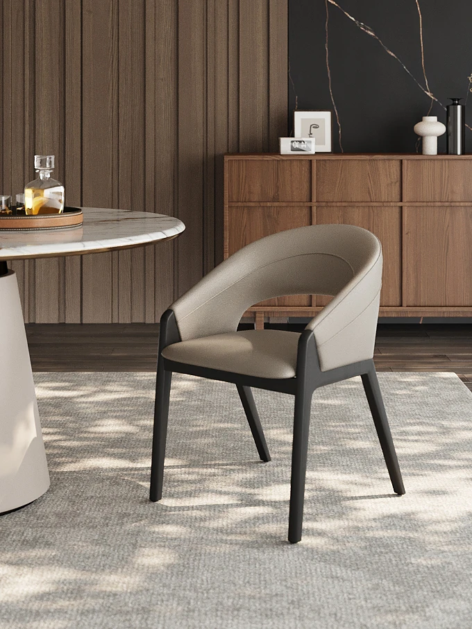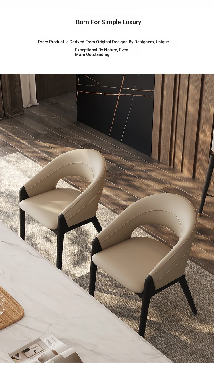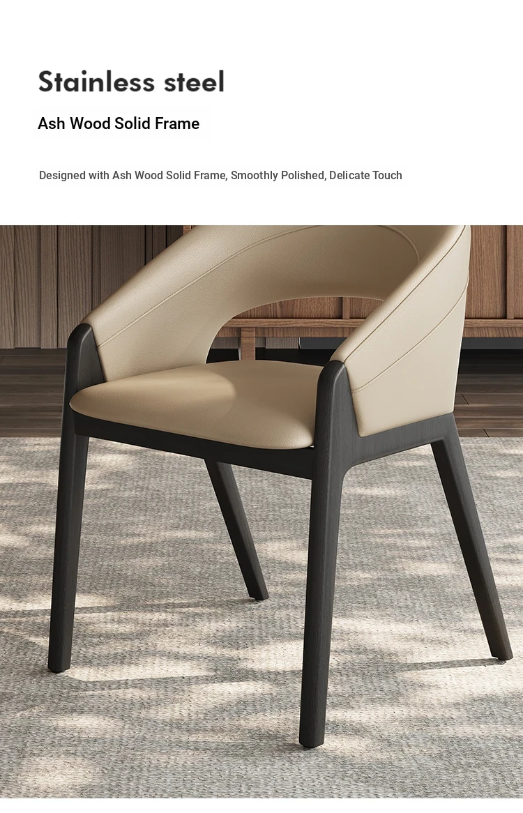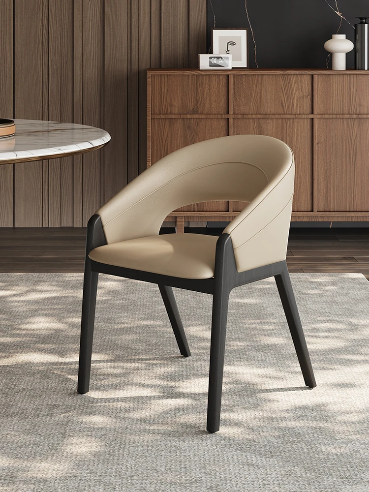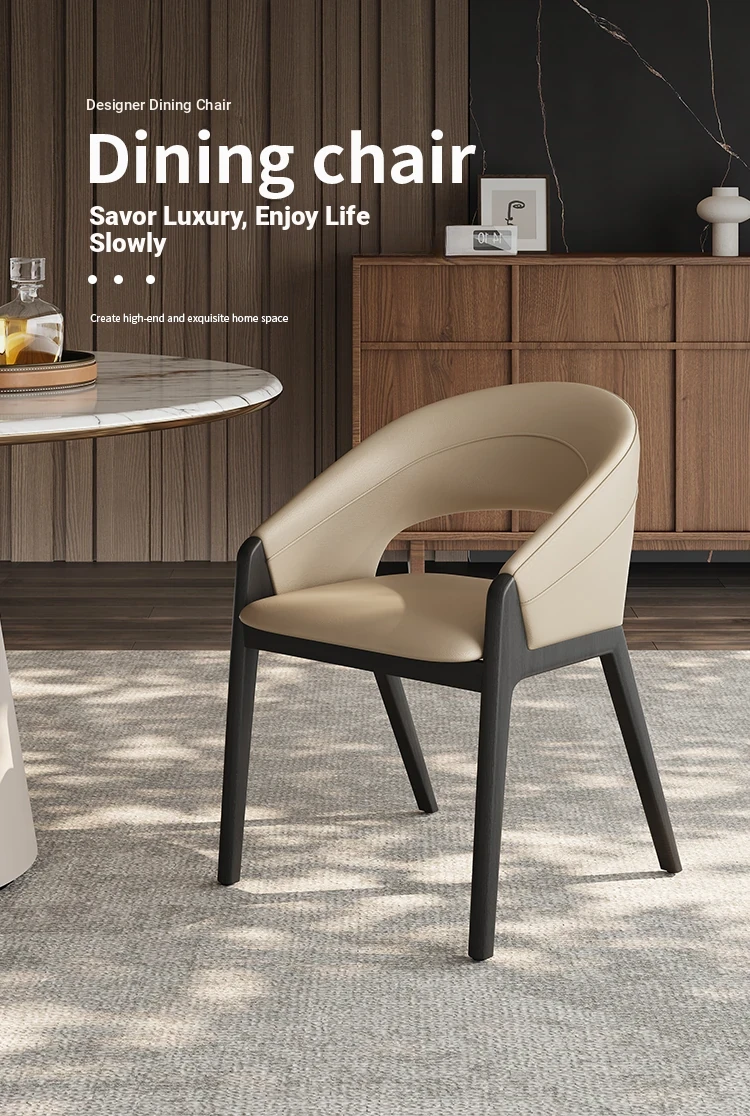 Elegant Nordic Solid Wood Dining Chair with Premium Genuine Leather - Modern Minimalist Italian Design for Home and High-End Restaurants