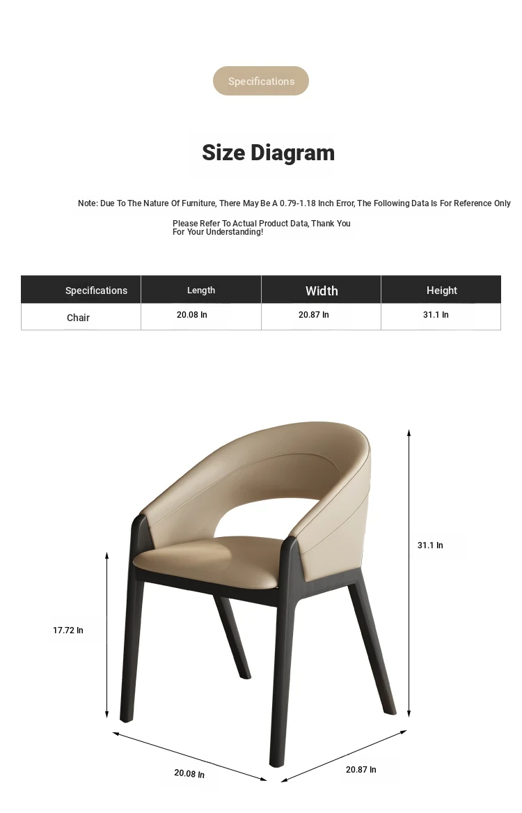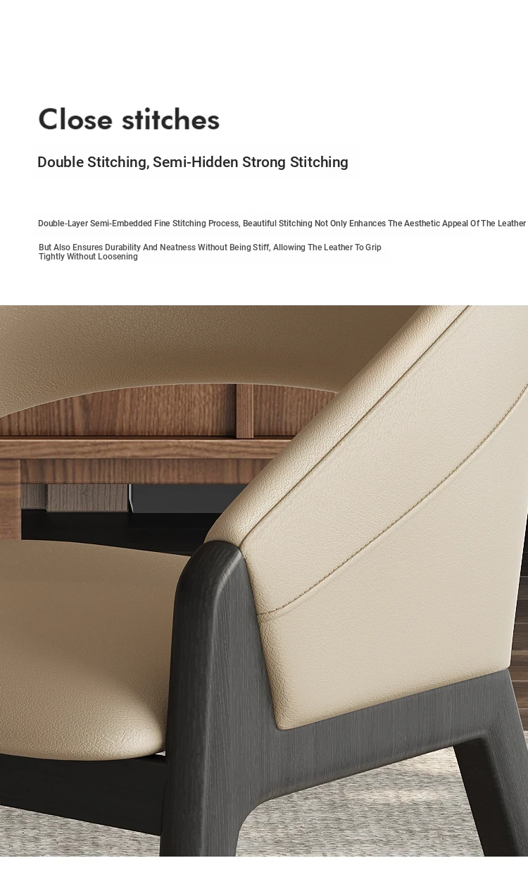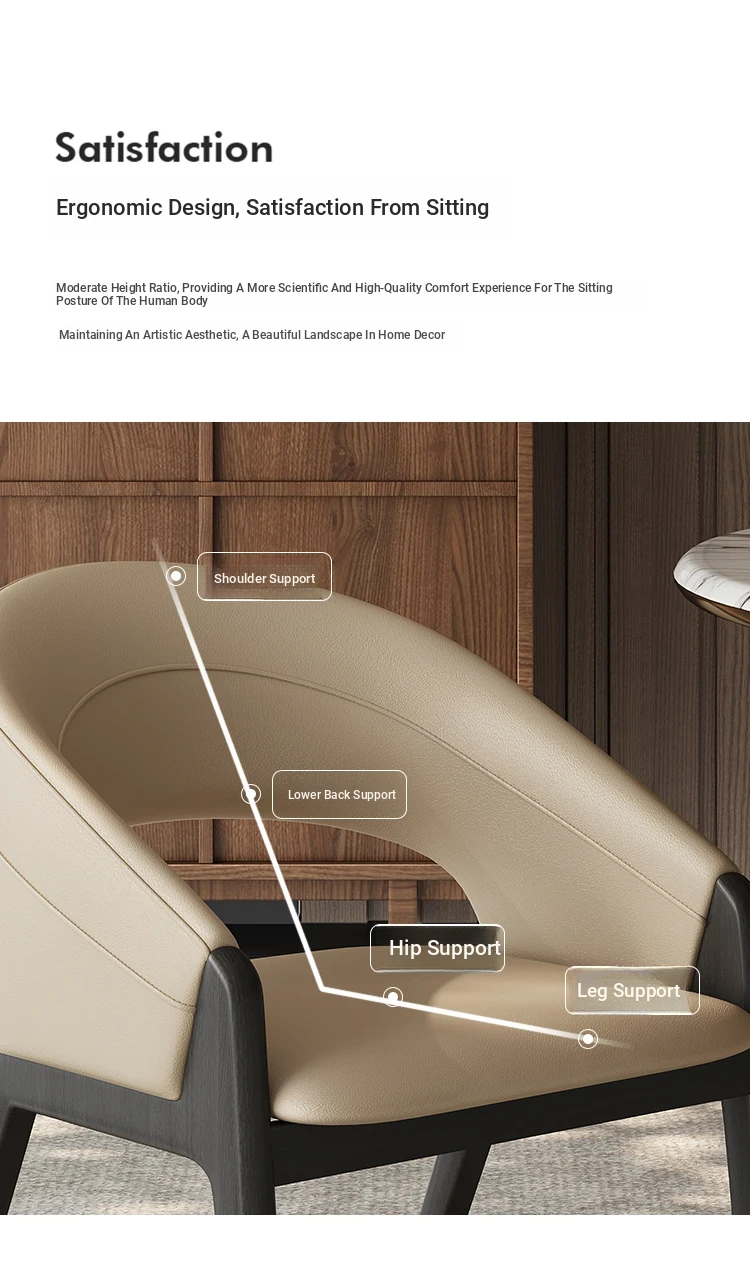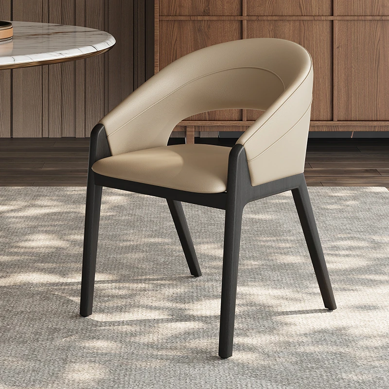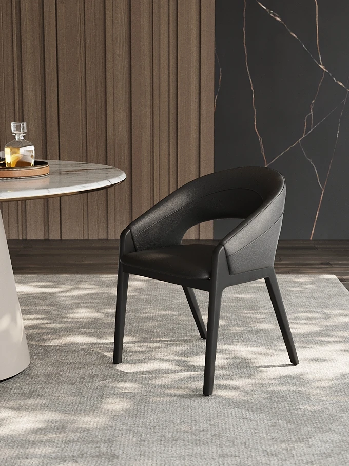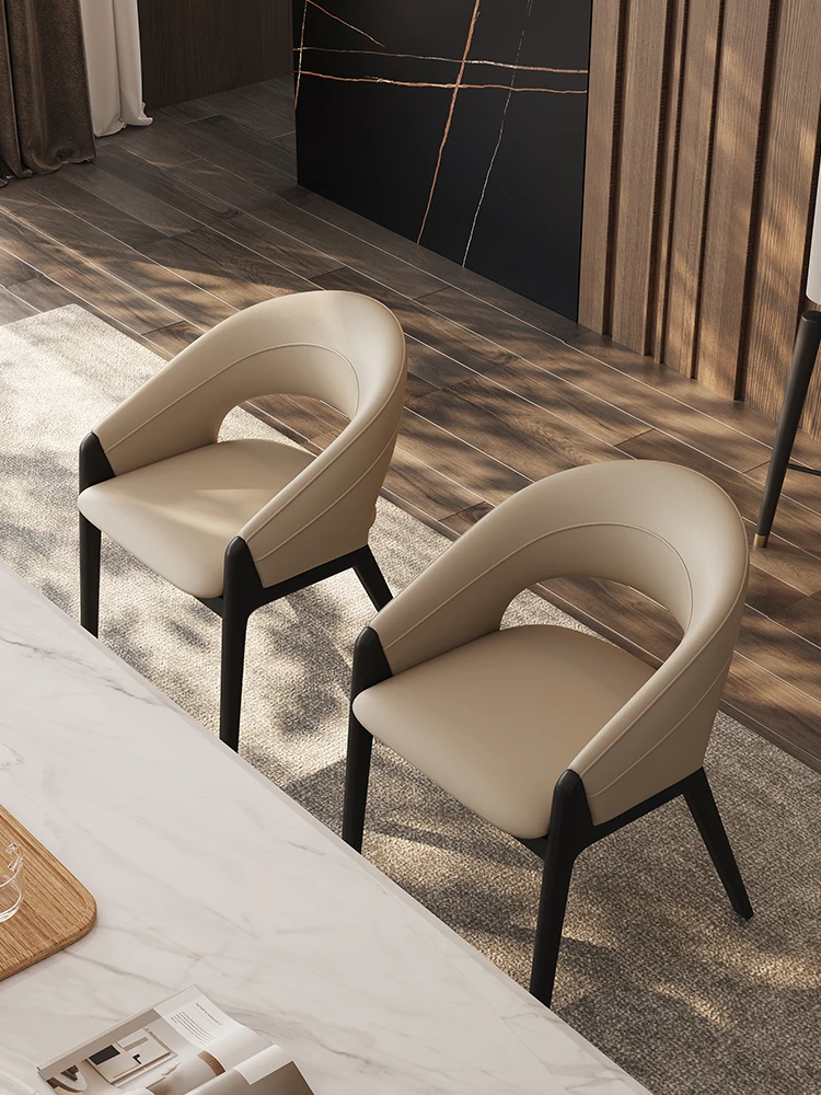 Elegant Nordic Solid Wood Dining Chair with Premium Genuine Leather - Modern Minimalist Italian Design for Home and High-End Restaurants