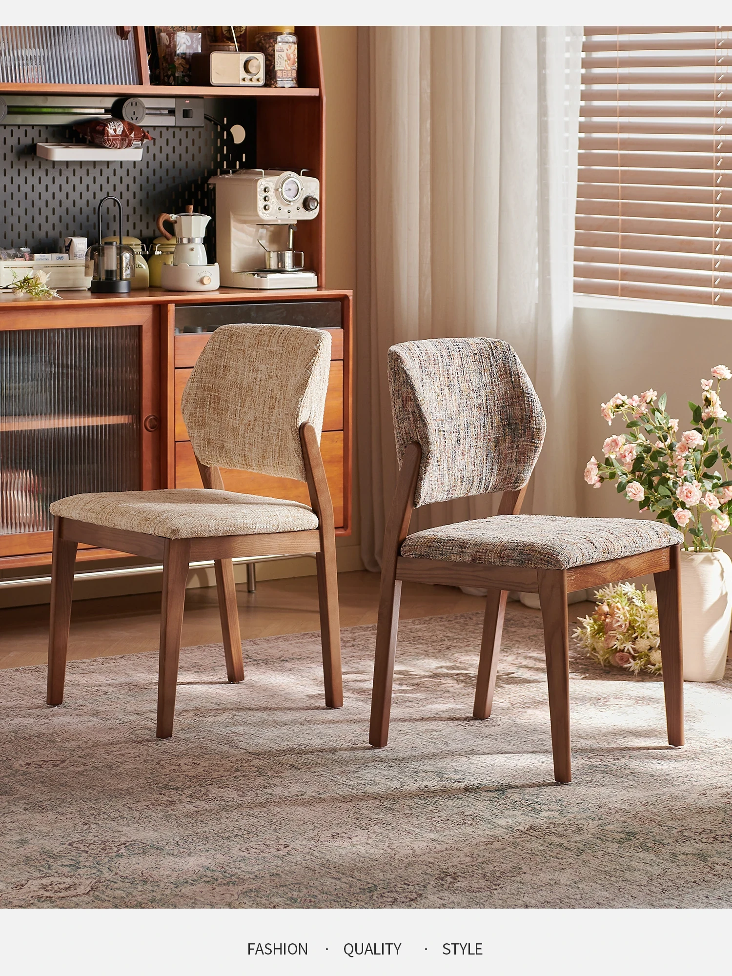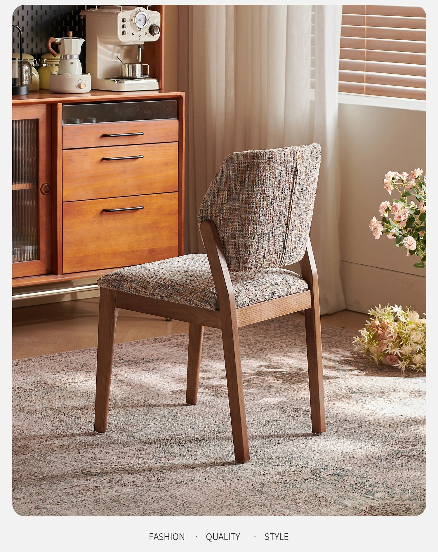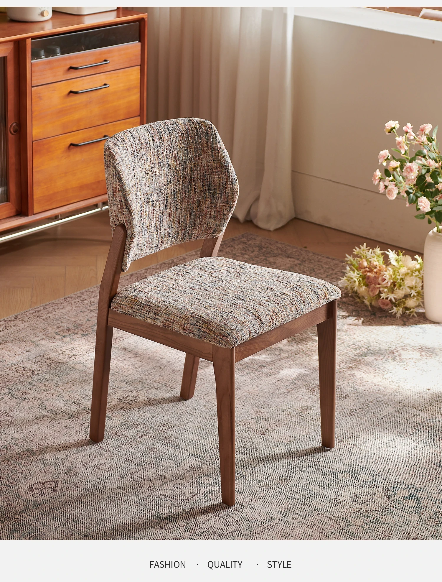 French Vintage Linen Solid Wood Dining Chair - Wabi-Sabi Style with Backrest, Modern Designer for Dining Room, Cozy Fabric Desk Chair