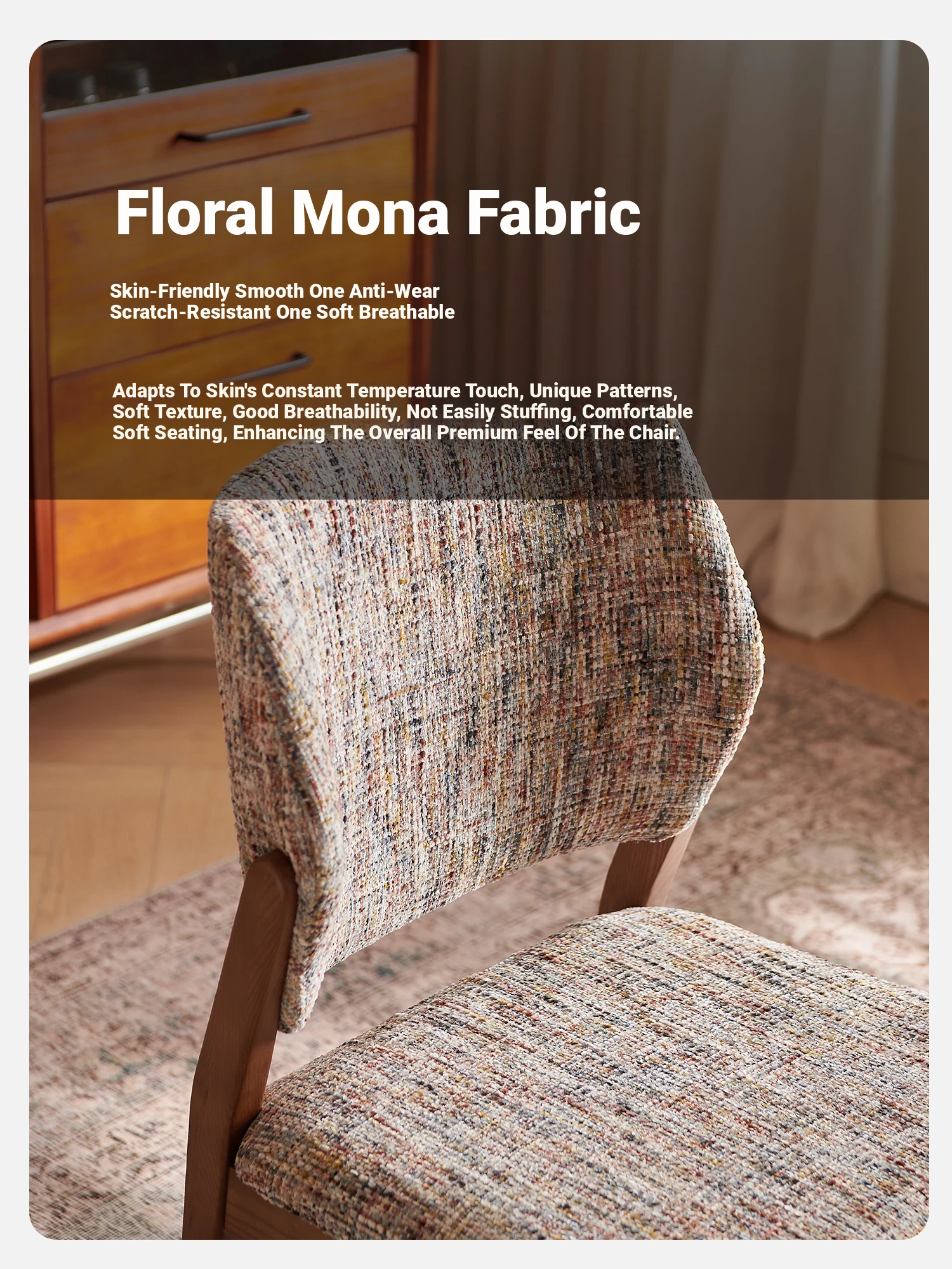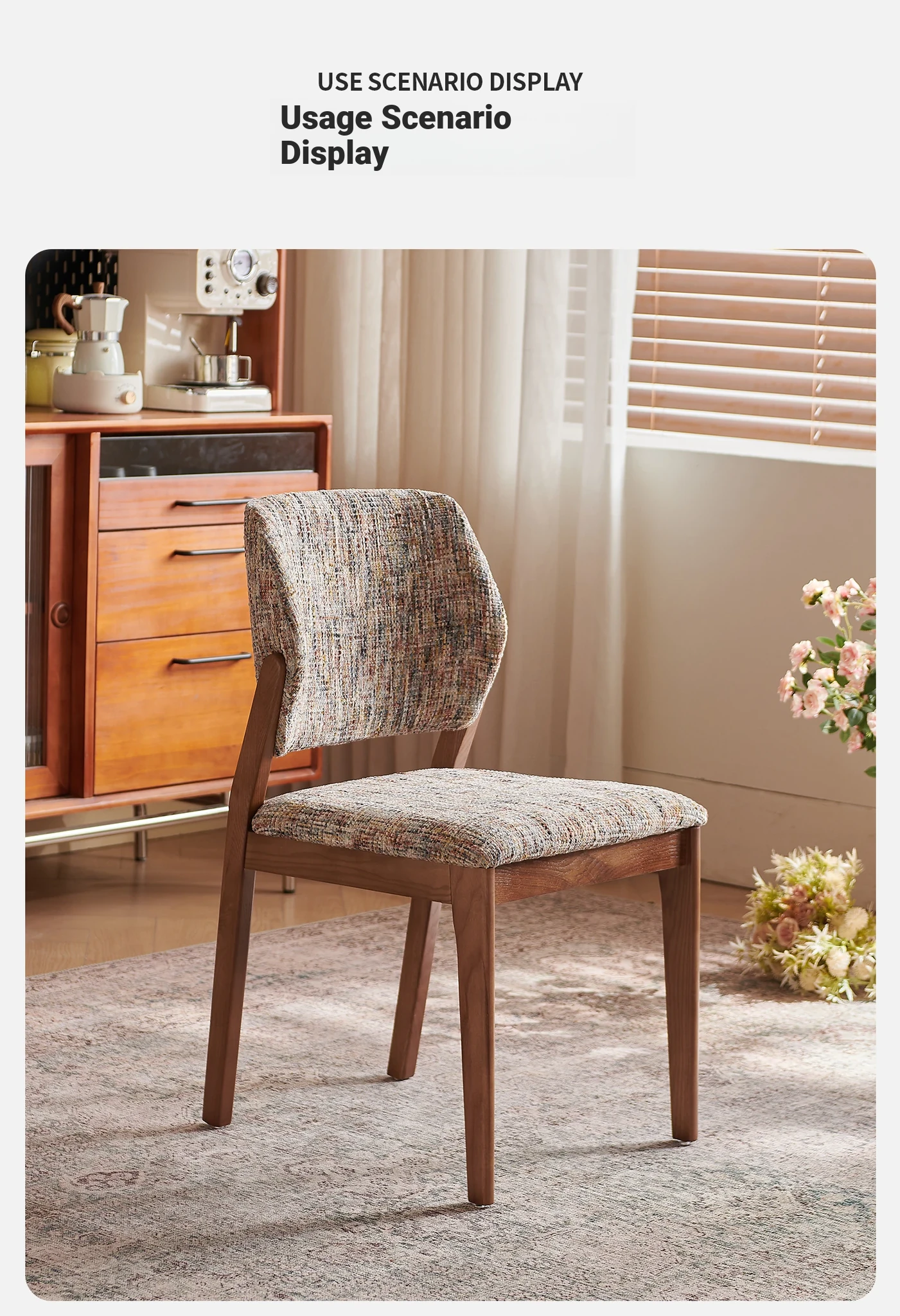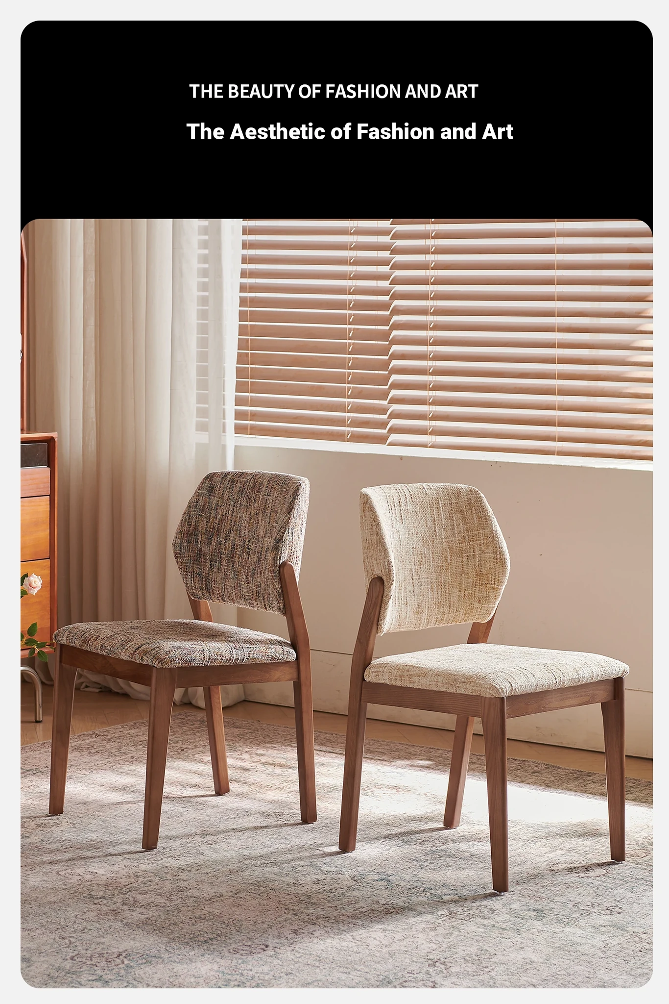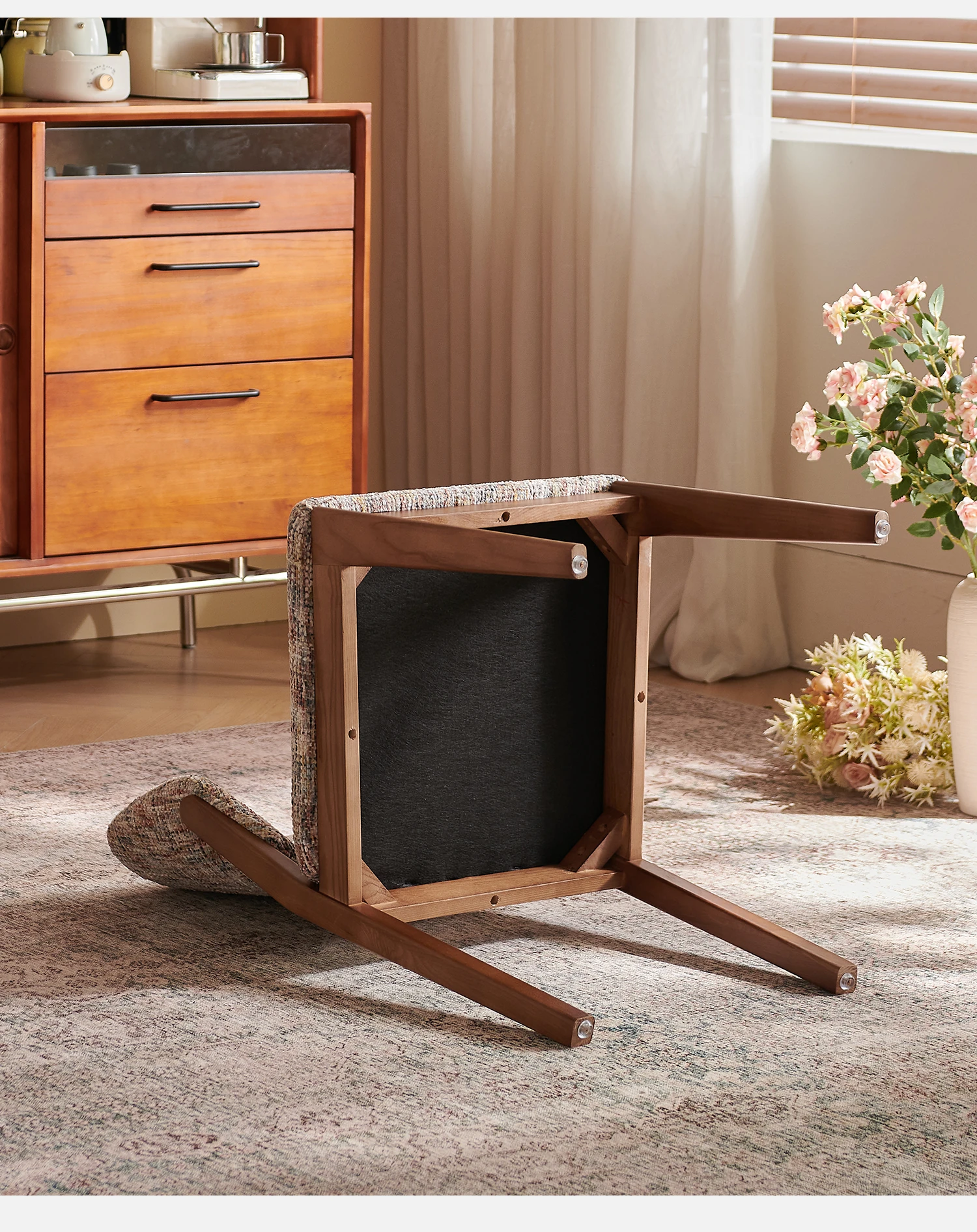 French Vintage Linen Solid Wood Dining Chair - Wabi-Sabi Style with Backrest, Modern Designer for Dining Room, Cozy Fabric Desk Chair