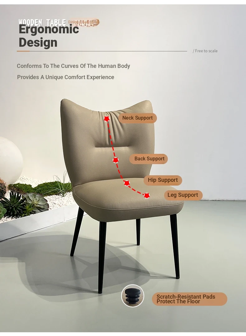 Italian Designer Dining Chair - Modern Minimalist Home Furniture with Thick Spring Cushions and Supportive Backrest, Perfect for Dining Tables.