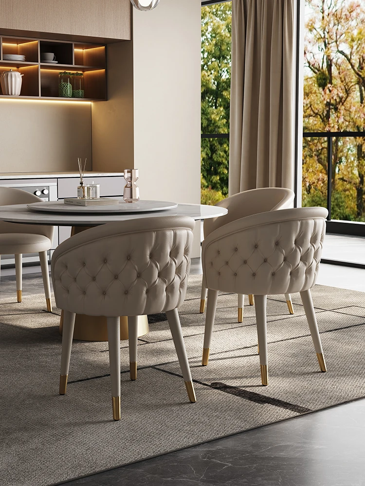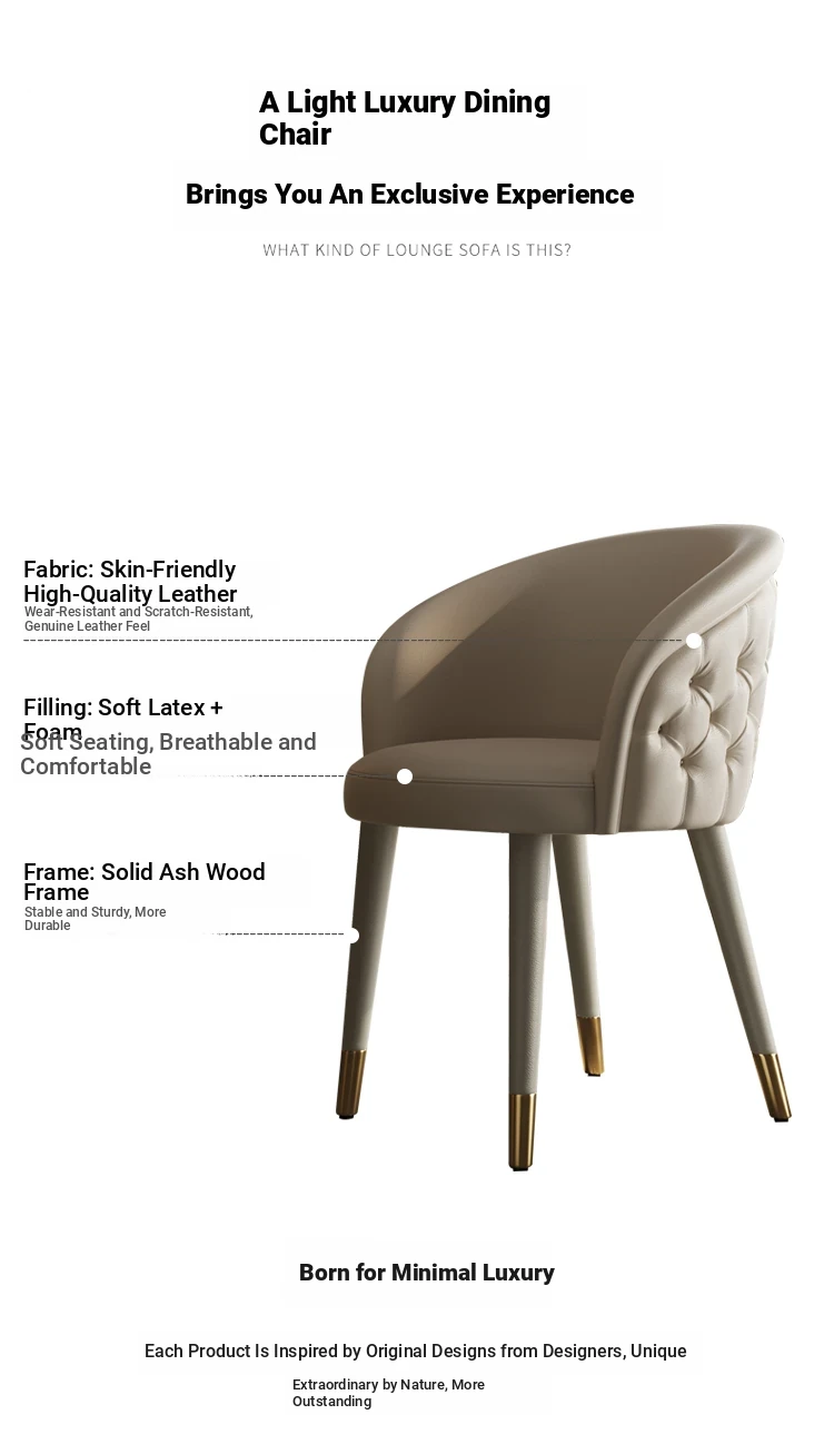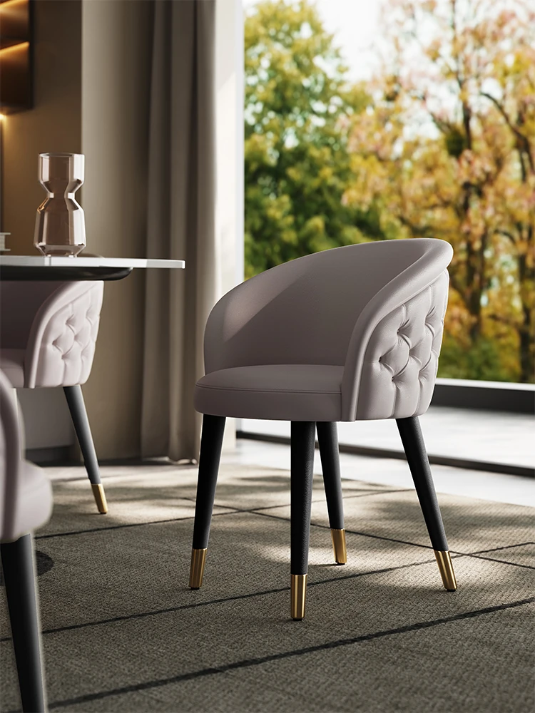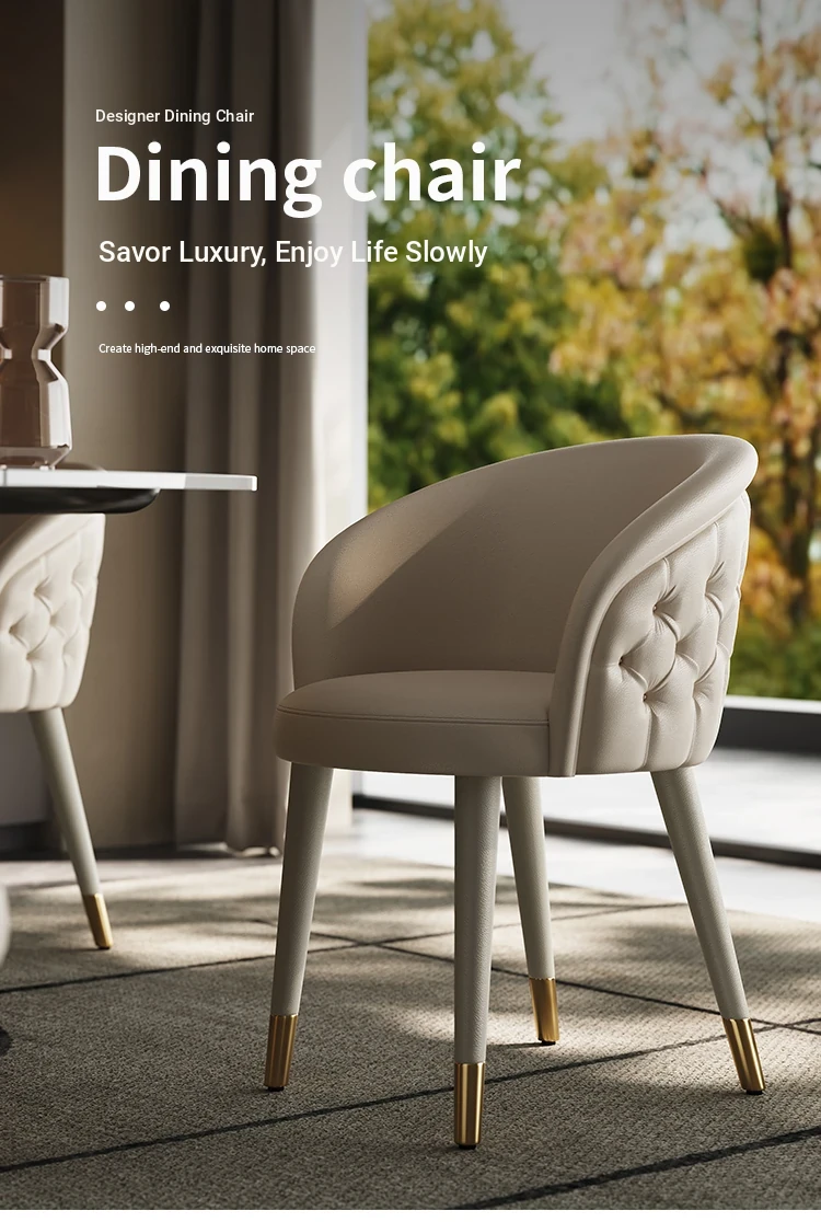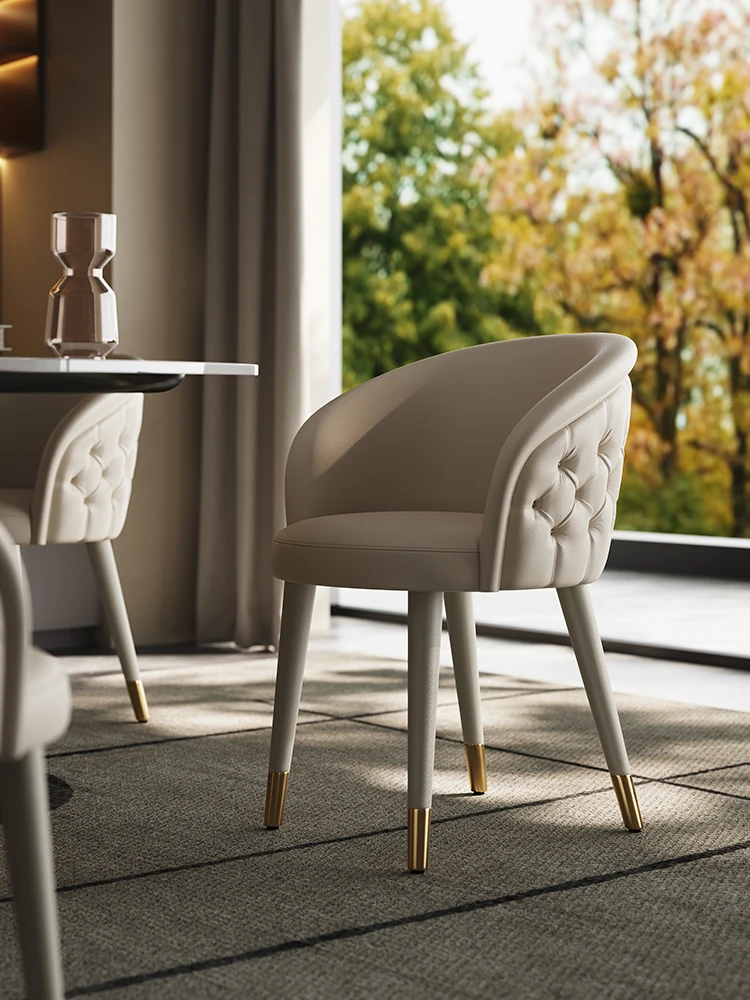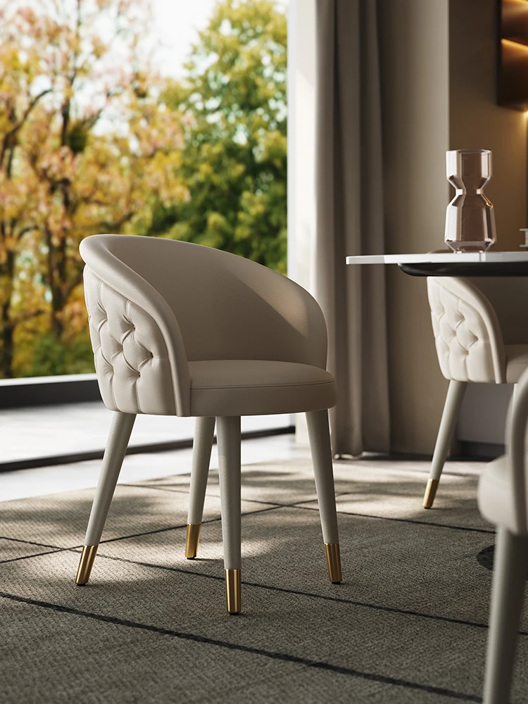 Italian Genuine Leather Dining Chair – Modern Minimalist High-End Solid Wood Accent Chair with Backrest – Premium Top-Grain Cowhide Upholstery for Luxurious Home Dining Experience